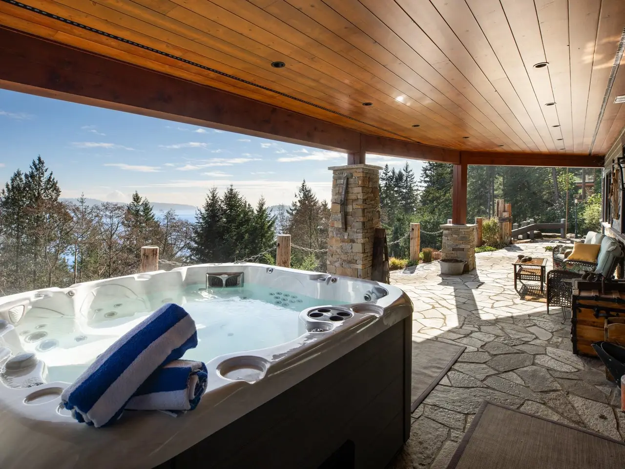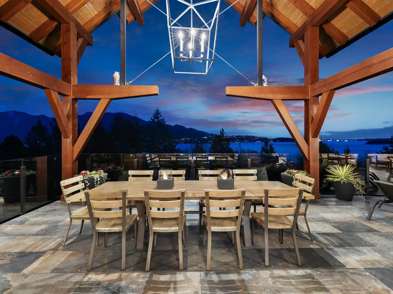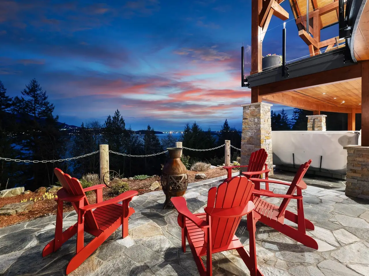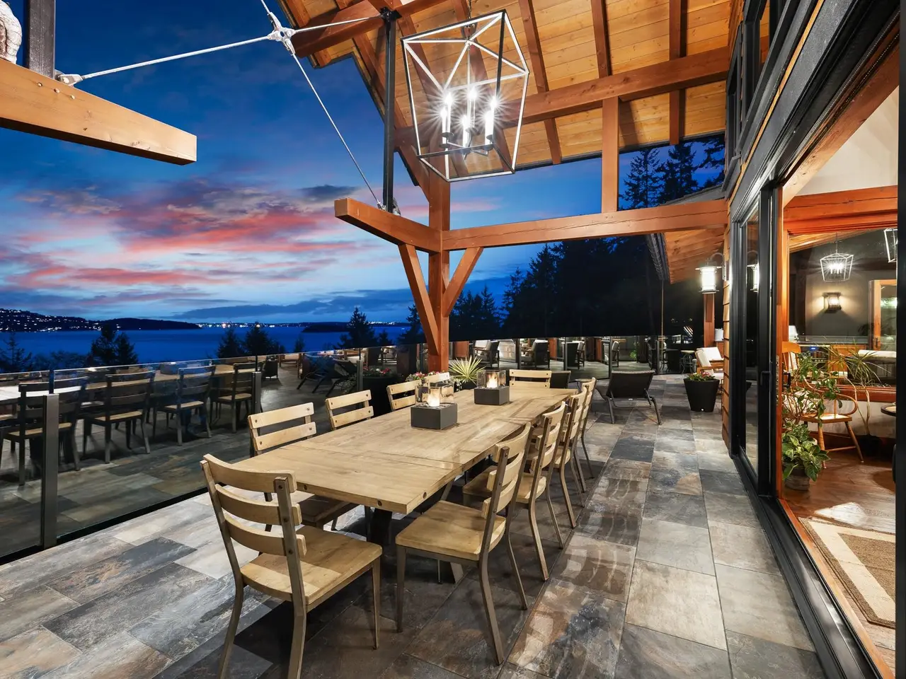 This stunning ocean view property featuring a masterpiece of engineering, custom built, Canadian Timberframe Ltd home is ready to welcome a new family. The expansive timber peaks & over 1100 sq.ft. covered entertainment deck sets it apart. The open plan main floor boasts timberframe ceilings soaring over 24'. Custom Loewen Douglas Fir interior/metal exterior windows & doors, engineered Hickory flooring & exclusive lighting compliment the space. Chefs will covet the gourmet kitchen with state of the art appliances & expansive Quartz countertops. Main level primary bedroom, ensuite & walk in closet showcase the cathedral timberframe ceilings. A special retreat w/floor to ceiling fireplaces & private decks overlooking ocean, mountain and coastal views. Vancouver within easy reach.