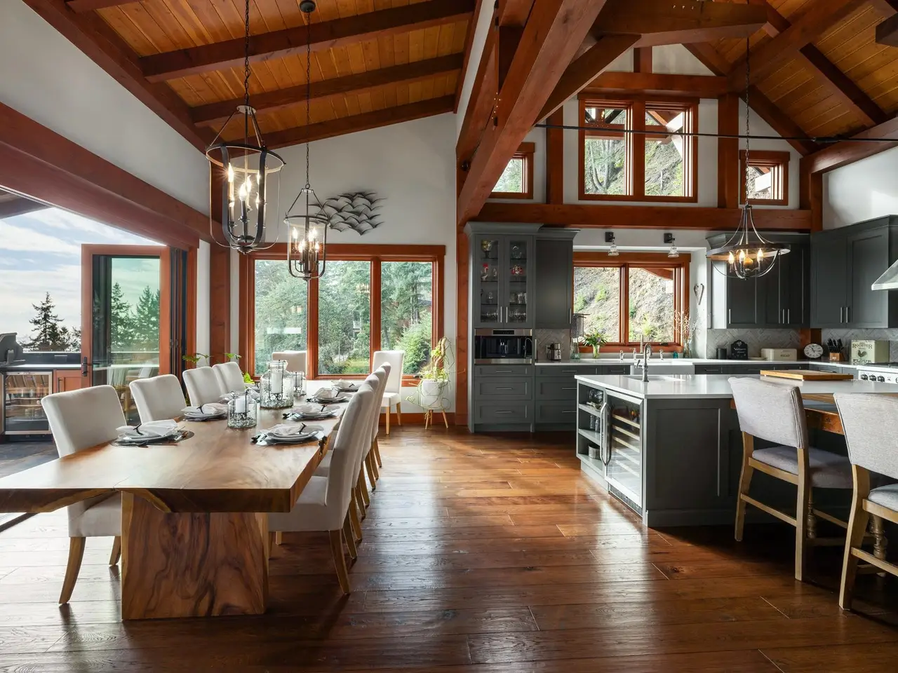 • Timberframe ceilings soaring over 24'