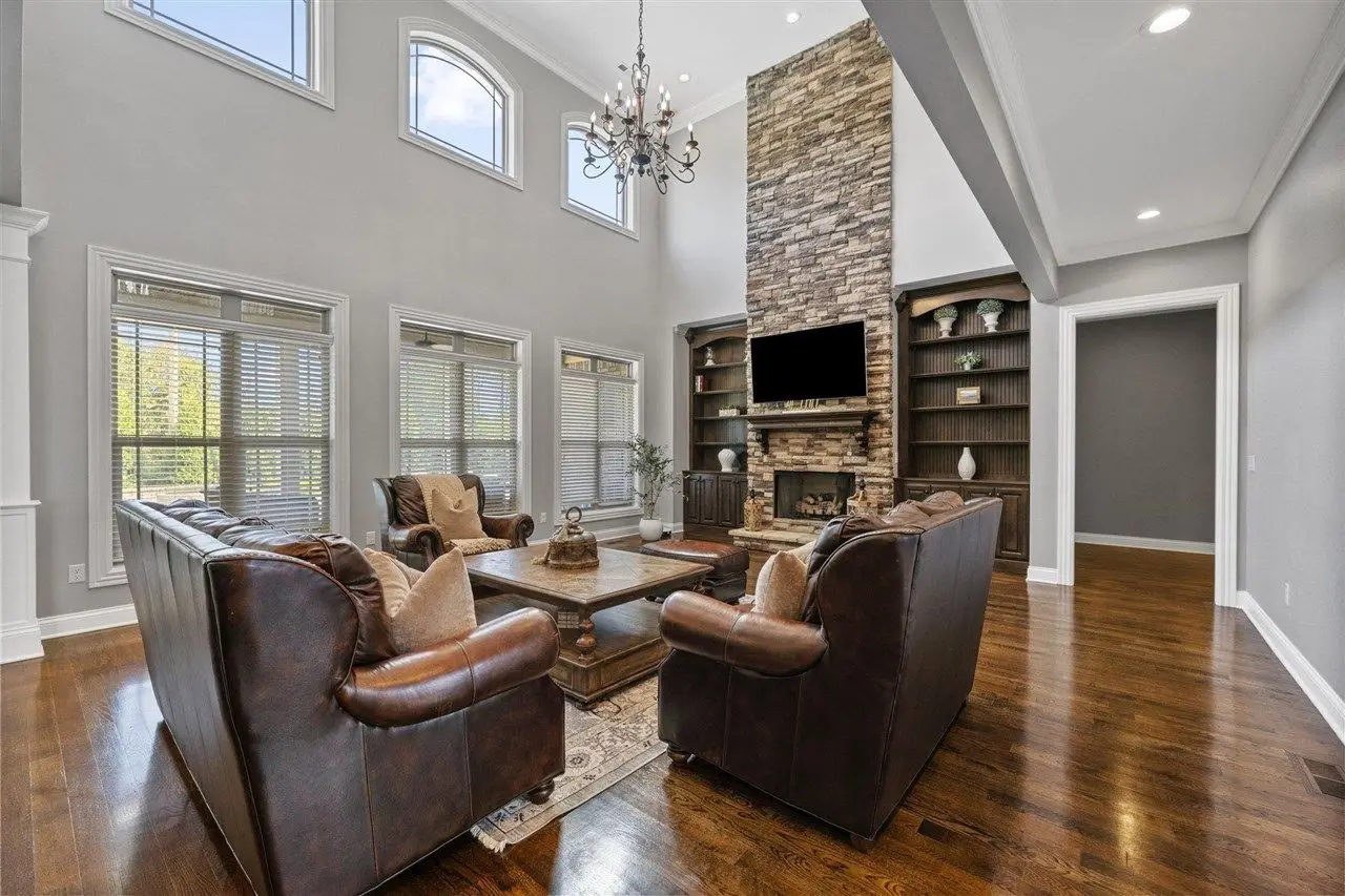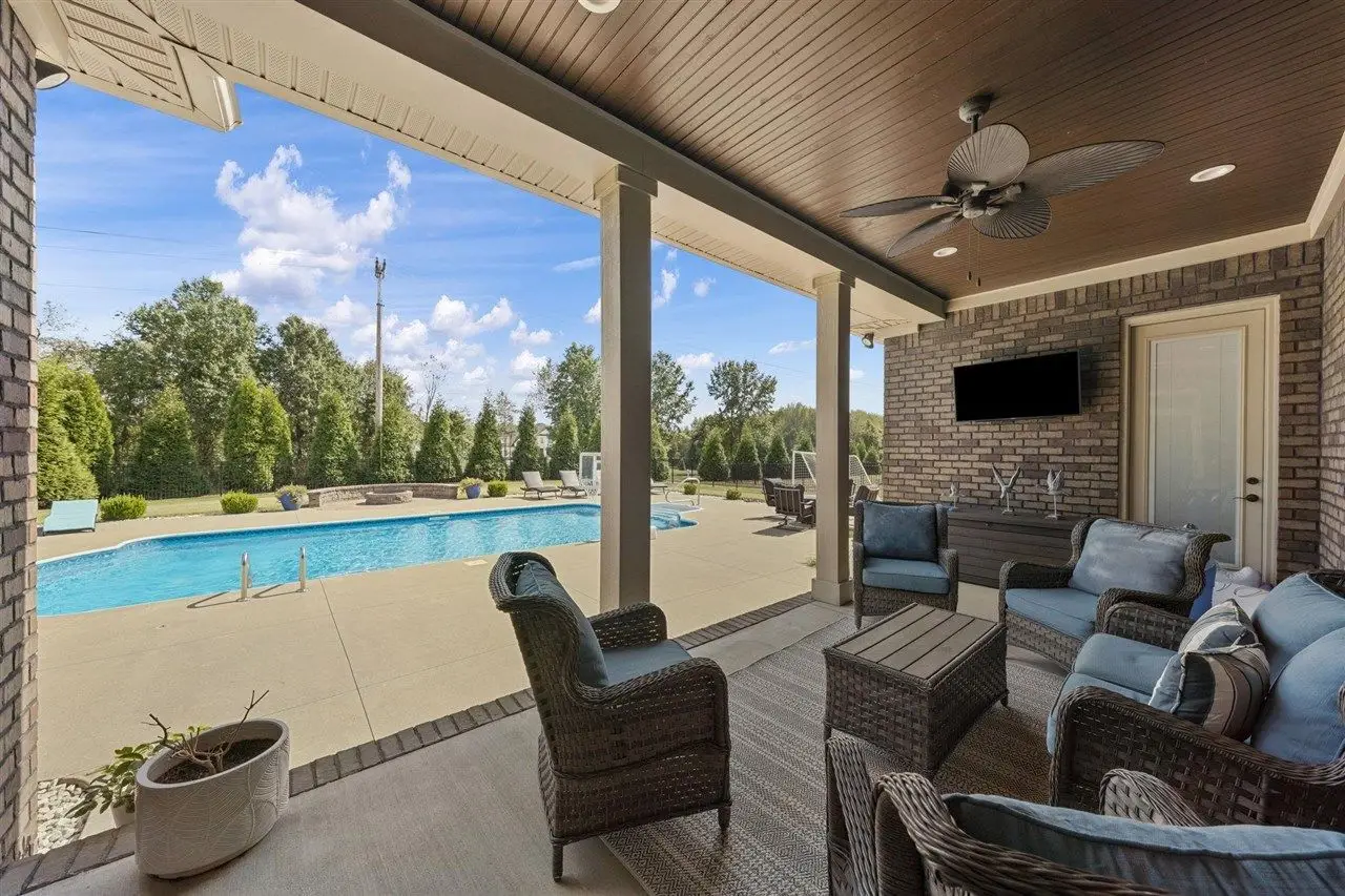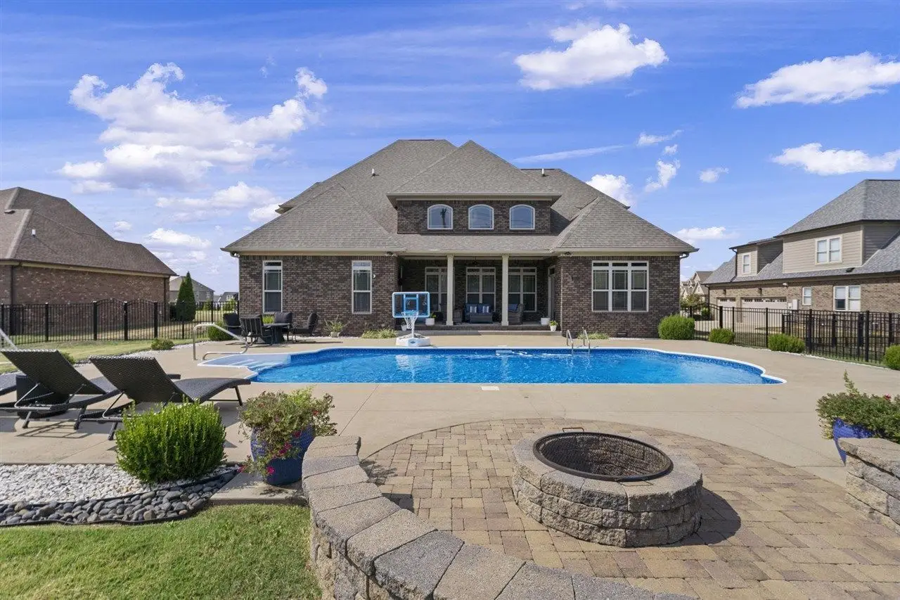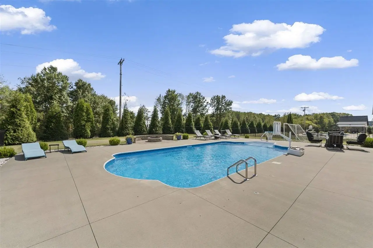 Nestled in the prestigious Summit subdivision within South Warren schools, this exquisite 5-bedroom, 3.5-bath home offers timeless design and thoughtful details throughout. A formal dining room, private home office, and open-concept living area set the stage for both everyday comfort and sophisticated entertaining. The chef's kitchen boasts granite countertops, custom cabinetry with pull-out storage, and designer touches. Hardwood floors, vaulted and tray ceilings, and a cozy gas log fireplace enhance the home's warmth and character. Outdoors, enjoy a secluded half-acre retreat featuring an inviting inground pool, firepit, and mature trees. With custom built-ins and abundant storage, this home is a true haven for refined family living.