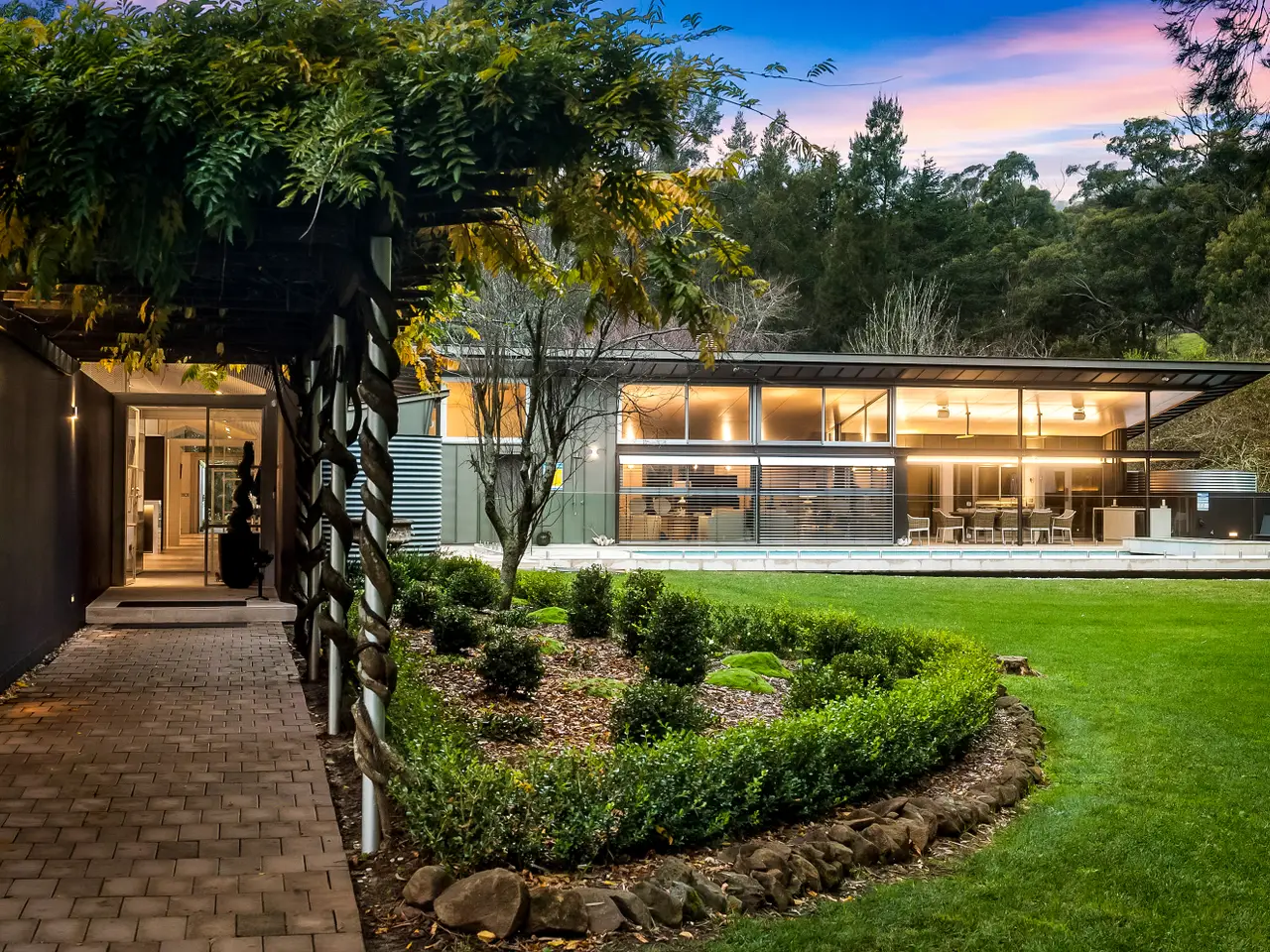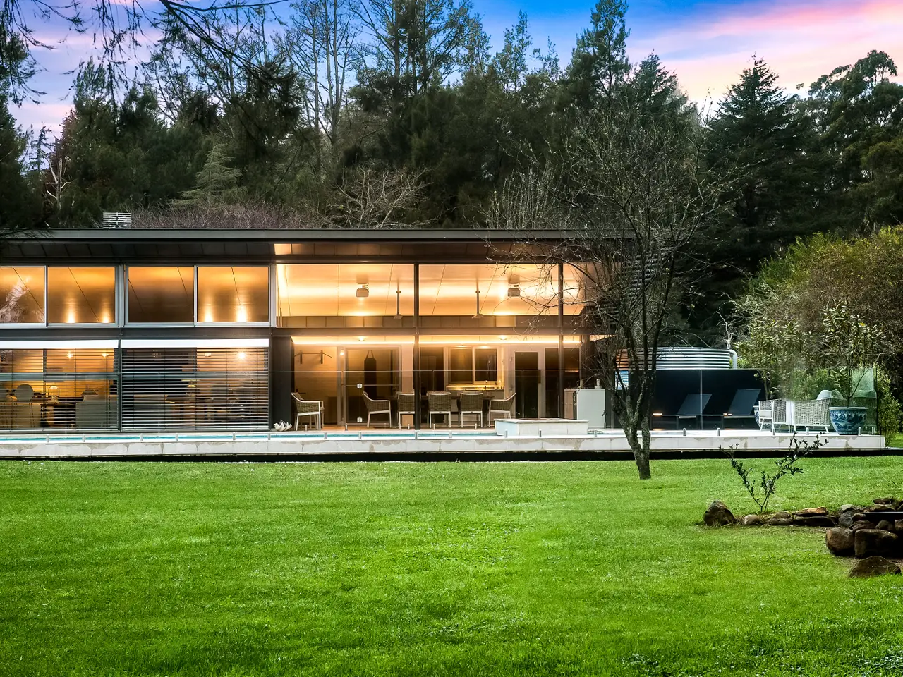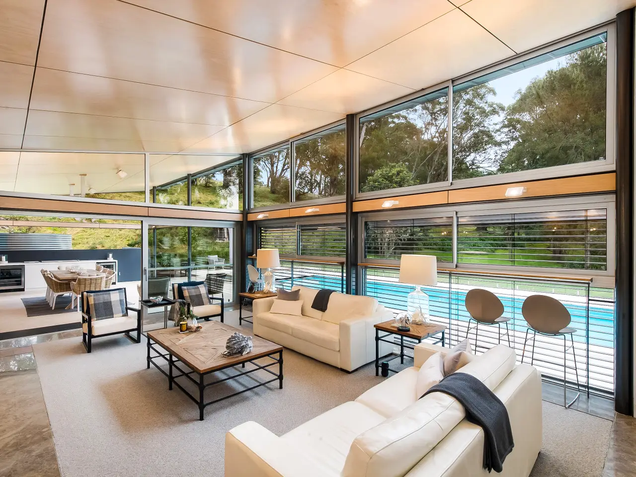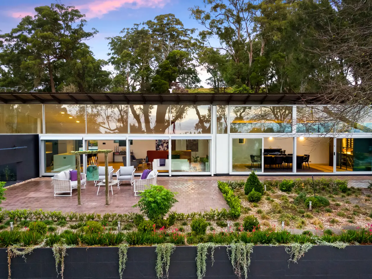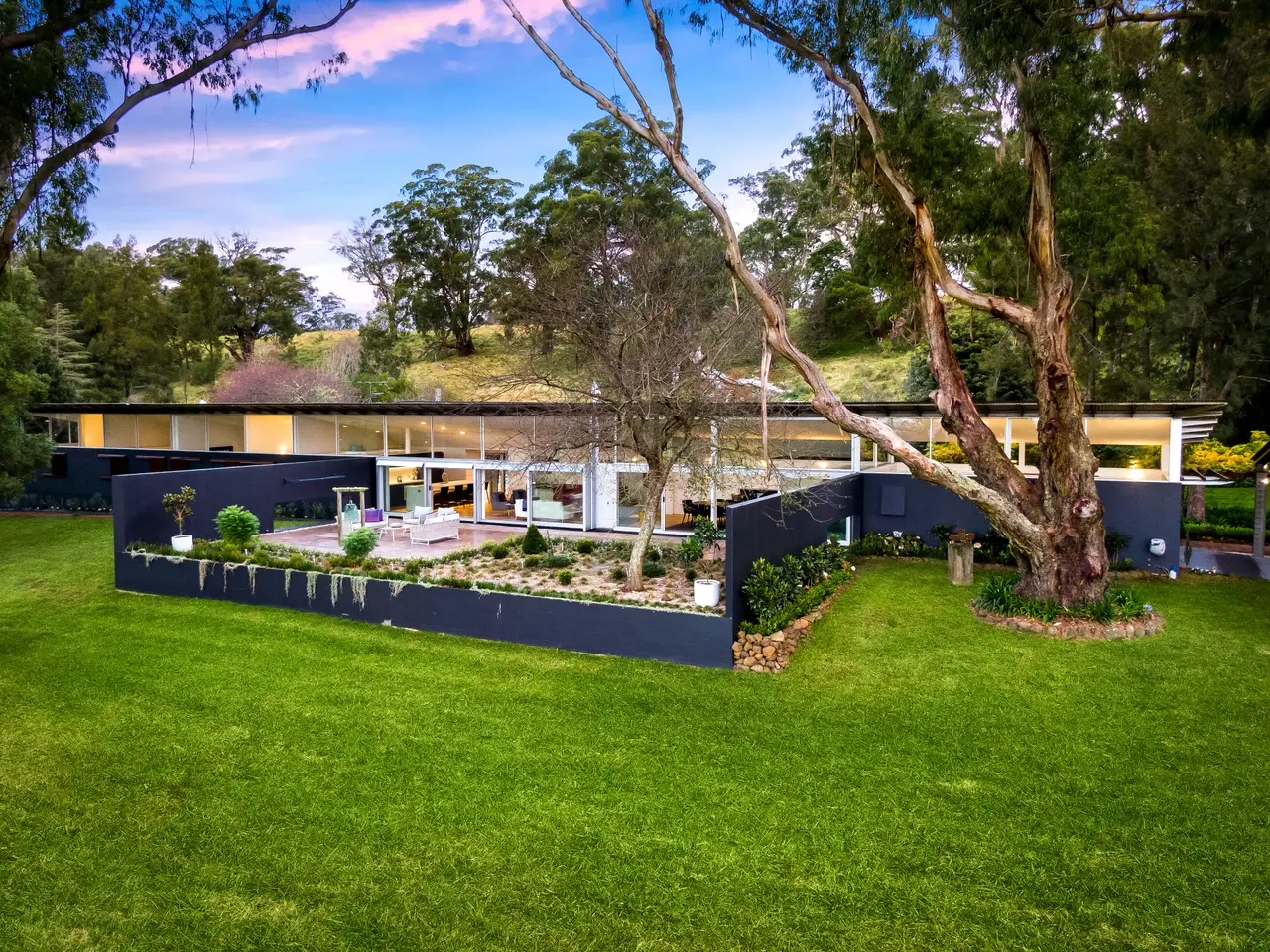 Created by Australia's most internationally renowned architect, Glenn Murcutt, 'Beacon Hill' is a modernist showcase of light, warmth and spectacular design. Completely renovated and updated in recent years, this incredible 100-acre property situated on the most prime piece of real estate between Bowral and Mittagong, has views to the Blue Mountains and sweeping countryside vistas. Named for a World War Two radio beacon that once stood on its highest point (which is also an excellent future house site if the property were to be further developed, subject to approval) 'Beacon Hill' offers luxurious family living on an exceptionally beautiful estate, just moments to the district's best restaurants and schools. The home has been designed for north-facing living and light and includes luxuries such as a family-sized sauna, resort-style heated pool and spa; open-plan living areas including a gym/play area and a separately located large office adjacent to the house. Situated along the tree-lined driveway, a modernist stables complex with storage area and six car under cover parking plus grass arena and electric horse fencing. The home offers beautifully improved pastures and paddocks and currently agists 40 head of cattle and has state-of-the-art cattle facilities and infrastructure plus several dams with good water security. For further information or to arrange an inspection, please contact Debbie at 0400 339 449 or David at 0438 846 199. Highlights of this extraordinary offering include: - New lighting and electronic front gate - New landscaped driveway - New limestone flooring; garage refurbishment (can be used as a room if desired) - Additional 3 car carport in front of the house - New lighting throughout - Spectacular 'showcase' cellar in the dining room - New kitchen with Miele appliances; newly created butler's pantry - New carpet and floorboards throughout - Underfloor heating throughout home - New marble bathrooms - New outdoor kitchen with drinks fridge - Wood fires including a Murcutt signature feature fireplace in main living - Newly planted row of conifers along front boundary to road - Double glazing; electronic concealed blinds Glenn Murcutt's stunning designs have helped to create Australia's modern architectural vernacular, and 'Beacon Hill' remains one of his finest.