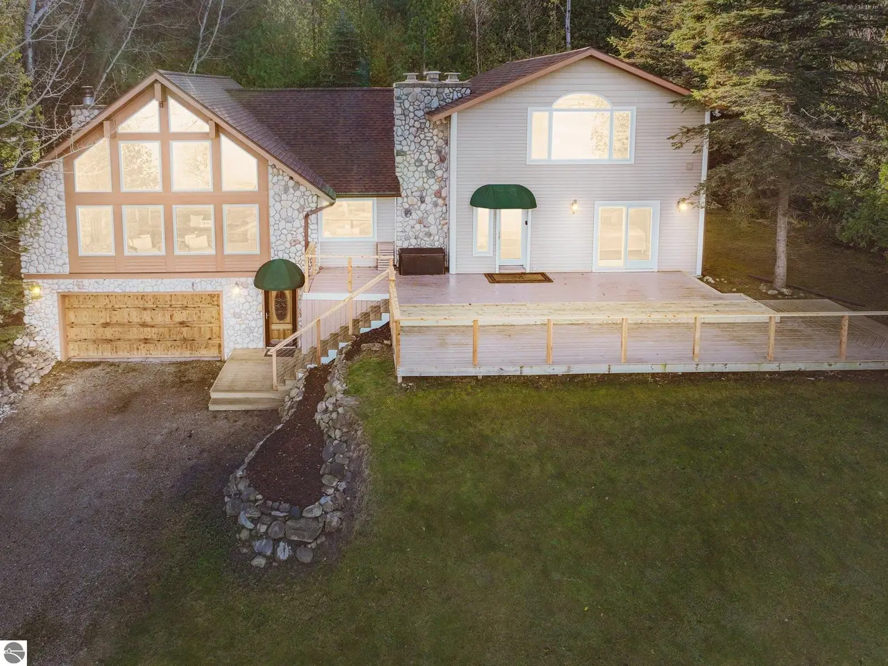 Located on the gorgeous natural shores of Lake Charlevoix, this updated 3,200 square foot luxurious home offers a perfect setting for lakefront living. With 125 feet along the lakeshore with a new dock setup and hard sandy bottom lakeshore, this setup is ideal for swimming, boating and other water activities. The home comes furnished! Inside, you'll find multiple spacious living areas, a large island kitchen with lots of space for guests to dine, two fireplaces, a large master suite with attached office, and high-end finishes throughout. Bring your boat in the summer and your skis in the winter! The property provides peaceful views of state-owned land across the lake, ensuring a natural, unobstructed landscape that won't be developed. The home is filled with natural light, thanks to large windows that frame the beautiful lake views. Recent updates include a new deck and deck railing, creating a comfortable outdoor space for enjoying the surroundings. The home could also be sold fully furnished, offering a move-in ready option for those looking to settle in quickly or use the property for rental as has been done successfully before. Also included in the property is a large pole barn with full power and water installed. This property is a great choice for anyone looking for a peaceful lakefront home with easy access to the beauty of Lake Charlevoix, as well as being a quick jaunt from Boyne City, Petoskey, and other area attractions. From the heated garage to the slopes at beautiful Boyne Mountain is only 15 minutes! Schedule your showing today!