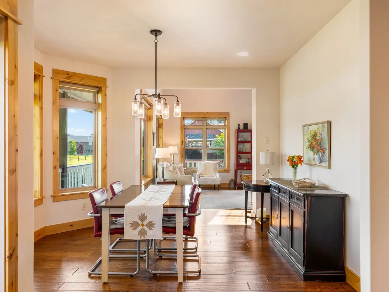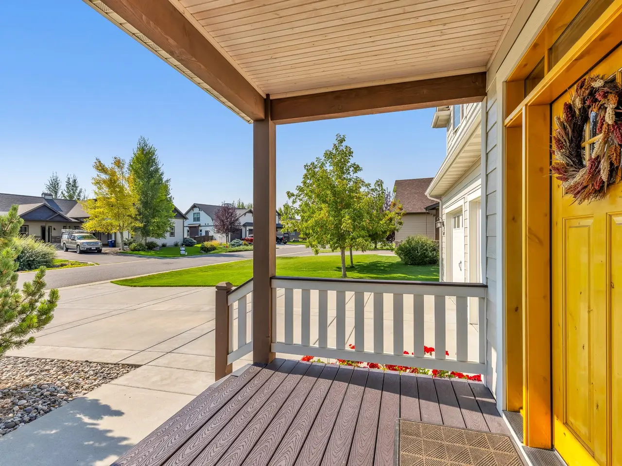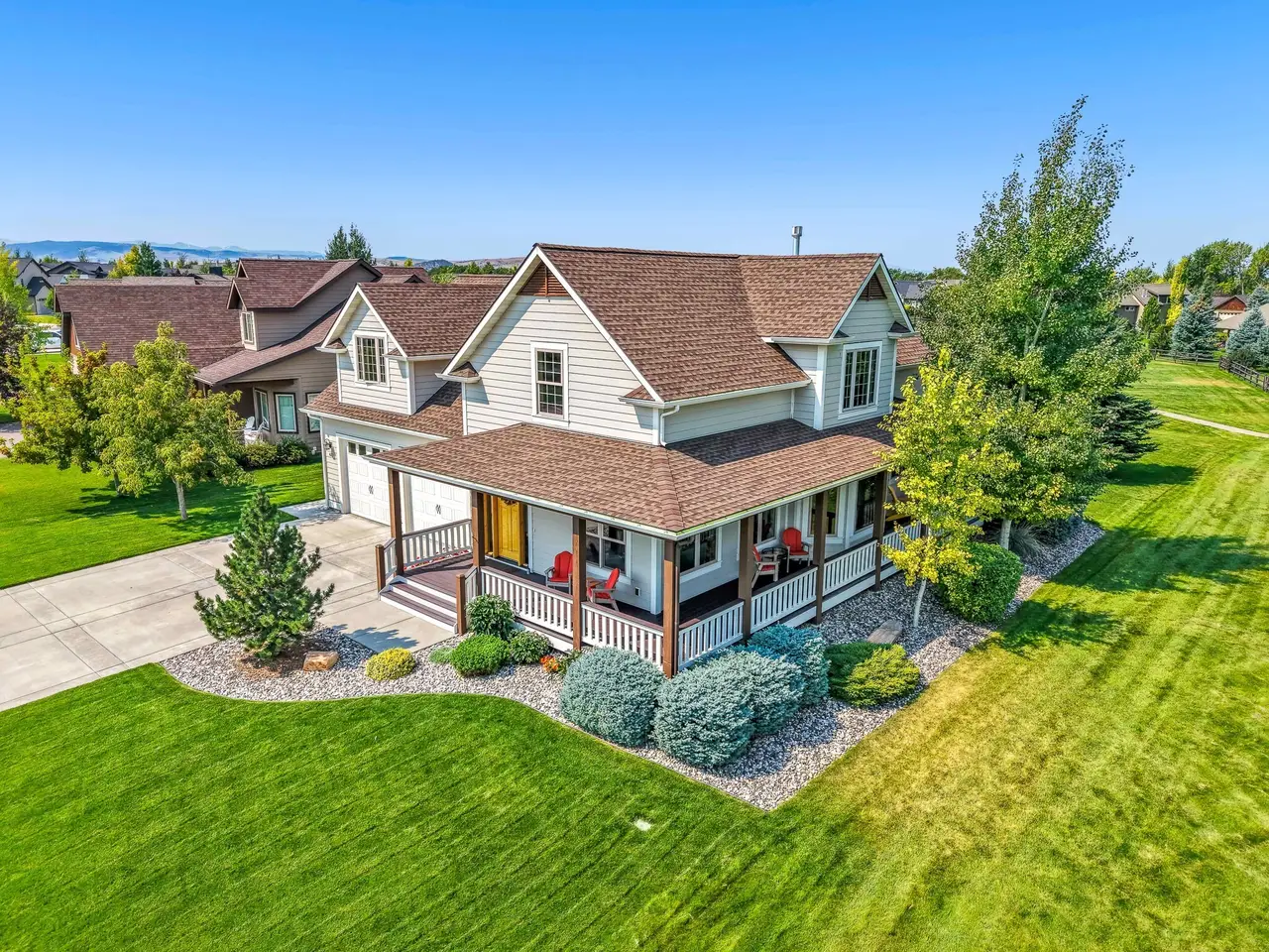 Set against the backdrop of Montana’s majestic mountain views, this four bedroom, three bath home offers 2,570 square feet of refined living in one of Bozeman’s most beloved communities. Located on a landscaped 0.25-acre lot in the Monforton School District, it’s a property that blends comfort, charm, and connection. From the moment you step onto the wrap-around porch, you’ll feel the peaceful rhythm of Middle Creek Parklands. Inside, vaulted ceilings and Hickory hardwood floors create a warm, welcoming atmosphere. The main-level primary suite provides a quiet retreat with its spacious layout and ensuite bath, while a huge bonus room upstairs offers endless possibilities. Notable Features: - Brand-new exterior siding for fresh curb appeal - Motorized blinds and central air for year-round comfort - Hot/cold water spigot in the garage - perfect for rinsing gear or caring for pets - Cozy gas fireplace in the living room for warmth and ambiance