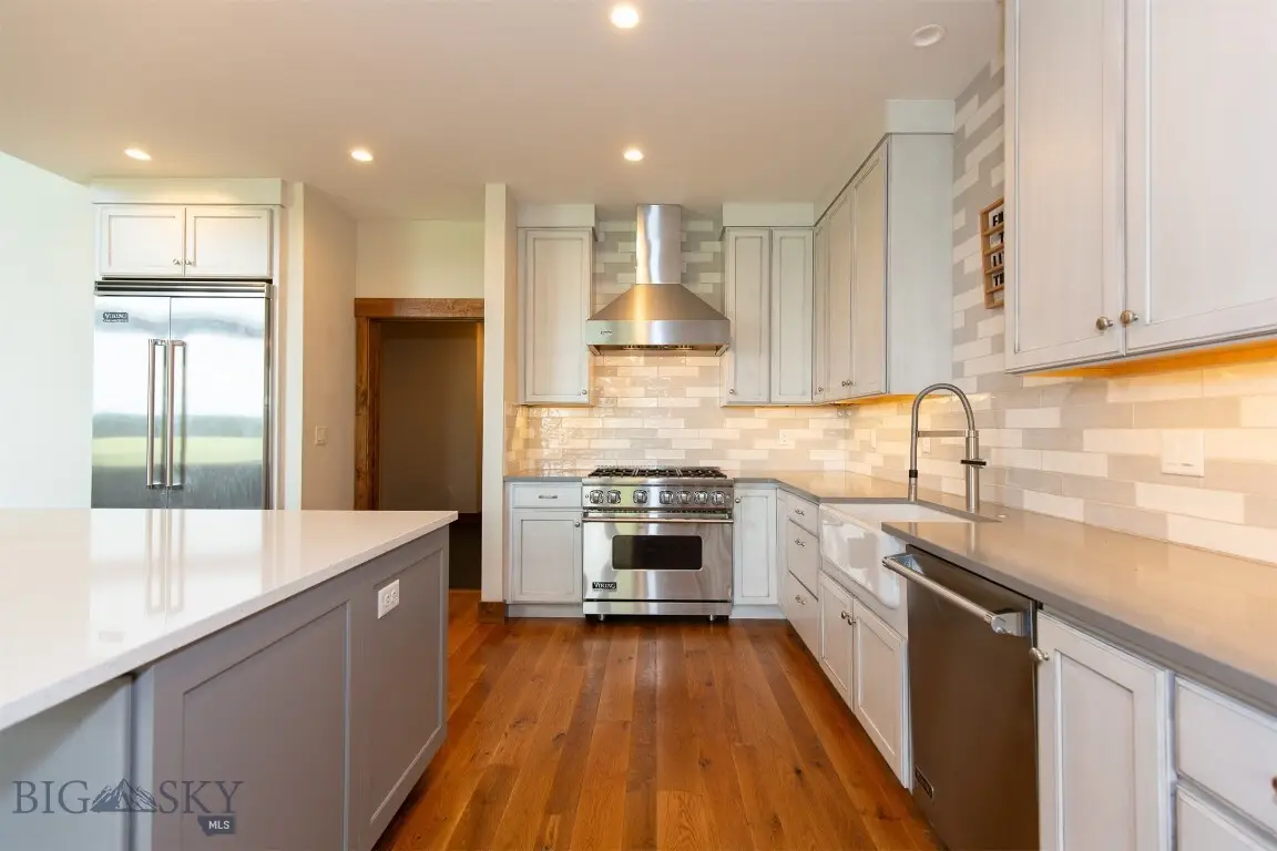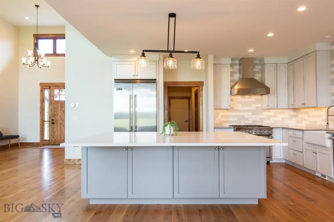Welcome to this stunning property nestled in the prestigious and desirable golf community of Black Bull. Surrounded by breathtaking mountain views, this home offers the perfect blend of modern luxury and Montana's natural beauty, ideal for those seeking a serene yet vibrant lifestyle. Featuring an elegant design with vaulted ceilings, large windows, and an open floor plan that seamlessly connects indoor and outdoor living spaces. Offering 4 spacious bedrooms, 3.5 luxurious bathrooms, an office or additional bedroom, and an expansive living area perfect for entertaining guests. There is also a bonus room situated above the garage that features a kitchenette and a half bath, making this additional space very versatile and the perfect space for a quiet guest retreat or a home office. The kitchen is equipped with state-of-the-art appliances, custom cabinetry, and a large center island, making it a chef's dream. The property also features a heated, three-car garage and ample storage space. Residents of Black Bull enjoy access to a private golf course, clubhouse, fitness center, outdoor pool, and fine dining, along with miles of walking and biking trails. Just a short drive from downtown Bozeman yet close to world-class skiing, fishing, hiking, Yellowstone National Park, and more, ensuring endless adventure year-round. With the perfect balance of convenience and tranquility, this is more than a home - it's a lifestyle. Don't miss this rare opportunity to own a piece of Montana's paradise.