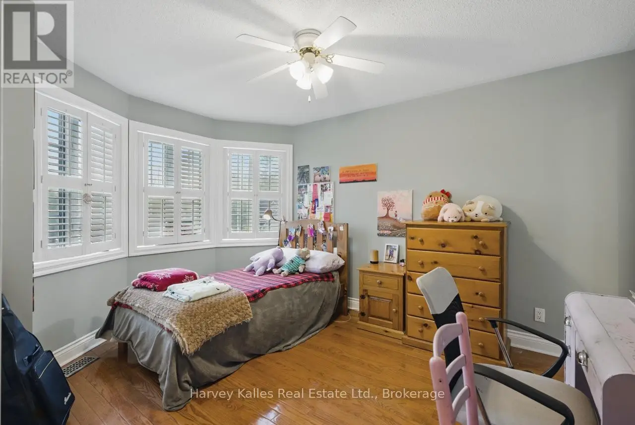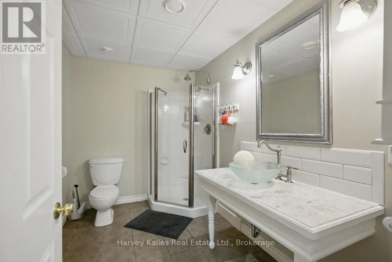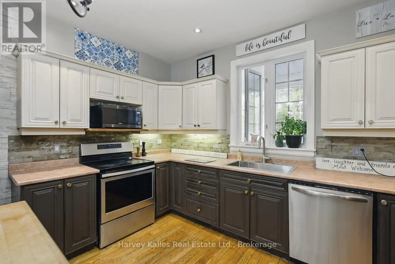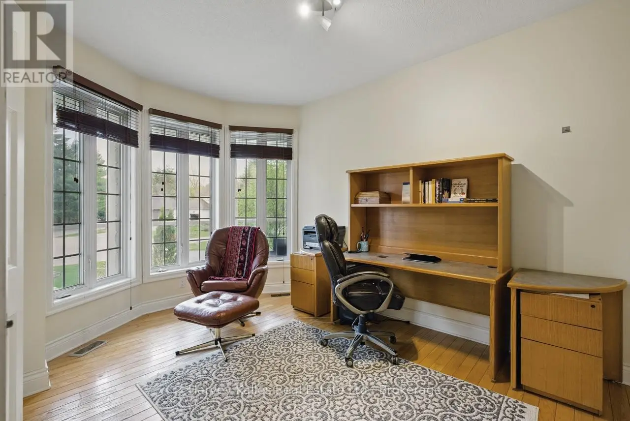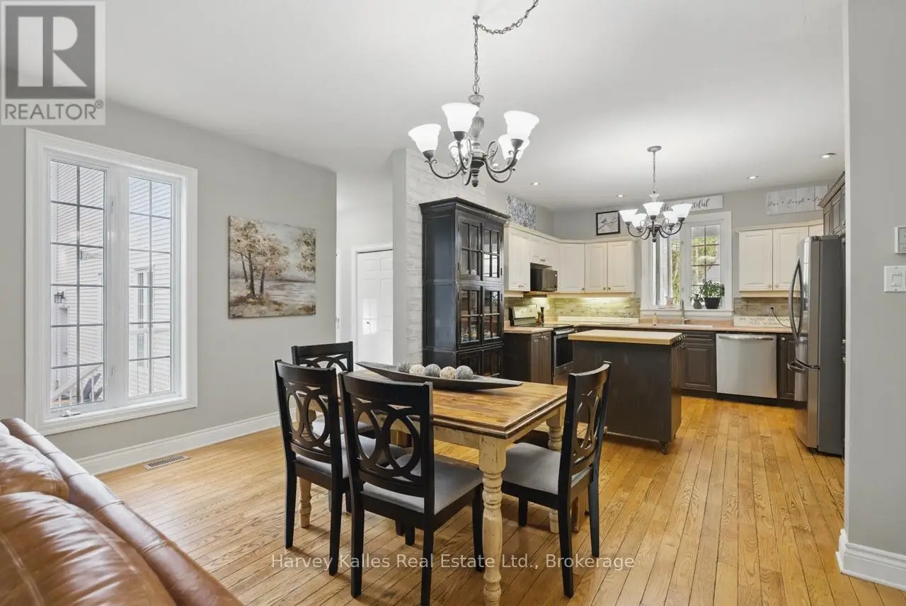 Extraordinary, postcard perfect curb appeal at this sophisticated and stunning 4-6 bedroom, 5 bathroom, 2 storey home, serving up exciting and sleek architectural details, with an invigorating layout, comfortable for just a couple, yet with a family-friendly spirit. Over 5,100 sq. ft. of beautifully flowing living space. Exquisitely positioned, in-town, on full municipal services, within walking distance of amenities, yet exclusively nestled on a quiet and secluded true 'cul-de-sac'. Melane Court is unquestionably one of Bracebridge's finest addresses. Built in 2002 and originally owned by the builder, the home stands proudly with a beautiful wrap-around covered southwest facing porch, with a cleverly tucked away attached 4-car garage along the side with paved drive, ample parking, on a large 1/2 acre lot with fully fenced garden oasis back yard. Inside, a dramatic 2-storey foyer beckons with its curved staircase. The main floor features a solar southerly office/den, hardwood floors, formal living room, dining room, eat-in kitchen, and separate family room. Plus a handy mudroom, powder room, and MF laundry room. Upper level presents 3 sizeable bedrooms plus a loft, one with an ensuite privilege, one fully ensuited, plus the 1,100+ sq. ft. primary wing featuring a private den/T.V. room, walk-in closet, ensuite with soaker tub, sauna, studio, and walk-out to deck. Finished lower level is a flexible space with access from the garage, 3 pc. bath, ample storage, bedroom, gymnasium, and rec. room. Potential to create a nanny's suite with the basement. 10 kW back-up generator, central air, forced air gas heat, multiple fireplaces. Newly resurfaced back deck and large patio area with custom greenhouse, and separate gazebo enliven outdoor living. An executive family home in a neighborhood where very, very rarely is anything offered for sale. This is a truly exemplary offering exuding so much warmth and charm, with features and facets everyone desires. (id:16999)