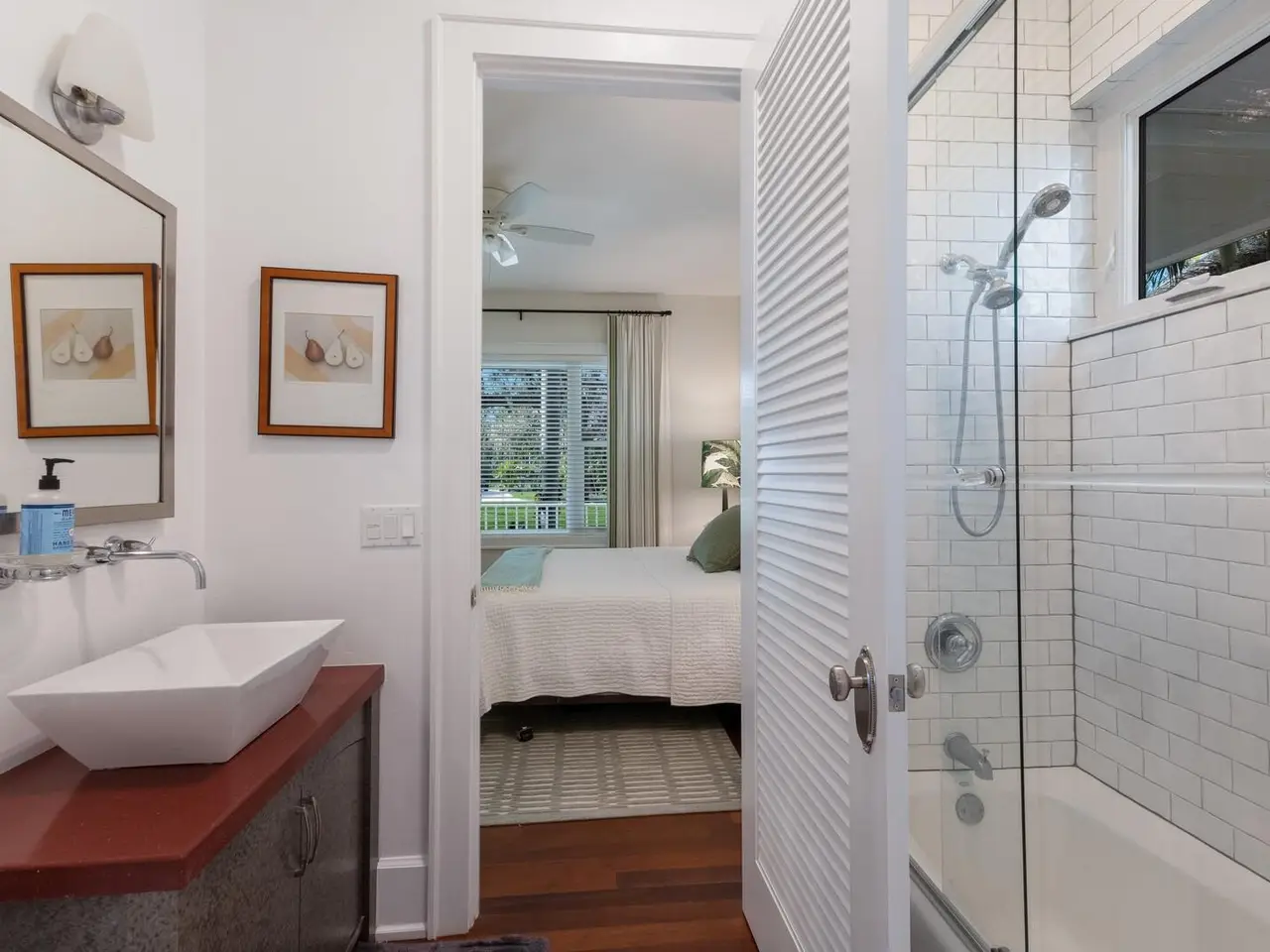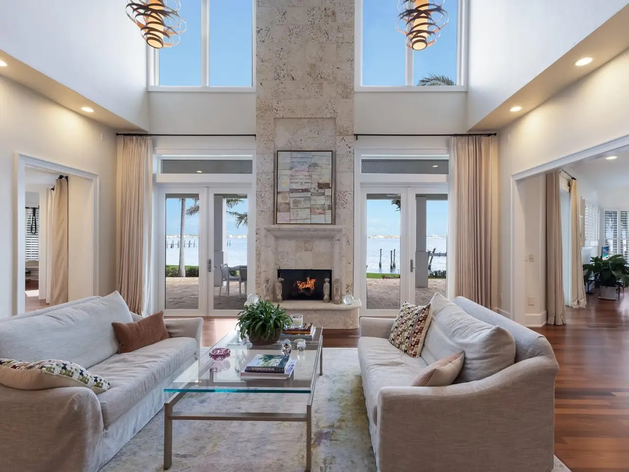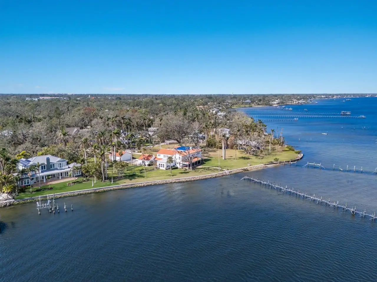 This exquisite four bedroom, 4-1/2-bath custom-built residence, designed by Mark Sultana, offers an unmatched combination of luxury and comfort. Situated along the Manatee River, this property once served as the original landing for the Fogartyville/Palmetto Ferry and provides breathtaking water views from nearly every window. The grand entrance features a stunning custom circular staircase that sets the tone for the entire home, showcasing impeccable craftsmanship and attention to detail. The expansive living areas are highlighted by a full-height travertine fireplace, creating a striking focal point and an inviting atmosphere. Throughout the home, pecky cypress ceilings add unique character and warmth, while Brazilian cherry hardwood floors provide timeless elegance. Custom lighting enhances the elegant ambiance, further elevating the home's refined interior. The thoughtfully designed layout boasts spacious bedrooms, luxurious bathrooms, and high-end finishes, ensuring both beauty and functionality in every corner. The spacious primary suite is a serene retreat with French doors leading to a private balcony with stunning river views, an oversized walk-in closet with custom built-ins to maximize storage and organization and a luxurious ensuite bathroom clad in polished travertine tiles and thoughtful high-end finishes. Guests will enjoy their own private space in the garage apartment complete with a fully appointed kitchenette, bathroom and of course, a beautiful view! All windows and doors were replaced in 2023 with PGT hurricane-impact rated panels, ensuring protection during stormy weather without sacrificing style or natural light. The property also boasts two convenient laundry rooms and solar panels for enhanced energy efficiency while lowering monthly utility bills. Best of all, the home was untouched by the recent storms that passed through the area. Outside, mature landscaping surrounds the property, providing privacy and tranquility. A circular driveway welcomes guests and the front and rear porches are adorned with the timeless charm of Chicago bricks – all adding to the home's stately presence. Whether enjoying the serene river views (you have direct access to the Gulf with no bridges) or entertaining in style, this stunning residence is a true sanctuary for those seeking an extraordinary lifestyle. Enjoy a day at the world-renowned, sugar-sand beaches of Anna Maria Island and all the local island amenities, or take in the many restaurants, shops, museums and culture of nearby Downtown Bradenton - if that isn't enough Sarasota and Tampa/St Pete are a quick trip away!