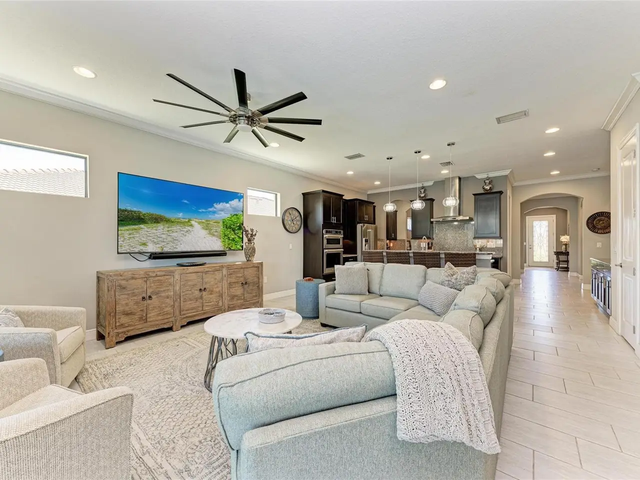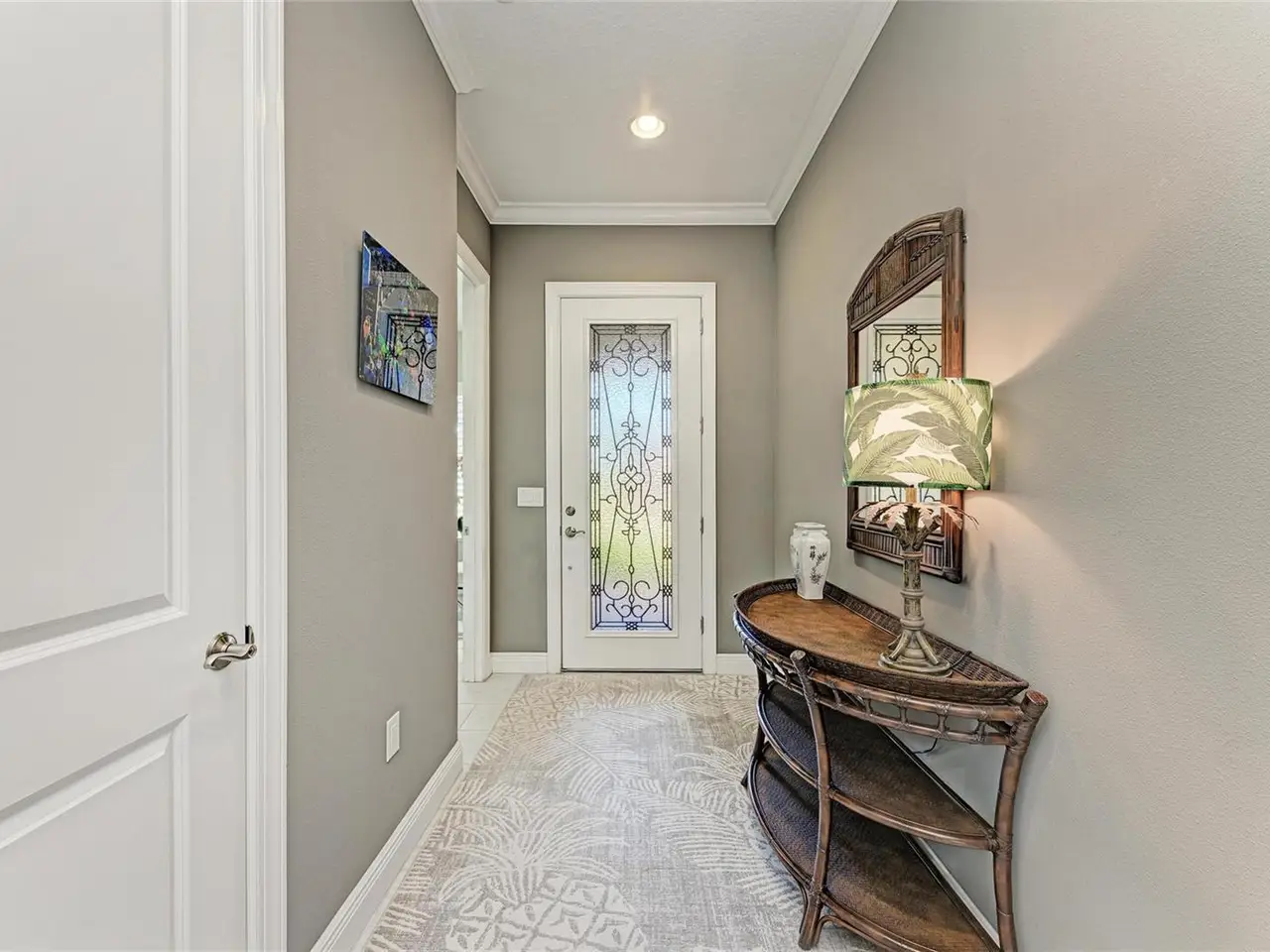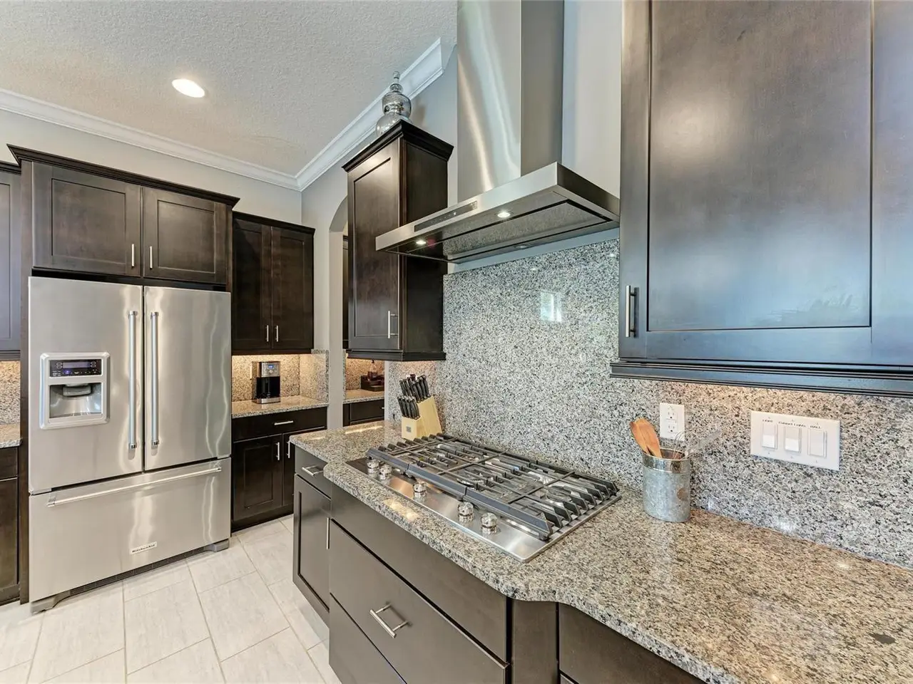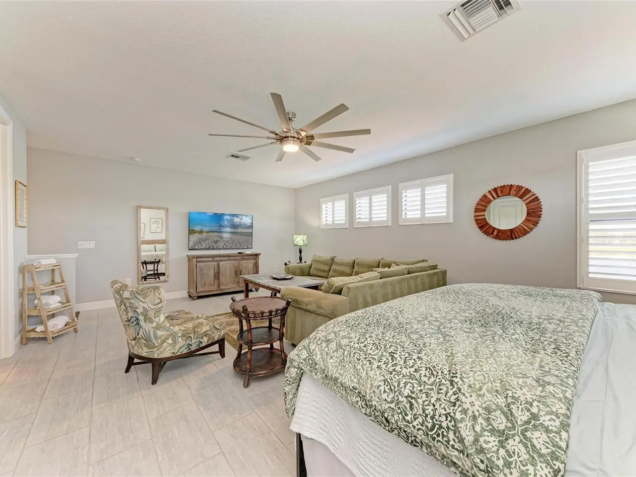 Discover this beautifully upgraded 4 bedroom, 4.5 bathroom home with tranquil water views in the gated Rosedale Golf & Country Club, designed for both luxury living and effortless entertaining. Featuring tile flooring throughout, crown molding, plantation shutters, custom draperies, and designer light fixtures, every detail has been thoughtfully curated to create a space that is sophisticated, welcoming, and move-in ready. The chef’s kitchen is a showpiece, offering granite counters and backsplash, custom cabinetry, abundant prep space, high-end KitchenAid appliances, a 5-burner gas cooktop, walk-in pantry, and a large island with breakfast bar and seating for family and friends. A butler’s pantry connects the kitchen to the formal dining room, making entertaining effortless. The kitchen opens to the great room, where sliding doors lead to the amazing outdoor living area. The backyard is an entertainer’s dream. Host gatherings or relax outdoors with a spacious entertaining area, heated saltwater pool and spa with sun shelf, travertine pavers, and lush, upgraded landscaping. The outdoor kitchen features two small beverage/wine refrigerators and a large island with seating, creating the perfect space for grilling, poolside dining, or enjoying quiet moments while taking in the beautiful water views. The owner’s suite is a luxurious retreat, offering picturesque water views, a large walk-in closet, dual sinks with granite counters, and a walk-in frameless glass shower. Two additional first-level bedrooms with ensuite bathrooms offer privacy and comfort. Upstairs, a generous loft bedroom suite with full bath and walk-in closet is ideal for overnight guests, extended stays, or a versatile media/game space. Additional upgrades include impact-resistant windows and sliding glass doors, tankless gas water heater, gutters, and designer touches throughout, ensuring both beauty and functionality. Living in Rosedale Golf & Country Club offers a resort-style lifestyle. Low HOA fees cover all landscaping and irrigation maintenance, high-speed fiber internet and cable, two manned 24/7 guard gates, plus two dog parks for residents. Social membership at the club provides access to tennis, a 22,000 sq ft clubhouse, fitness center, studio classes, full-service restaurant, Jr. Olympic-size heated pool, and year-round social events. For the avid golfer, Rosedale offers various levels of optional golf membership. Ideally located near I-75, Lakewood Ranch, UTC Mall, top-rated schools, shopping, dining, parks, medical facilities, and world-famous beaches, this home perfectly blends luxury, comfort, and an entertainer’s dream lifestyle.