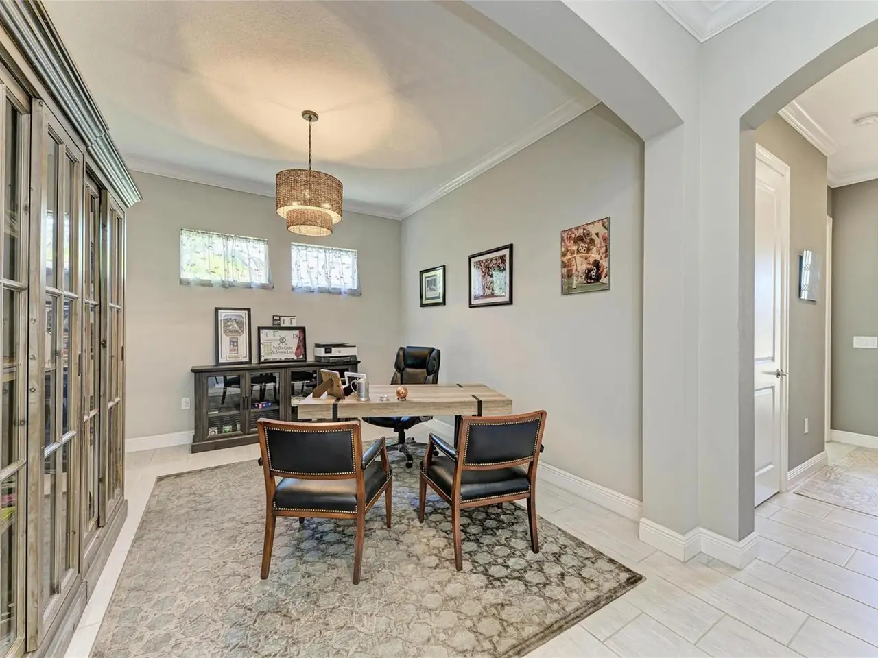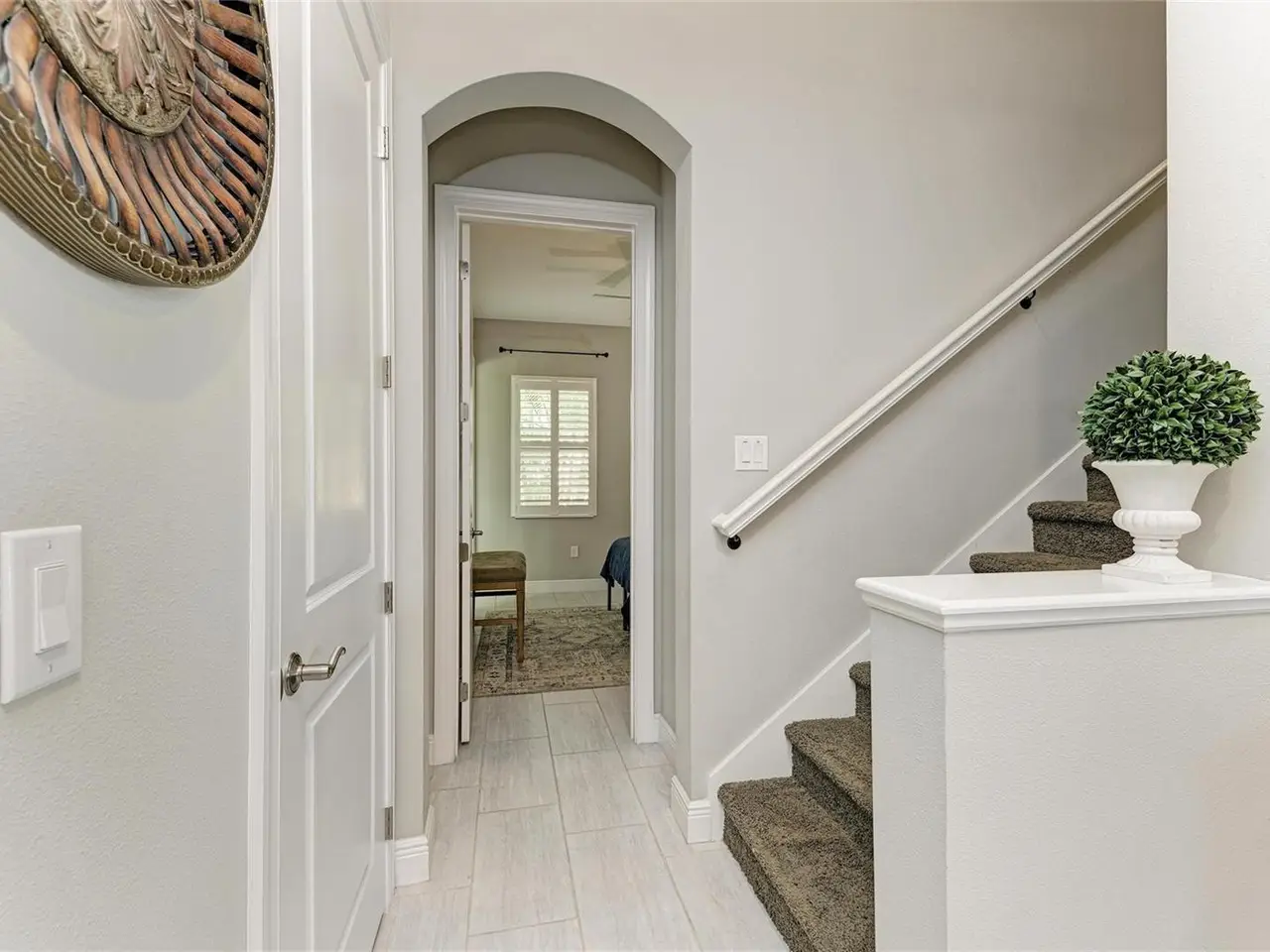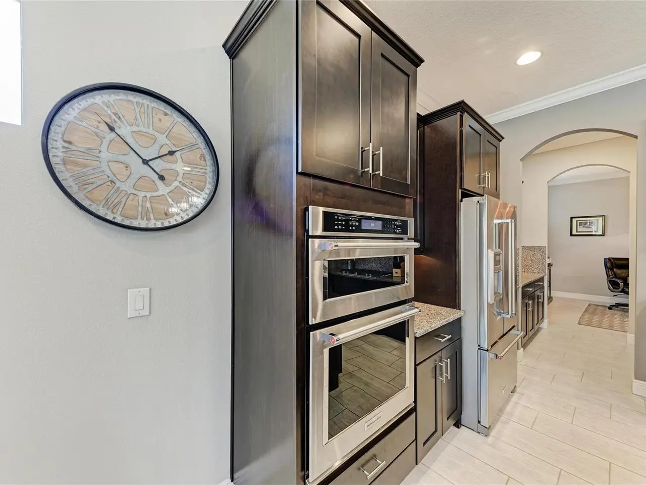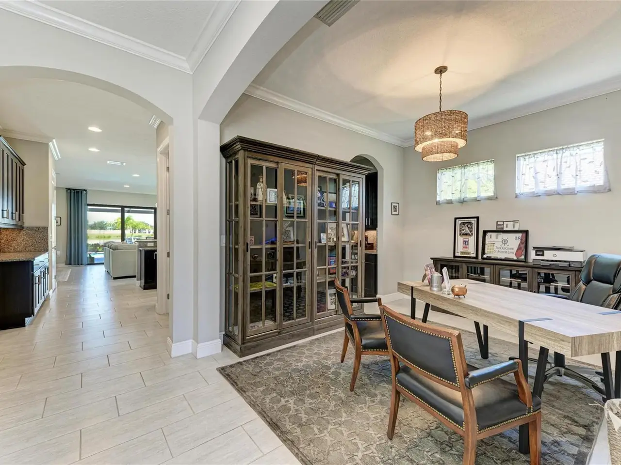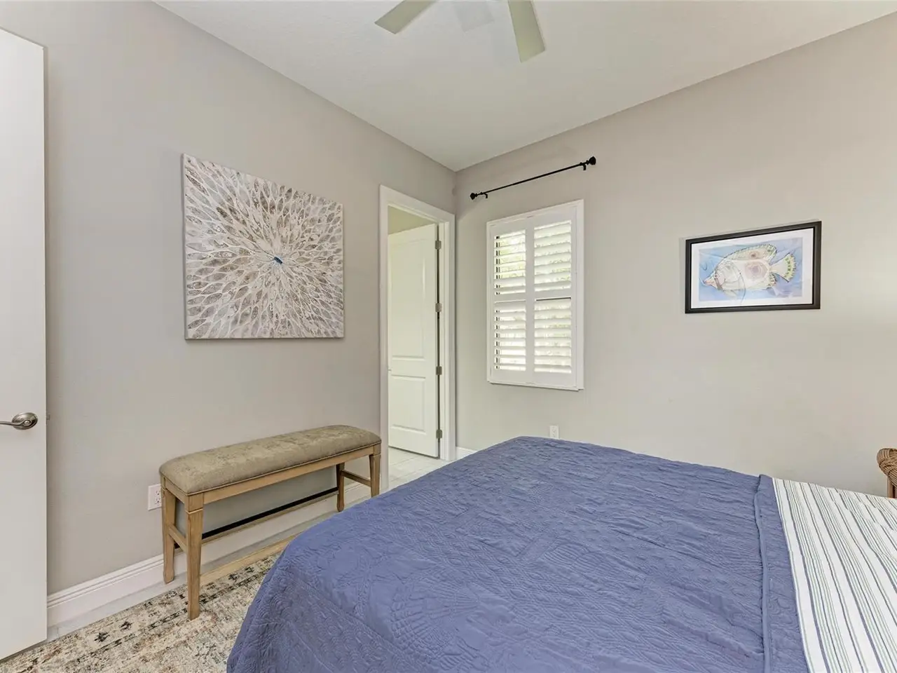 Discover this beautifully upgraded 4 bedroom, 4.5 bathroom home with tranquil water views in the gated Rosedale Golf & Country Club, designed for both luxury living and effortless entertaining. Featuring tile flooring throughout, crown molding, plantation shutters, custom draperies, and designer light fixtures, every detail has been thoughtfully curated to create a space that is sophisticated, welcoming, and move-in ready. The chef’s kitchen is a showpiece, offering granite counters and backsplash, custom cabinetry, abundant prep space, high-end KitchenAid appliances, a 5-burner gas cooktop, walk-in pantry, and a large island with breakfast bar and seating for family and friends. A butler’s pantry connects the kitchen to the formal dining room, making entertaining effortless. The kitchen opens to the great room, where sliding doors lead to the amazing outdoor living area. The backyard is an entertainer’s dream. Host gatherings or relax outdoors with a spacious entertaining area, heated saltwater pool and spa with sun shelf, travertine pavers, and lush, upgraded landscaping. The outdoor kitchen features two small beverage/wine refrigerators and a large island with seating, creating the perfect space for grilling, poolside dining, or enjoying quiet moments while taking in the beautiful water views. The owner’s suite is a luxurious retreat, offering picturesque water views, a large walk-in closet, dual sinks with granite counters, and a walk-in frameless glass shower. Two additional first-level bedrooms with ensuite bathrooms offer privacy and comfort. Upstairs, a generous loft bedroom suite with full bath and walk-in closet is ideal for overnight guests, extended stays, or a versatile media/game space. Additional upgrades include impact-resistant windows and sliding glass doors, tankless gas water heater, gutters, and designer touches throughout, ensuring both beauty and functionality. Living in Rosedale Golf & Country Club offers a resort-style lifestyle. Low HOA fees cover all landscaping and irrigation maintenance, high-speed fiber internet and cable, two manned 24/7 guard gates, plus two dog parks for residents. Social membership at the club provides access to tennis, a 22,000 sq ft clubhouse, fitness center, studio classes, full-service restaurant, Jr. Olympic-size heated pool, and year-round social events. For the avid golfer, Rosedale offers various levels of optional golf membership. Ideally located near I-75, Lakewood Ranch, UTC Mall, top-rated schools, shopping, dining, parks, medical facilities, and world-famous beaches, this home perfectly blends luxury, comfort, and an entertainer’s dream lifestyle.