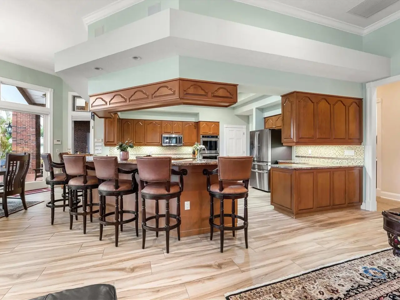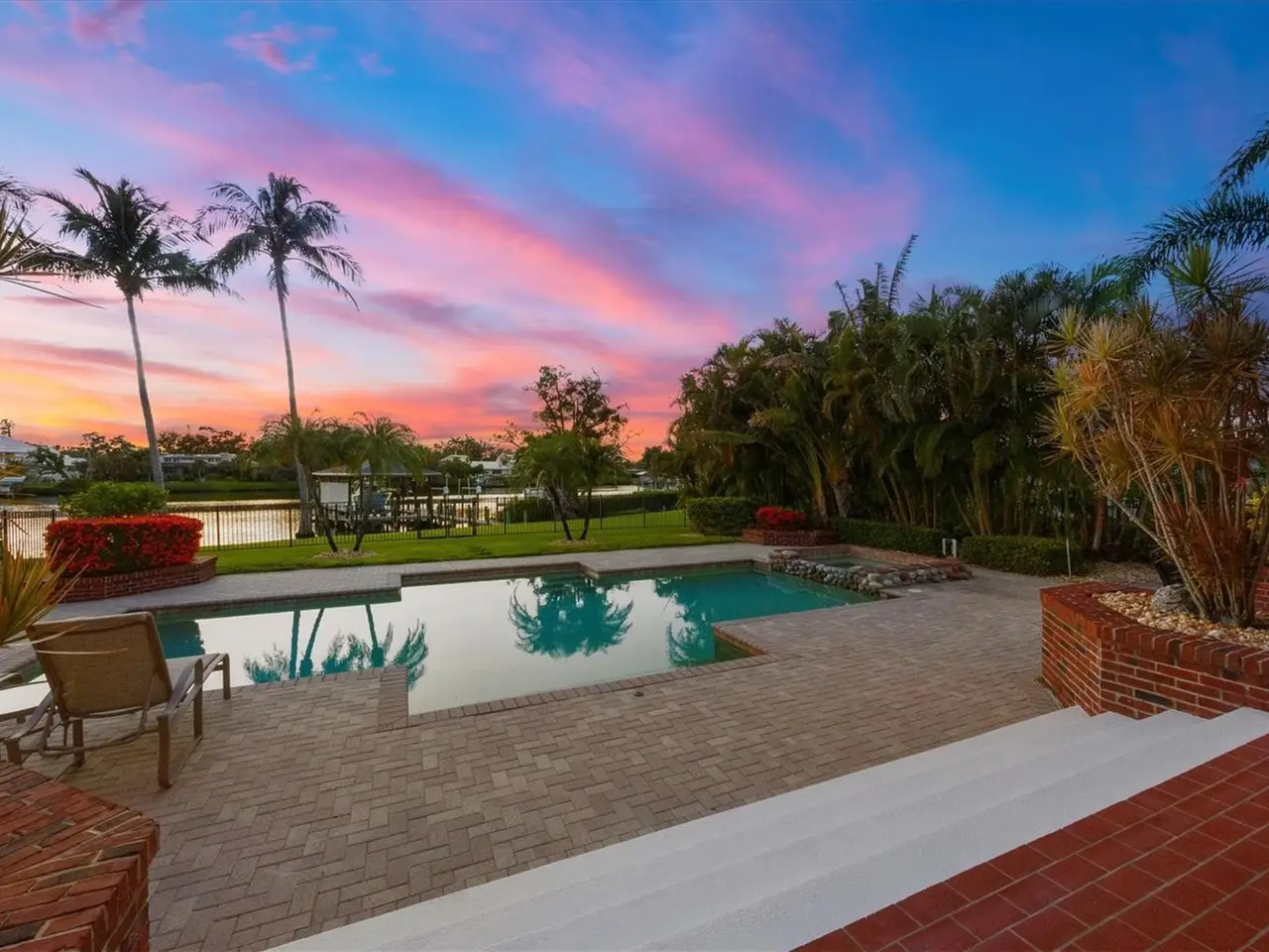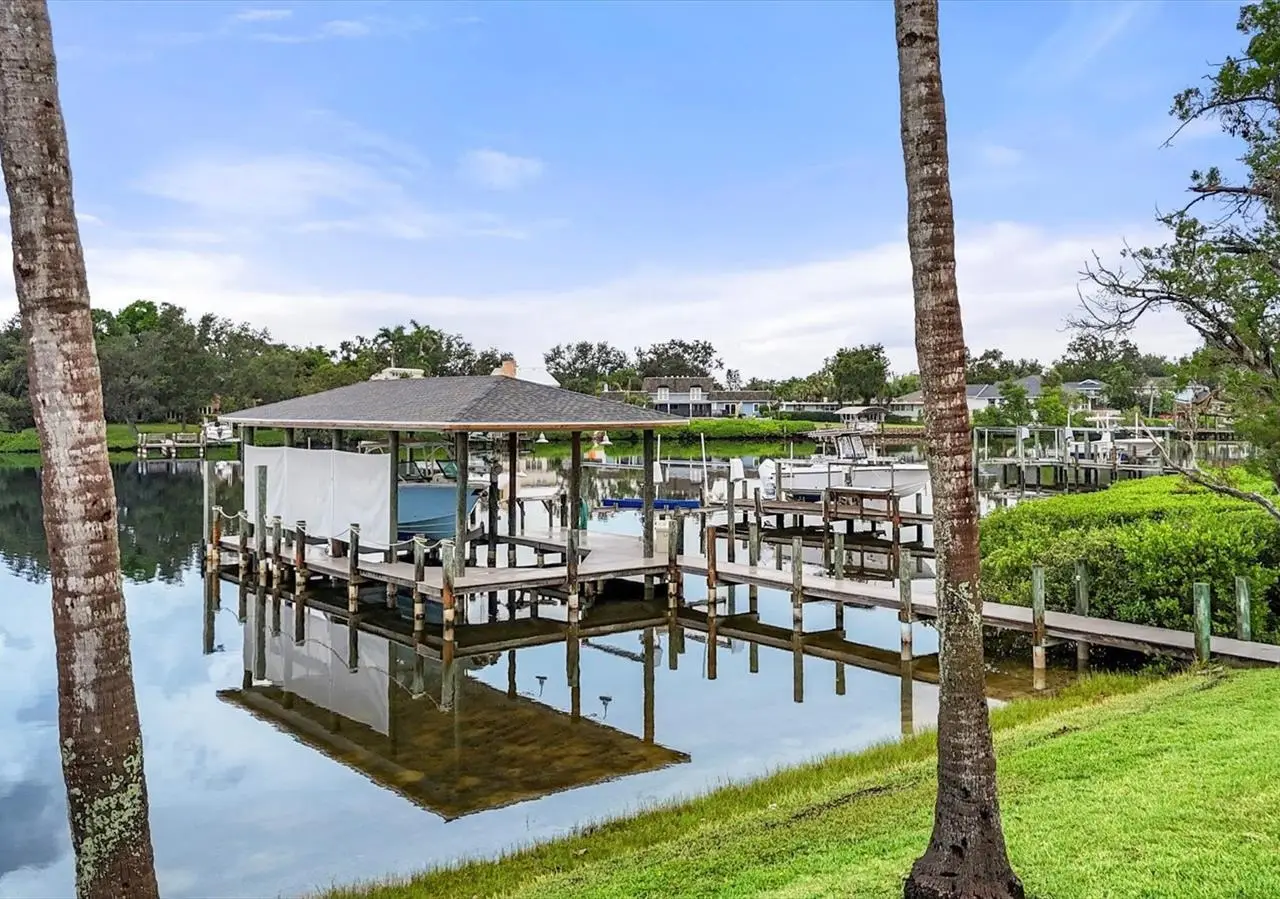 A boater's tropical paradise awaits you in this custom-built home located on Warner's West Bayou in desirable NW Bradenton. Imagine living the FL boating lifestyle where you can be out in your boat fishing or sightseeing in the beautiful Tampa Bay in a matter of minutes. This luxurious estate home features 4025 square feet with 3 bedrooms + den with 2 full baths + 2 half baths plus an oversized saltwater pool on a boatable waterfront lot. This beautiful home sits on an estate sized lot with 100' of water frontage and no HOA. There is a large covered dock that includes two boat lifts, one that is covered and fits a 50-foot yacht, 25,000lb lift, with water & electric & a fish cleaning station. Coming into the home are beautiful mahogany double doors with glass inserts that welcome you and set the scene for elegant living. Upon entering the home, you will love the open floor plan with its high ceilings and beautiful water views. The living and dining rooms are inviting, spacious, and feature wood floors, elegant crown moldings, chair rails and custom built-ins. To enjoy large gatherings and family fun there is an impressive, oversized family room/game room with wood-burning fireplace and large windows that let in the sunshine, pool, and water views. The spacious kitchen which opens to the family room is a chef's dream with wood cabinetry, granite countertops, tile backsplash, newer stainless-steel appliances, a large center island with prep sink, and a built-in desk. Rest and relax in the master bedroom suite overlooking the lovely backyard with sliding doors opening to the pool area and water views. The master bath features travertine floors, a large walk-in shower and large tub made for two. Separated from the master bedroom are two spacious bedrooms and a hall bathroom with tub and walk-in shower. Next is the laundry room that is oversized featuring a newer washer & dryer, laundry sink, plenty of cabinets and a large closet. Out back everyone will love the oversized covered lanai that is a dream come true and keeps you shaded during the day while your family is enjoying the sunshine in the pool and spa. There is a pool bath and an outside shower plus a storage closet for all your boating gear. Watching the sunsets views while sitting on the lanai with your favorite beverage is a lovely way to end the evening. The backyard is fenced for your family and pets to run and play and there is an open beach for kayaking or canoeing. Another great feature is the oversized 40-foot three-car insulated A/C'd garage with large semi-circular driveway with parking area. Plenty of room to park, store your possessions, and work on your cars. All this is conveniently located to Sarasota/Bradenton airport, IMG Academy, restaurants, shopping, and the beautiful AMI Gulf beaches.