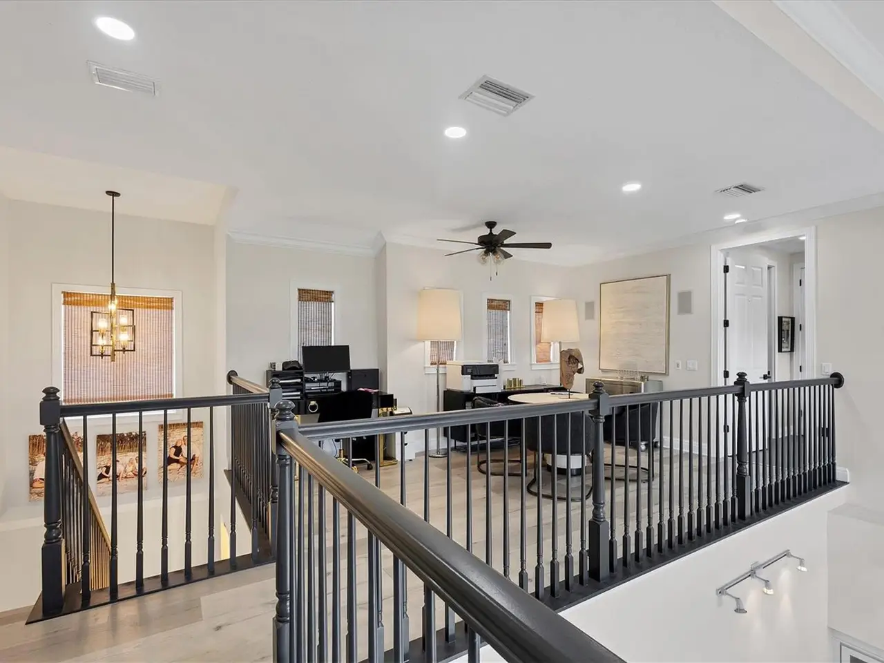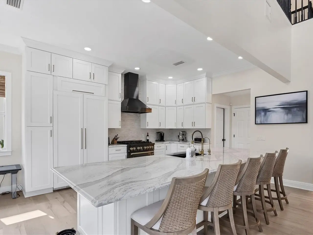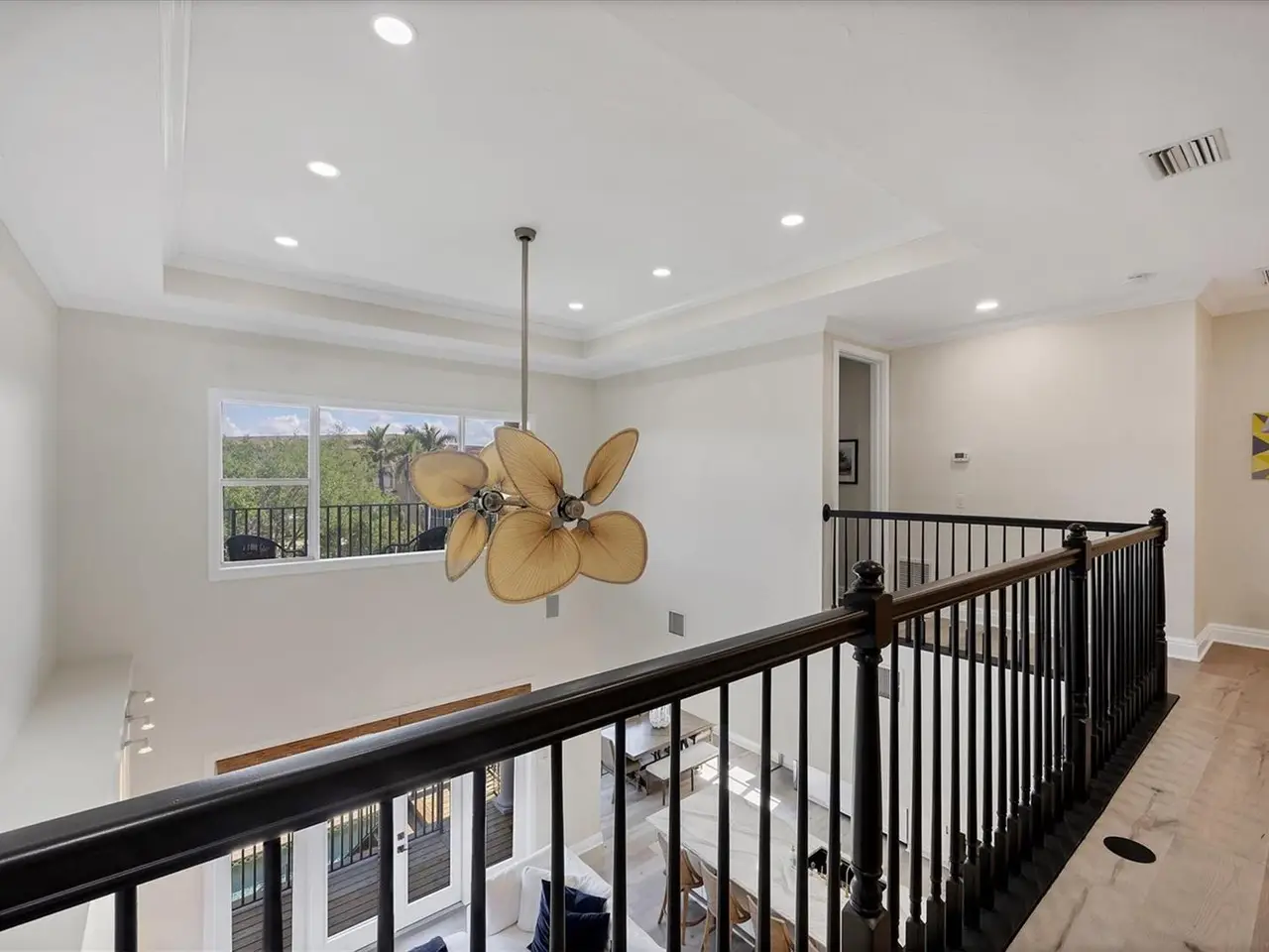 Key West-style custom-built 3-bedroom, 3.5-bath waterfront home located on deep water Crystal Canal in the gated community of Hawks Harbor. Metal roof and over $322,000 in renovations completed in 2022. Layout includes a soaring-ceiling family room, a lower-level flex space with two additional storage areas, and an upstairs loft ideal for a home office, sitting area, or game room. All bedrooms are ensuite. Kitchen features Zline and Decor appliances, Quartz countertops, stone backsplash, farmhouse sink, pantry closet, eat-in space, and a long island seating five. A whole-house water filtration system is included. The master suite includes French doors to a private balcony, step ceiling, walk-in custom closet, double sink with decorative fixtures, large walk-in shower with rain head and body sprays, garden tub, and a stone feature wall. Both secondary bedrooms feature tile flooring, walk-in closets, French doors to a balcony, and remodeled bathrooms with rain head and body spray showers. Laundry room includes Samsung washer/dryer, sink, and storage cabinetry. Outdoor amenities include a cozy front porch with composite decking, fenced backyard, spacious covered area, heated saltwater pool and spa with Pentair EasyTouch remote, putting green, Gardenia trees, grass yard with Invisible Fence. 23' new dock with water and electric plus a Jet Ski floating dock. Major systems: 2021 water heater; HVACs replaced in 2020, 2021, and 2022. Additional upgrades: luxury vinyl flooring, new interior and exterior paint, new front door, new main-level deck and stairs, new interior and exterior lighting including all new interior LEDs, new concrete sidewalk, impact glass, crown molding, paver driveway and walkway, wall/ceiling speakers, and freshly painted 26-foot-deep 2-car garage with ample storage. Conveniently located minutes from downtown Sarasota and IMG Academy, with close proximity to Sarasota Airport, restaurants, shops, St. Armands Circle, and Gulf beaches.
