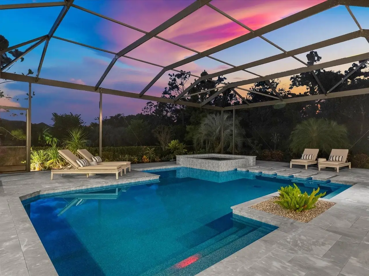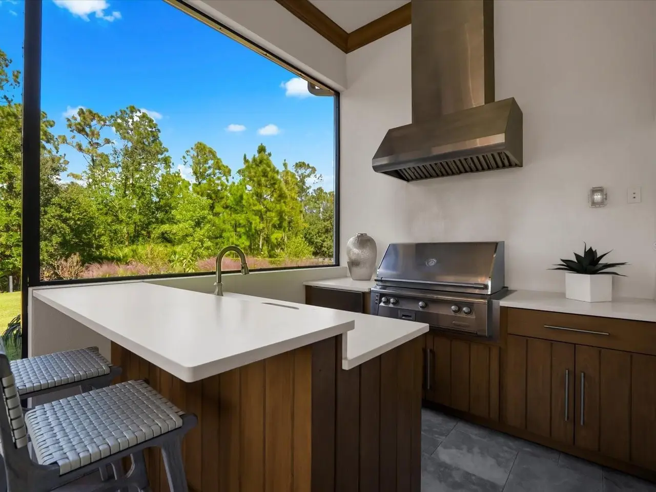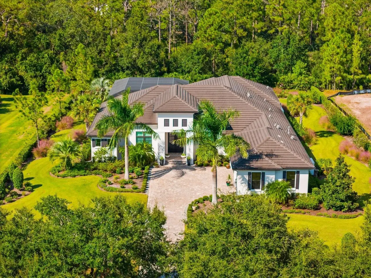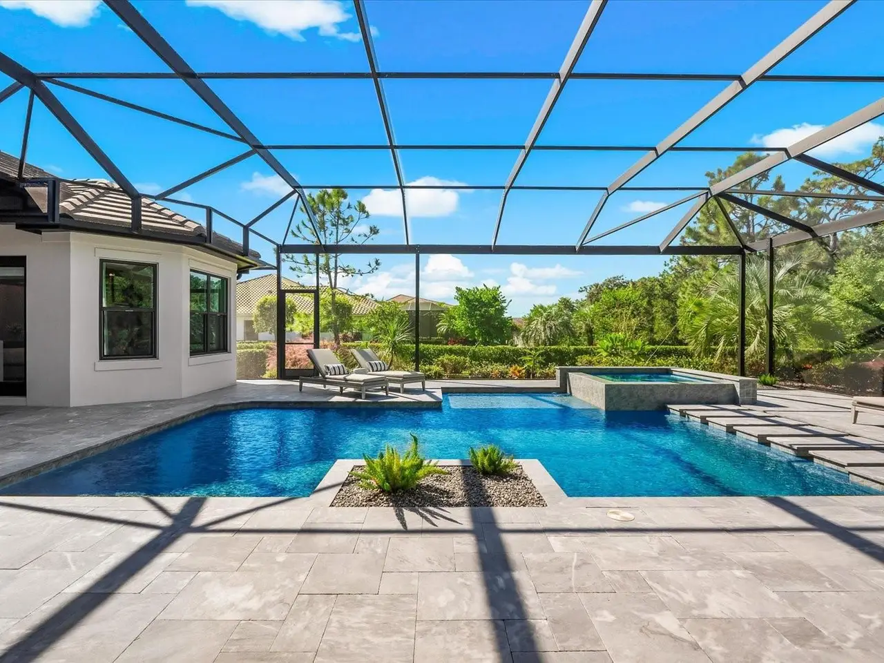 A Rare Opportunity in The Concession – Former Anchor Builders Model. Why wait to build when you can move right into this award-winning, professionally decorated and fully furnished former model home? Winner of the 2021 Parade of Homes for Best Overall Home and Certified Green Home, this Anchor Builders’ masterpiece blends the highest level of quality and timeless craftsmanship with modern luxury, all set on a private one-acre homesite in the prestigious Concession. From the moment you arrive, the grand driveway and stone-columned entry create an unforgettable first impression. Step inside to soaring ceilings, walls of impact glass, oak floors, and architectural details that showcase the extraordinary level of finish. At the heart of the home, an open great room with a dramatic stone fireplace flows seamlessly into the chef’s kitchen equipped with Sub-Zero, Wolf, and Cove appliances, quartz counters, a large center island, raised panel custom cabinetry, and butler’s pantry. Every detail is designed for entertaining and effortless living. Relax in the primary suite, a spa-like retreat featuring a stand-alone tub, oversized shower, dual vanities with custom cabinetry, two walk-in closets with built-ins, and serene pool views. Three additional en-suite bedrooms each offer their own private sanctuary, complete with designer bathrooms and walk-in closets with custom shelving. Work from home in the office/den, complete with custom built-in shelves and a desk, offering both functionality and elegance. A versatile bonus room serves as a favorite gathering spot, with corner sliding doors that open to the outdoor lanai, perfect for entertainment, media, or play. But the true showstopper is outside. The expansive lanai is a resort all its own, complete with outdoor kitchen, fire pit, cypress wood ceilings, custom cypress cabinetry, leathered marble pavers, saltwater pool with sun shelf, and spa. Imagine evenings by the fire, weekend gatherings around the grill, and quiet mornings overlooking your private, wooded view. Smart home technology, energy-efficient insulation, custom window treatments, plantation shutters, and even a climate-controlled interior storage room ensure this residence is as functional as it is beautiful. Exquisite and meticulously maintained, this home enjoys an ideal location within The Concession, a gated community known for its privacy, serene natural beauty, and spacious estate homesites. Meticulously maintained and elegantly furnished, this is more than a home, it’s a statement of style, comfort, and luxury. Few properties offer this level of design, privacy, and lifestyle. Opportunities of this caliber within The Concession are exceedingly rare; experience a residence that truly stands apart.
