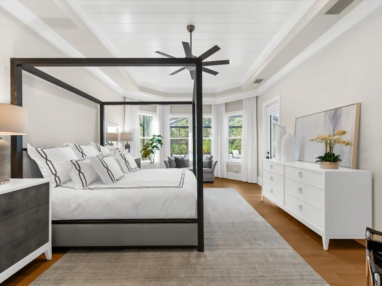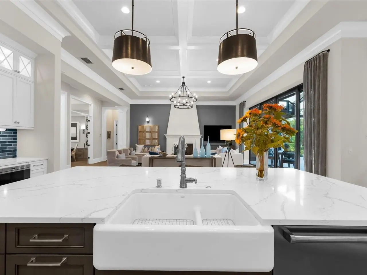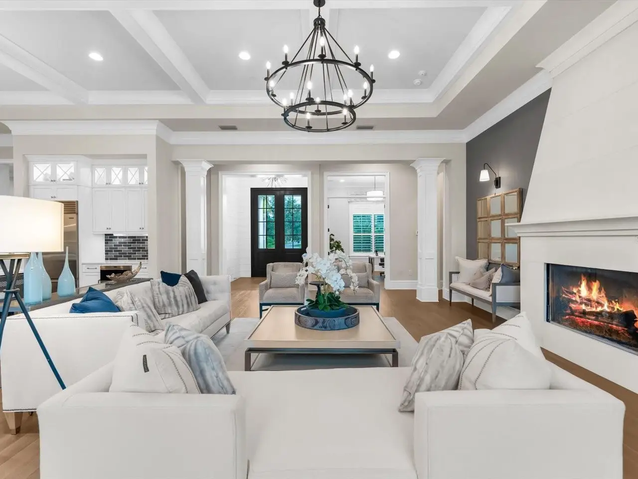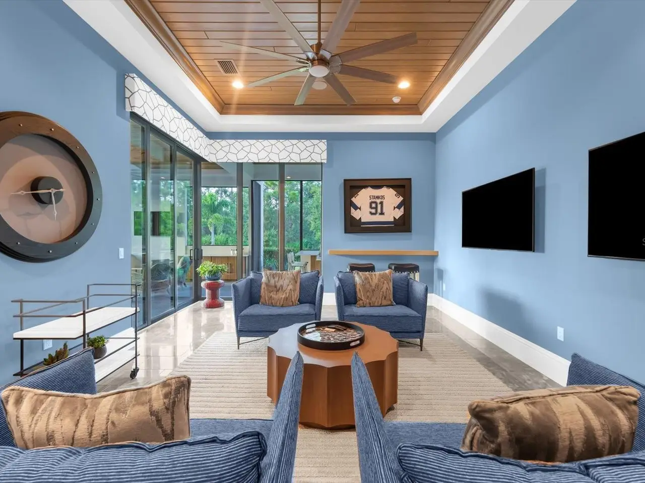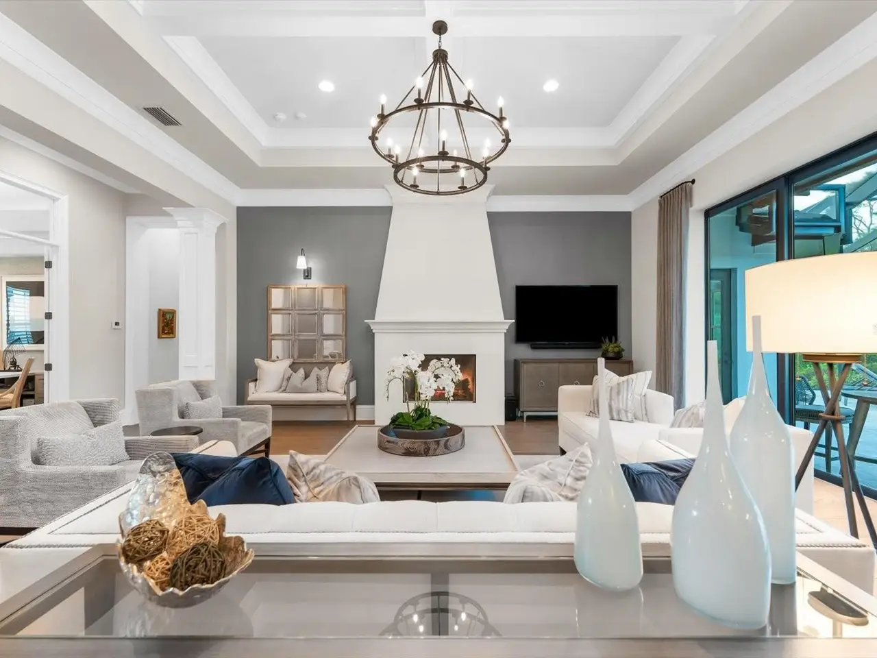 A Rare Opportunity in The Concession – Former Anchor Builders Model. Why wait to build when you can move right into this award-winning, professionally decorated and fully furnished former model home? Winner of the 2021 Parade of Homes for Best Overall Home and Certified Green Home, this Anchor Builders’ masterpiece blends the highest level of quality and timeless craftsmanship with modern luxury, all set on a private one-acre homesite in the prestigious Concession. From the moment you arrive, the grand driveway and stone-columned entry create an unforgettable first impression. Step inside to soaring ceilings, walls of impact glass, oak floors, and architectural details that showcase the extraordinary level of finish. At the heart of the home, an open great room with a dramatic stone fireplace flows seamlessly into the chef’s kitchen equipped with Sub-Zero, Wolf, and Cove appliances, quartz counters, a large center island, raised panel custom cabinetry, and butler’s pantry. Every detail is designed for entertaining and effortless living. Relax in the primary suite, a spa-like retreat featuring a stand-alone tub, oversized shower, dual vanities with custom cabinetry, two walk-in closets with built-ins, and serene pool views. Three additional en-suite bedrooms each offer their own private sanctuary, complete with designer bathrooms and walk-in closets with custom shelving. Work from home in the office/den, complete with custom built-in shelves and a desk, offering both functionality and elegance. A versatile bonus room serves as a favorite gathering spot, with corner sliding doors that open to the outdoor lanai, perfect for entertainment, media, or play. But the true showstopper is outside. The expansive lanai is a resort all its own, complete with outdoor kitchen, fire pit, cypress wood ceilings, custom cypress cabinetry, leathered marble pavers, saltwater pool with sun shelf, and spa. Imagine evenings by the fire, weekend gatherings around the grill, and quiet mornings overlooking your private, wooded view. Smart home technology, energy-efficient insulation, custom window treatments, plantation shutters, and even a climate-controlled interior storage room ensure this residence is as functional as it is beautiful. Exquisite and meticulously maintained, this home enjoys an ideal location within The Concession, a gated community known for its privacy, serene natural beauty, and spacious estate homesites. Meticulously maintained and elegantly furnished, this is more than a home, it’s a statement of style, comfort, and luxury. Few properties offer this level of design, privacy, and lifestyle. Opportunities of this caliber within The Concession are exceedingly rare; experience a residence that truly stands apart.