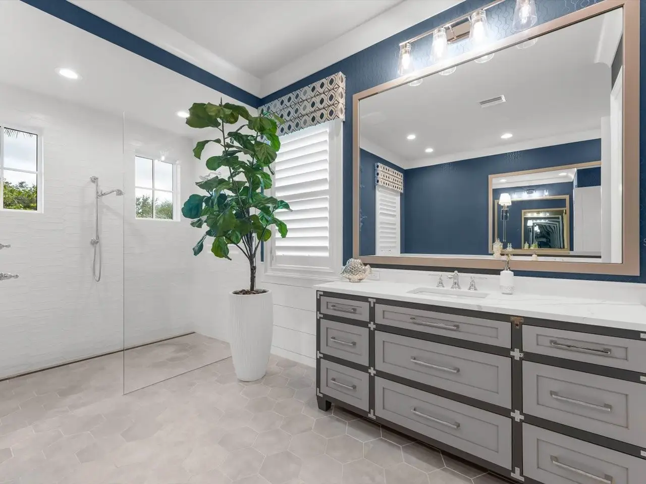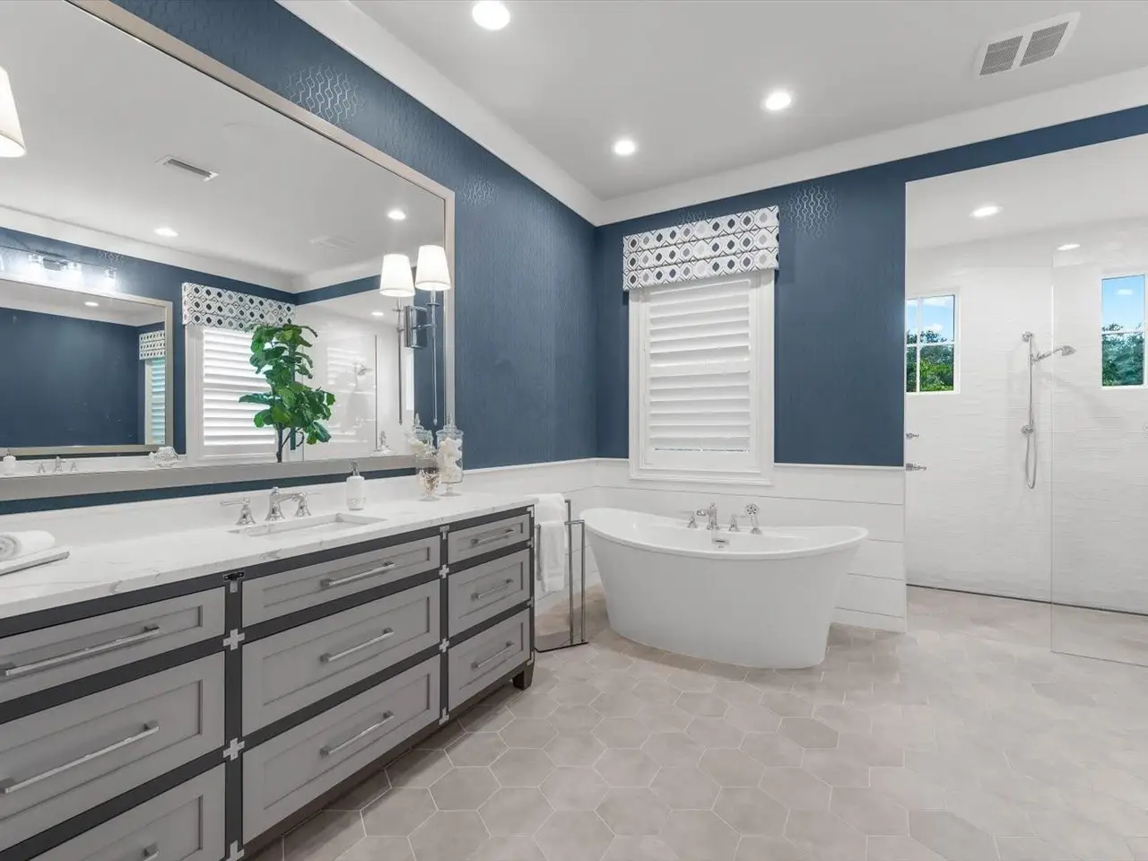 Spa-like primary suite with stand-alone tub
