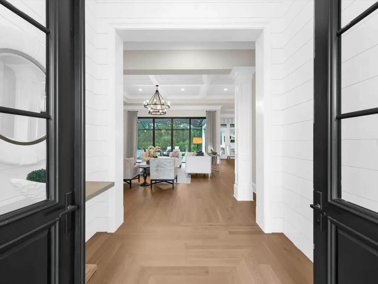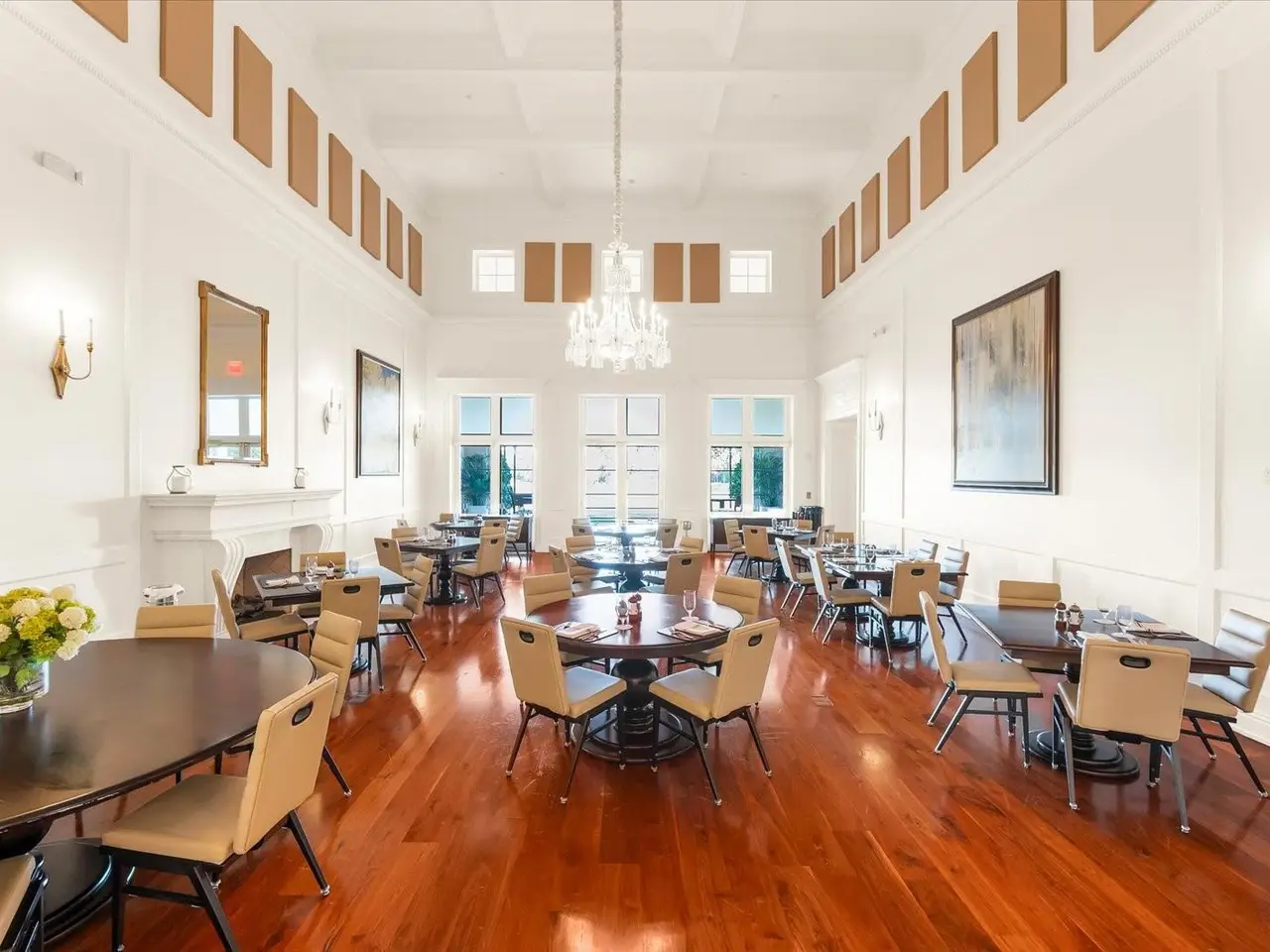 Soaring ceilings with oak floors