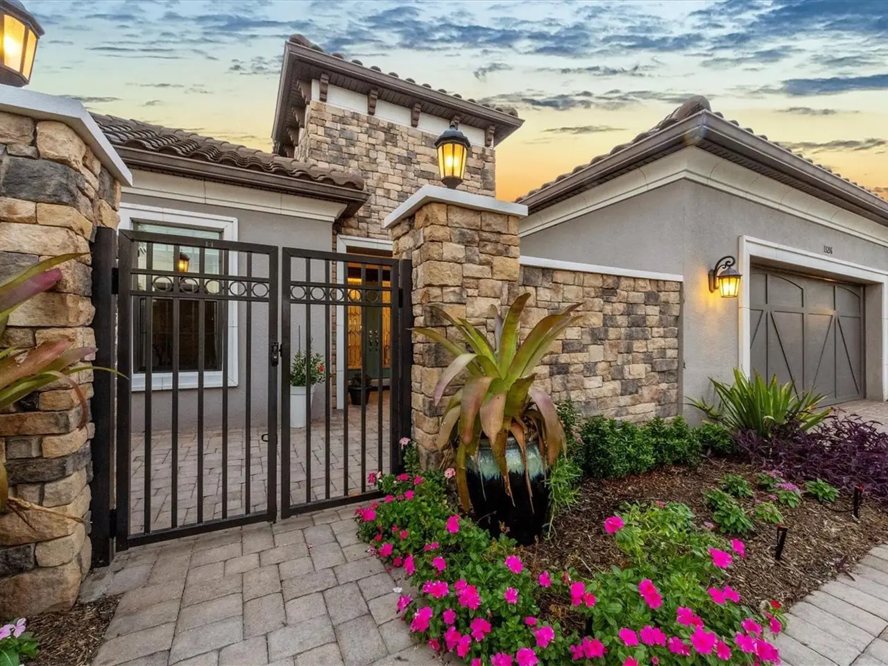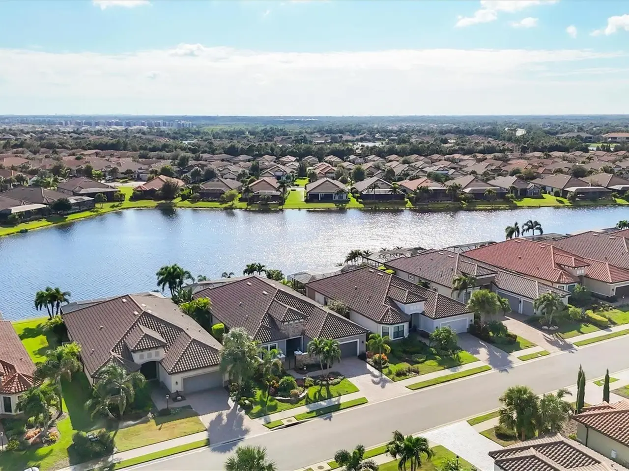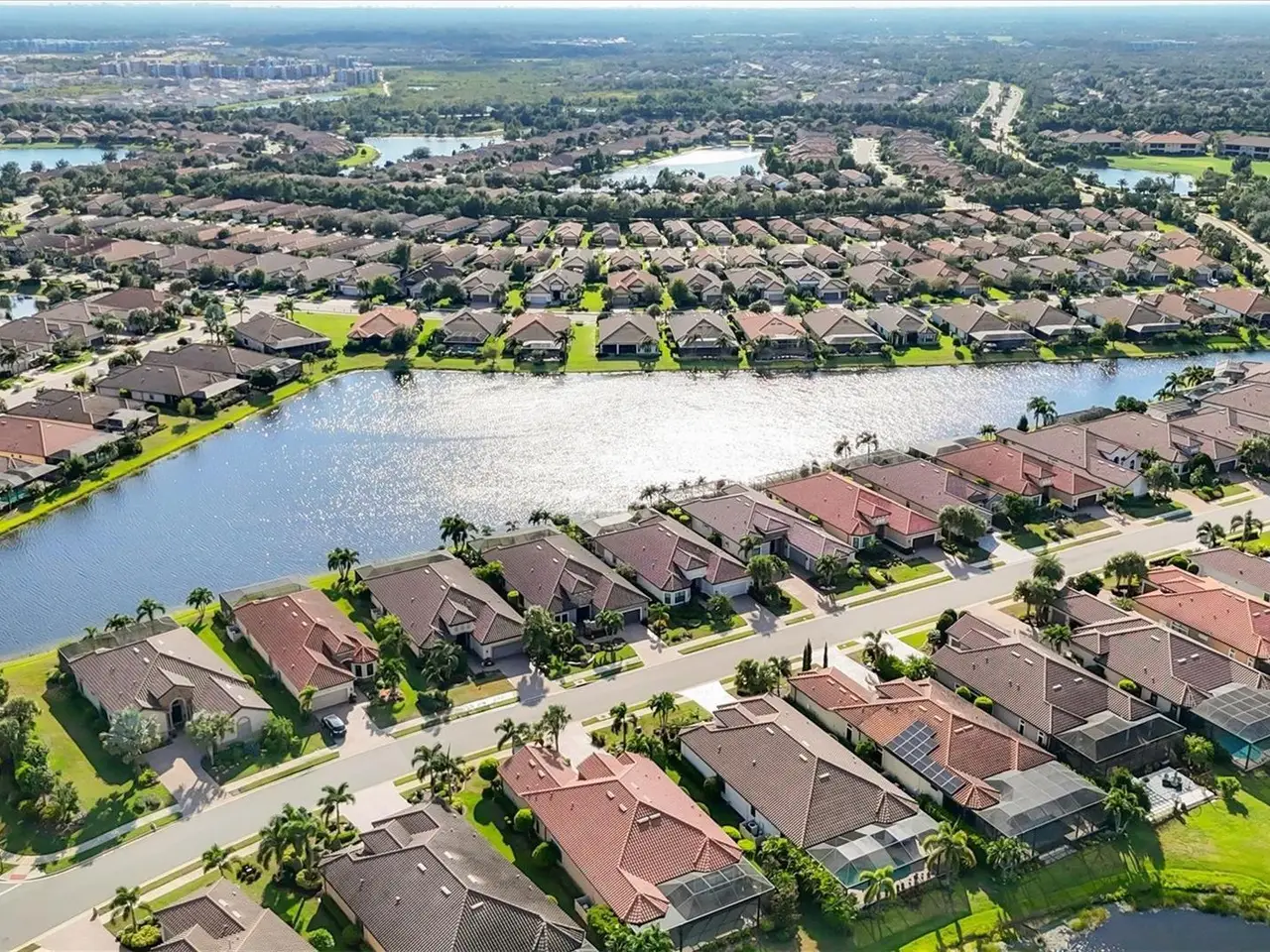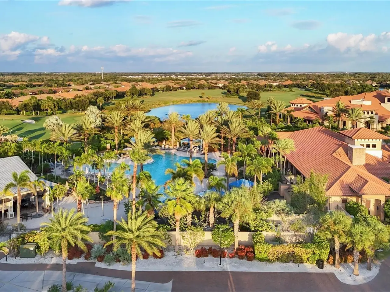 Embrace the ultimate resort-style living in this stunning water view home, featuring the coveted Pallazio VII floor plan with an added nook. This residence boasts an expansive outdoor living space with a gas fireplace, perfect for both relaxation and entertainment, enhanced by Elevation C with a 4 ft garage extension. With a FULL GOLF MEMBERSHIP included, you can enjoy the best of golf and leisure right at your doorstep! As you enter through the charming, gated courtyard and double doors, you will be welcomed by impressive columns and soaring ceilings that set the tone for elegance. The open-concept great room, adorned with crown molding and bathed in natural light from disappearing pocket sliding doors, seamlessly connects to the lanai with breathtaking southwest facing views of the pool and outdoor oasis. The upgraded gourmet kitchen is a chefs dream, featuring stainless-steel appliances including Quartz Cambria countertops, a 36-inch natural gas cooktop, and a built-in oven. The oversized island, highlighted by stylish pendant lighting, offers ample storage and is perfect for entertaining or family meals. Enjoy morning coffee in the extended breakfast area, with sliding glass pocket doors that open to the lanai. Retreat to the grand primary bedroom, a private sanctuary complete with a spacious en-suite bathroom featuring dual sinks, a frameless glass shower, and a large walk-in closet. Two guest bedrooms provide comfort and privacy, one with an en-suite bathroom and the other with convenient access to a separate bath. The generously sized study/den, accessible through elegant 8 ft. French double doors, offers versatility for work or can easily be transformed into a fourth bedroom. Step outside to the extended screened lanai, where the expansive paver deck and endless water views invite you to soak up Florida’s sunshine. With a wealth of community amenities, including an 18-hole championship golf course, tennis and pickleball courts, two resort-style pools, and a full-service spa, you will never run out of things to do. Enjoy fine dining at the Barrel House Bistro, or casual meals at the Bahama Bar, along with an active social calendar filled with events. Located in award-winning Lakewood Ranch, you are just moments away from shopping, dining, local farmers? markets, scenic trails, and beautiful beaches. Don't miss your chance to own this meticulously designed home in one of Florida's premier communities, schedule your showing today and step into your dream lifestyle! GREAT ROOM AND PRIMARY BEDROOM LIGHT FIXTURES DO NOT CONVEY.