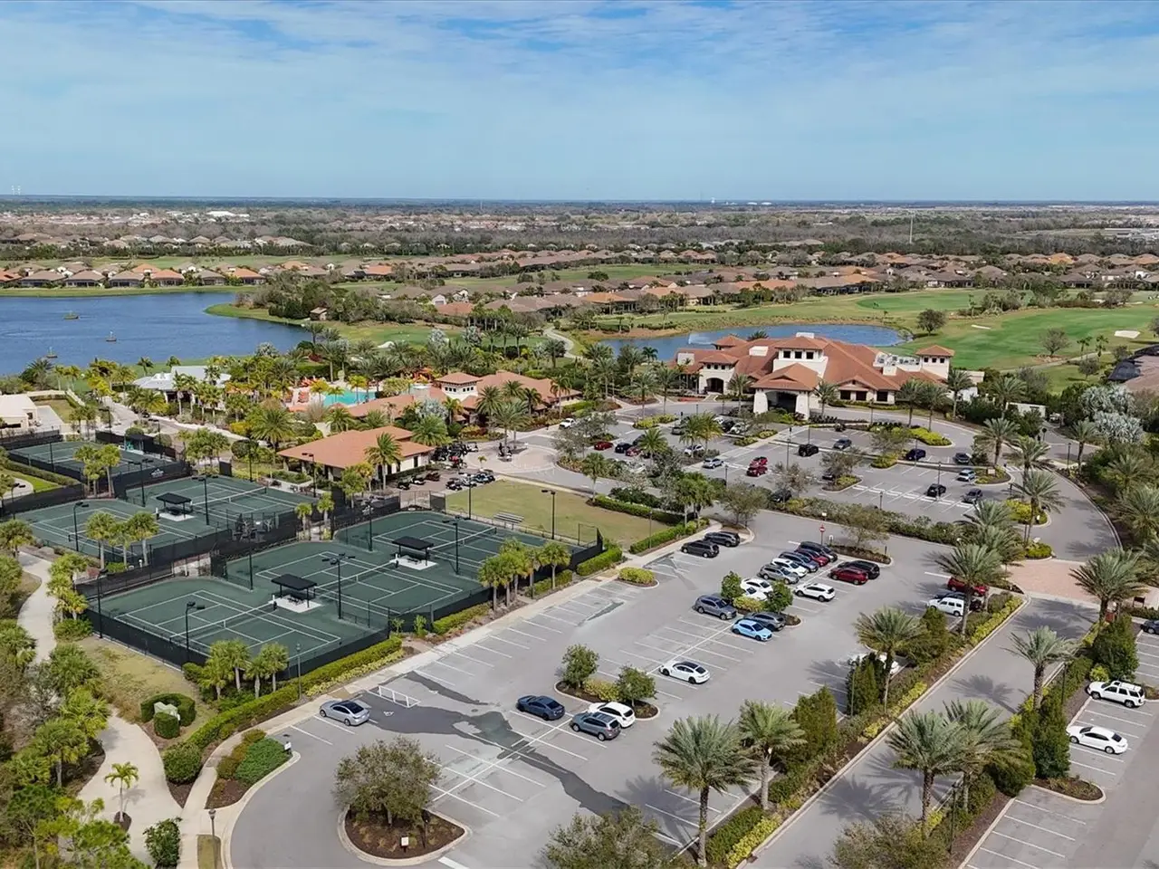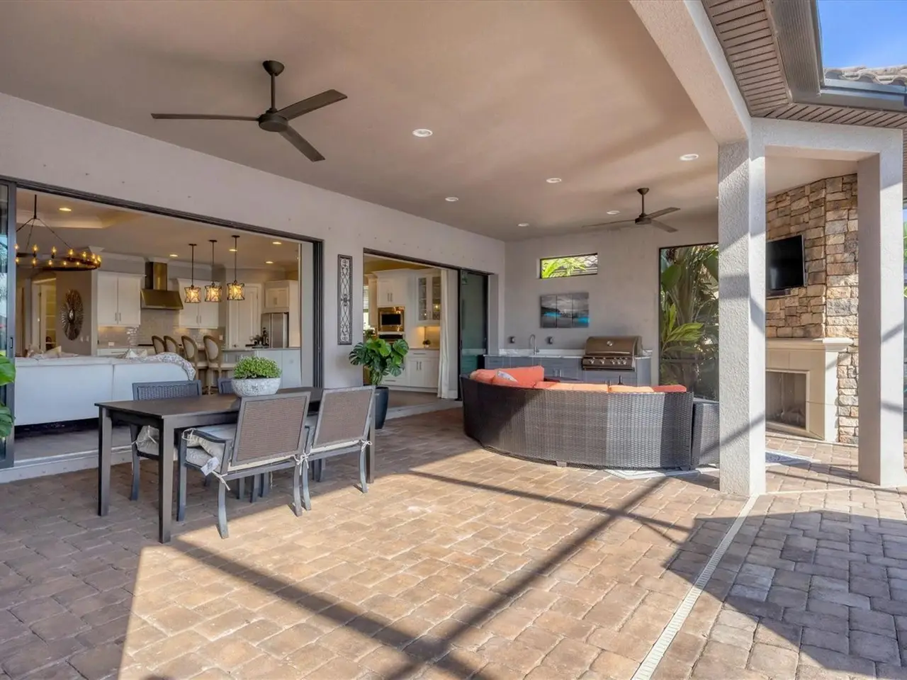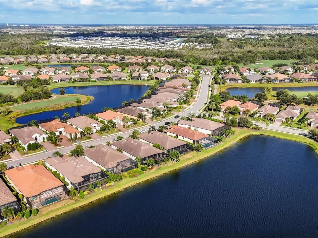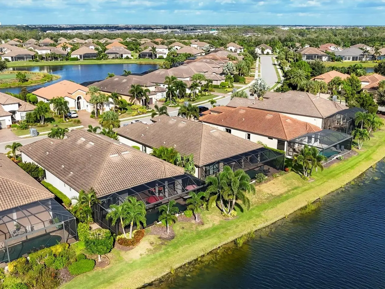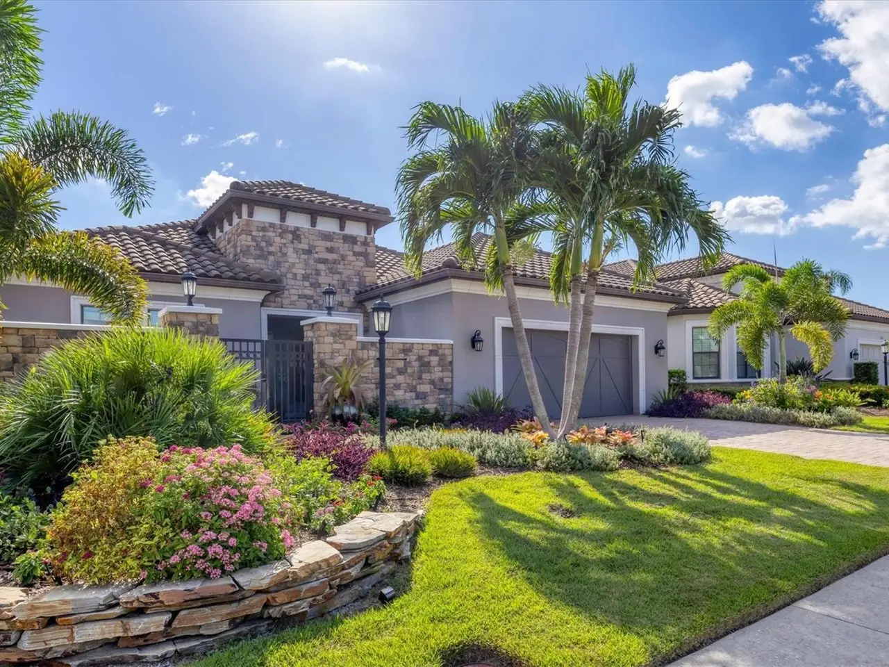 Embrace the ultimate resort-style living in this stunning water view home, featuring the coveted Pallazio VII floor plan with an added nook. This residence boasts an expansive outdoor living space with a gas fireplace, perfect for both relaxation and entertainment, enhanced by Elevation C with a 4 ft garage extension. With a FULL GOLF MEMBERSHIP included, you can enjoy the best of golf and leisure right at your doorstep! As you enter through the charming, gated courtyard and double doors, you will be welcomed by impressive columns and soaring ceilings that set the tone for elegance. The open-concept great room, adorned with crown molding and bathed in natural light from disappearing pocket sliding doors, seamlessly connects to the lanai with breathtaking southwest facing views of the pool and outdoor oasis. The upgraded gourmet kitchen is a chefs dream, featuring stainless-steel appliances including Quartz Cambria countertops, a 36-inch natural gas cooktop, and a built-in oven. The oversized island, highlighted by stylish pendant lighting, offers ample storage and is perfect for entertaining or family meals. Enjoy morning coffee in the extended breakfast area, with sliding glass pocket doors that open to the lanai. Retreat to the grand primary bedroom, a private sanctuary complete with a spacious en-suite bathroom featuring dual sinks, a frameless glass shower, and a large walk-in closet. Two guest bedrooms provide comfort and privacy, one with an en-suite bathroom and the other with convenient access to a separate bath. The generously sized study/den, accessible through elegant 8 ft. French double doors, offers versatility for work or can easily be transformed into a fourth bedroom. Step outside to the extended screened lanai, where the expansive paver deck and endless water views invite you to soak up Florida’s sunshine. With a wealth of community amenities, including an 18-hole championship golf course, tennis and pickleball courts, two resort-style pools, and a full-service spa, you will never run out of things to do. Enjoy fine dining at the Barrel House Bistro, or casual meals at the Bahama Bar, along with an active social calendar filled with events. Located in award-winning Lakewood Ranch, you are just moments away from shopping, dining, local farmers? markets, scenic trails, and beautiful beaches. Don't miss your chance to own this meticulously designed home in one of Florida's premier communities, schedule your showing today and step into your dream lifestyle! GREAT ROOM AND PRIMARY BEDROOM LIGHT FIXTURES DO NOT CONVEY.