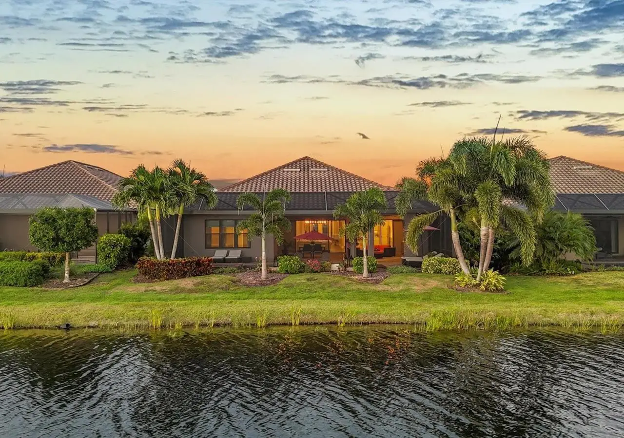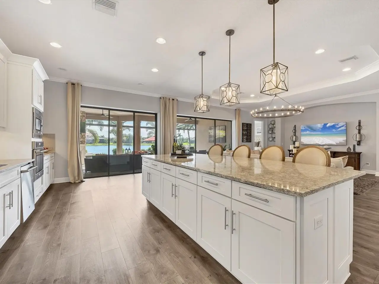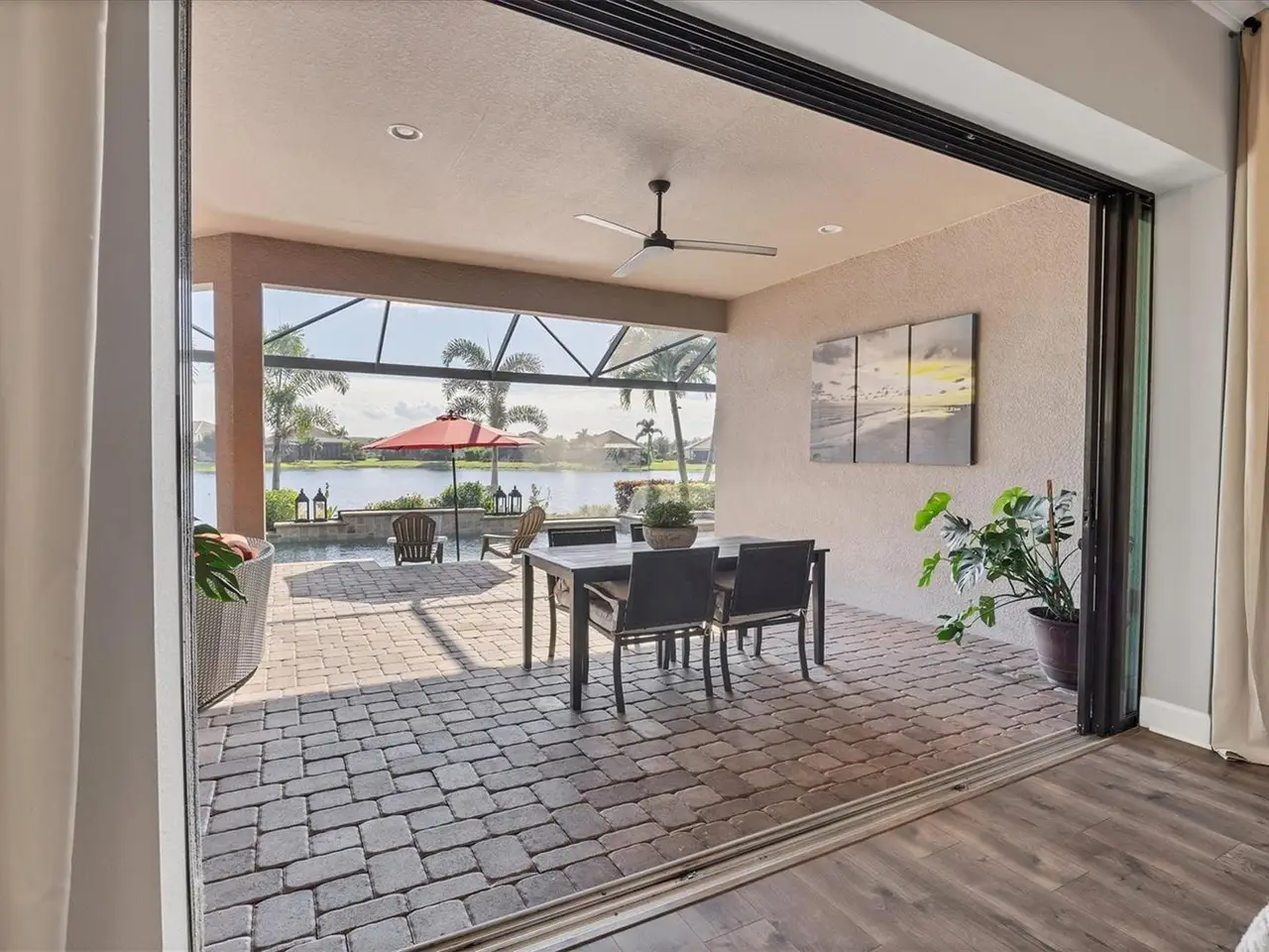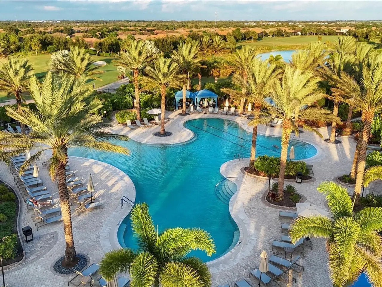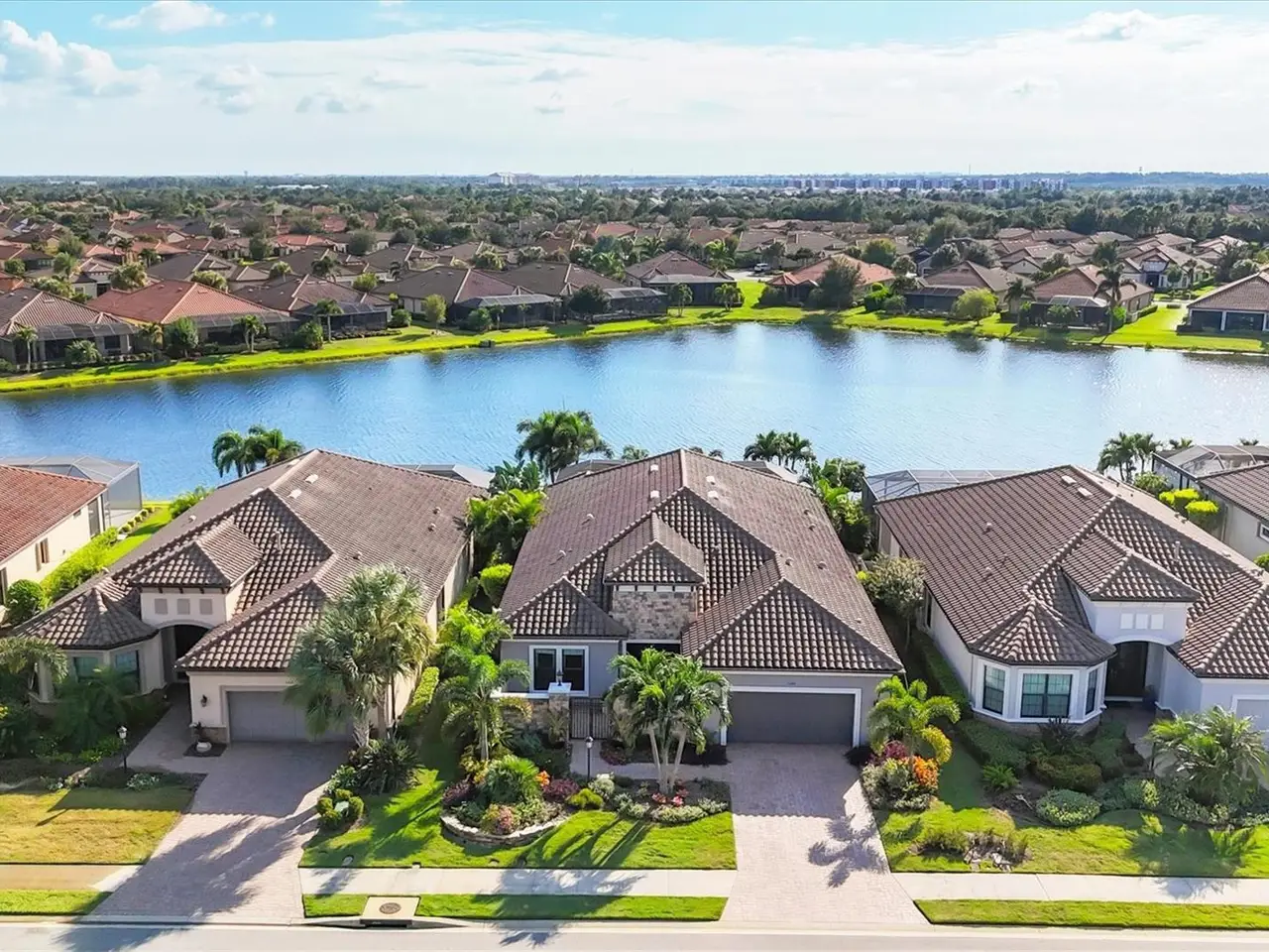 Embrace the ultimate resort-style living in this stunning water view home, featuring the coveted Pallazio VII floor plan with an added nook. This residence boasts an expansive outdoor living space with a gas fireplace, perfect for both relaxation and entertainment, enhanced by Elevation C with a 4 ft garage extension. With a FULL GOLF MEMBERSHIP included, you can enjoy the best of golf and leisure right at your doorstep! As you enter through the charming, gated courtyard and double doors, you will be welcomed by impressive columns and soaring ceilings that set the tone for elegance. The open-concept great room, adorned with crown molding and bathed in natural light from disappearing pocket sliding doors, seamlessly connects to the lanai with breathtaking southwest facing views of the pool and outdoor oasis. The upgraded gourmet kitchen is a chefs dream, featuring stainless-steel appliances including Quartz Cambria countertops, a 36-inch natural gas cooktop, and a built-in oven. The oversized island, highlighted by stylish pendant lighting, offers ample storage and is perfect for entertaining or family meals. Enjoy morning coffee in the extended breakfast area, with sliding glass pocket doors that open to the lanai. Retreat to the grand primary bedroom, a private sanctuary complete with a spacious en-suite bathroom featuring dual sinks, a frameless glass shower, and a large walk-in closet. Two guest bedrooms provide comfort and privacy, one with an en-suite bathroom and the other with convenient access to a separate bath. The generously sized study/den, accessible through elegant 8 ft. French double doors, offers versatility for work or can easily be transformed into a fourth bedroom. Step outside to the extended screened lanai, where the expansive paver deck and endless water views invite you to soak up Florida’s sunshine. With a wealth of community amenities, including an 18-hole championship golf course, tennis and pickleball courts, two resort-style pools, and a full-service spa, you will never run out of things to do. Enjoy fine dining at the Barrel House Bistro, or casual meals at the Bahama Bar, along with an active social calendar filled with events. Located in award-winning Lakewood Ranch, you are just moments away from shopping, dining, local farmers? markets, scenic trails, and beautiful beaches. Don't miss your chance to own this meticulously designed home in one of Florida's premier communities, schedule your showing today and step into your dream lifestyle! GREAT ROOM AND PRIMARY BEDROOM LIGHT FIXTURES DO NOT CONVEY.