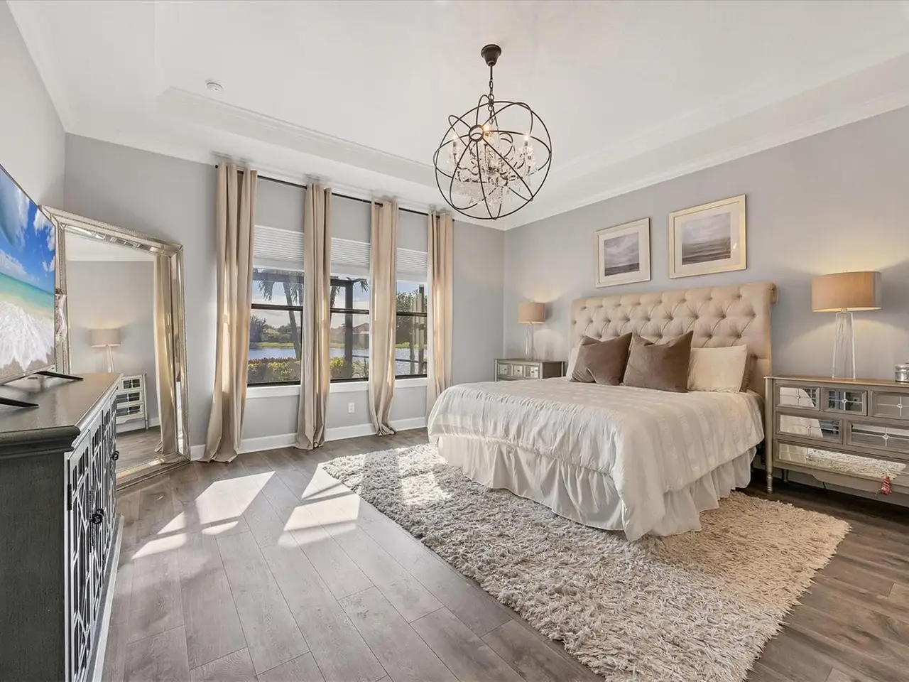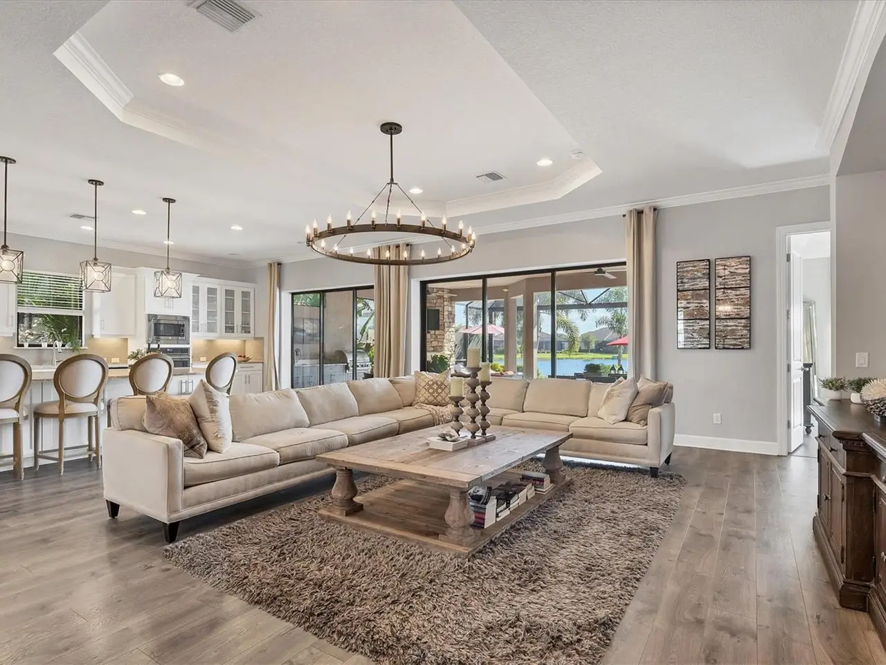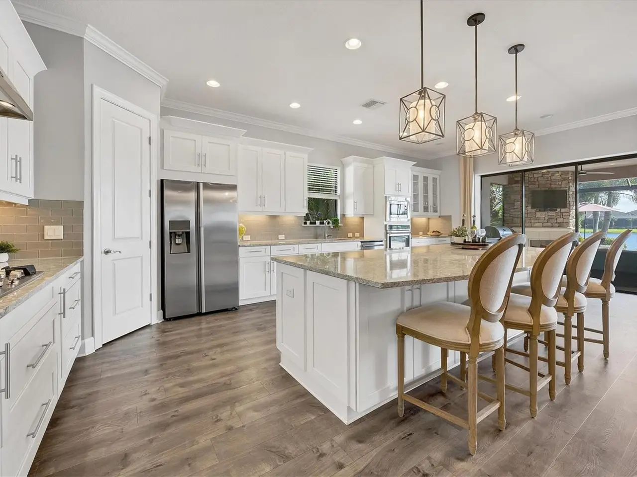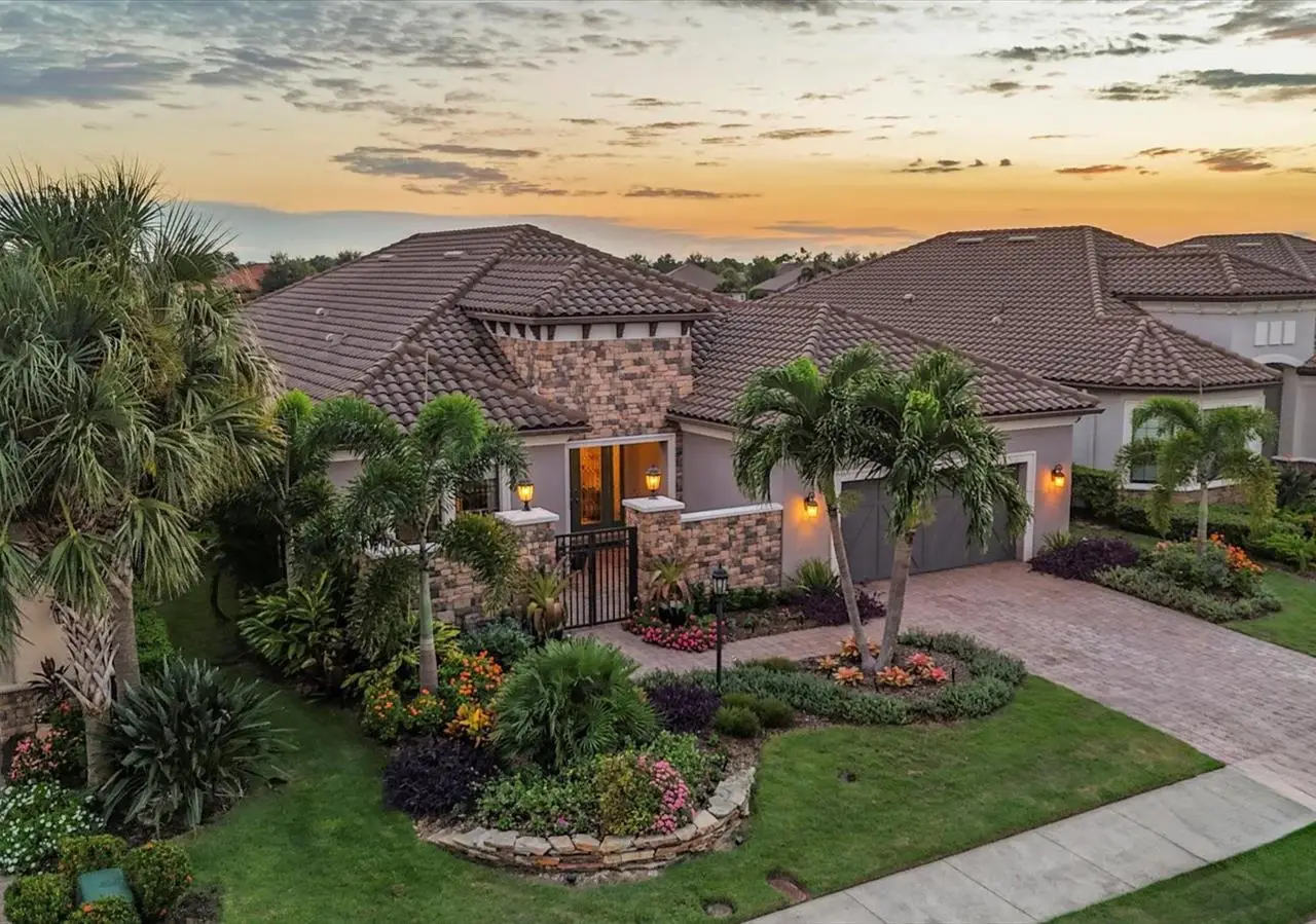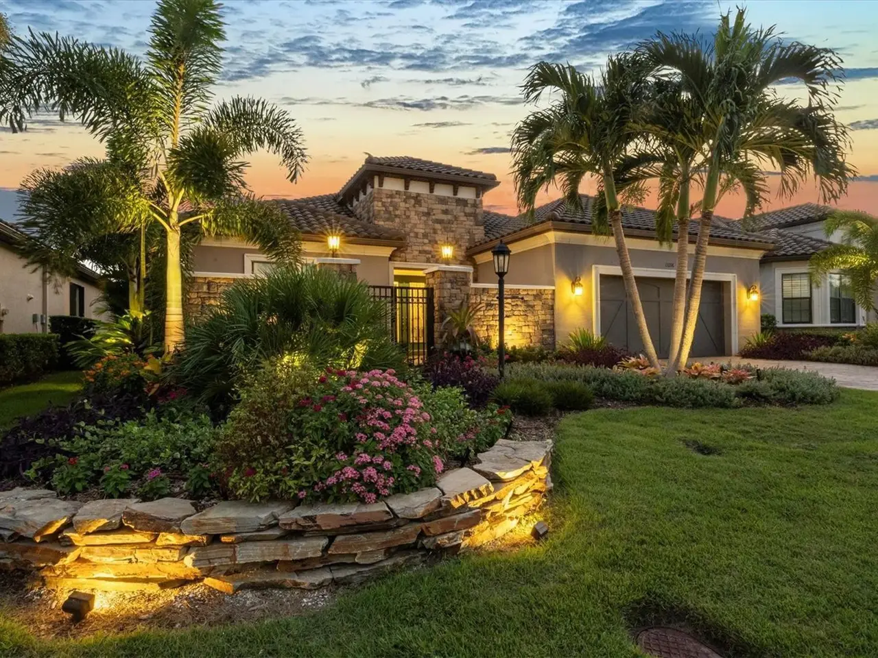 Embrace the ultimate resort-style living in this stunning water view home, featuring the coveted Pallazio VII floor plan with an added nook. This residence boasts an expansive outdoor living space with a gas fireplace, perfect for both relaxation and entertainment, enhanced by Elevation C with a 4 ft garage extension. With a FULL GOLF MEMBERSHIP included, you can enjoy the best of golf and leisure right at your doorstep! As you enter through the charming, gated courtyard and double doors, you will be welcomed by impressive columns and soaring ceilings that set the tone for elegance. The open-concept great room, adorned with crown molding and bathed in natural light from disappearing pocket sliding doors, seamlessly connects to the lanai with breathtaking southwest facing views of the pool and outdoor oasis. The upgraded gourmet kitchen is a chefs dream, featuring stainless-steel appliances including Quartz Cambria countertops, a 36-inch natural gas cooktop, and a built-in oven. The oversized island, highlighted by stylish pendant lighting, offers ample storage and is perfect for entertaining or family meals. Enjoy morning coffee in the extended breakfast area, with sliding glass pocket doors that open to the lanai. Retreat to the grand primary bedroom, a private sanctuary complete with a spacious en-suite bathroom featuring dual sinks, a frameless glass shower, and a large walk-in closet. Two guest bedrooms provide comfort and privacy, one with an en-suite bathroom and the other with convenient access to a separate bath. The generously sized study/den, accessible through elegant 8 ft. French double doors, offers versatility for work or can easily be transformed into a fourth bedroom. Step outside to the extended screened lanai, where the expansive paver deck and endless water views invite you to soak up Florida’s sunshine. With a wealth of community amenities, including an 18-hole championship golf course, tennis and pickleball courts, two resort-style pools, and a full-service spa, you will never run out of things to do. Enjoy fine dining at the Barrel House Bistro, or casual meals at the Bahama Bar, along with an active social calendar filled with events. Located in award-winning Lakewood Ranch, you are just moments away from shopping, dining, local farmers? markets, scenic trails, and beautiful beaches. Don't miss your chance to own this meticulously designed home in one of Florida's premier communities, schedule your showing today and step into your dream lifestyle! GREAT ROOM AND PRIMARY BEDROOM LIGHT FIXTURES DO NOT CONVEY.