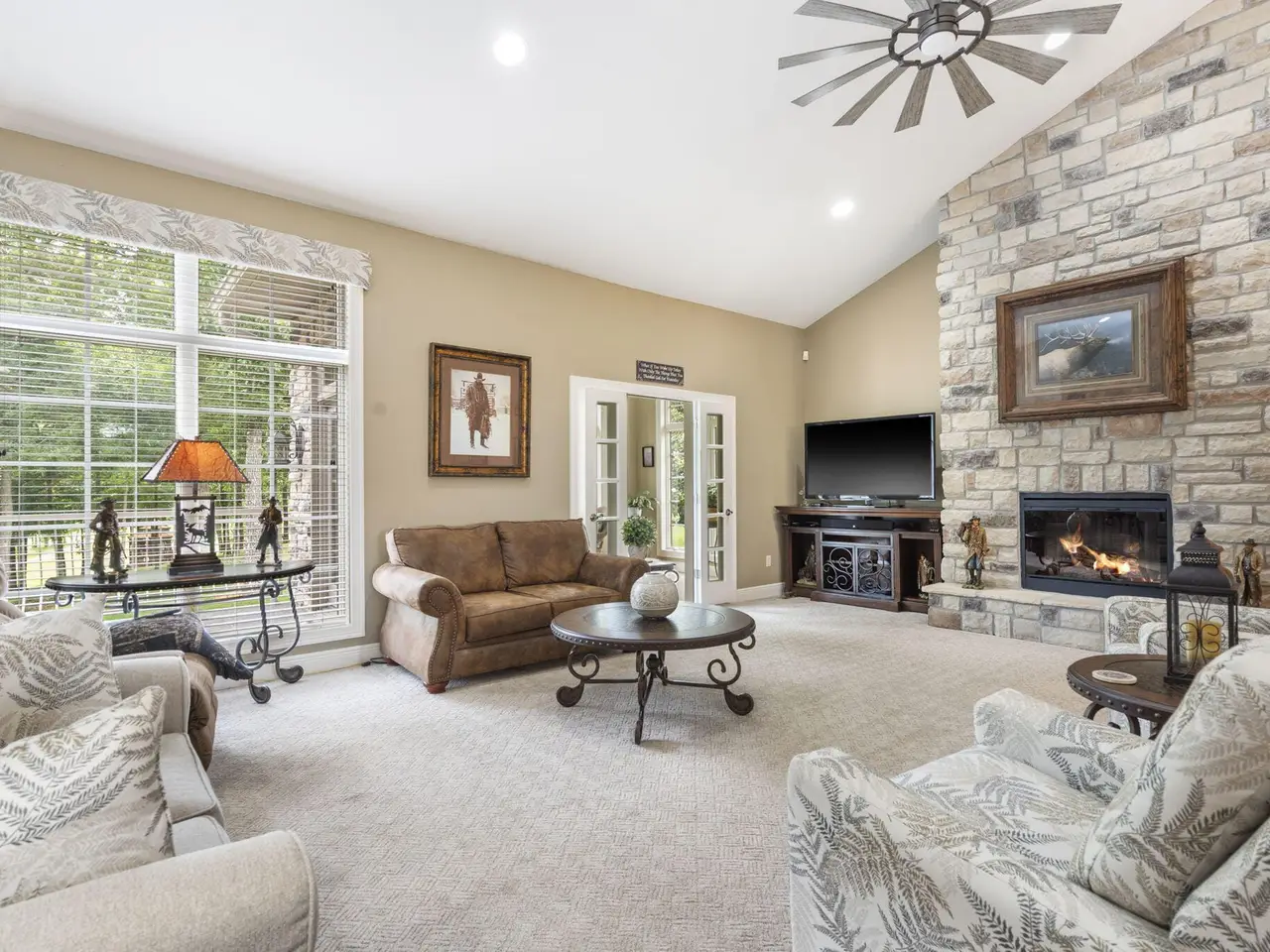 Reduced $276,400 under current appraisal for fast sale! Stunning Custom-Built Home! Golf-Front, Gated Community. Over 10,000 sq. ft. with 6 bedrooms, 7 bathrooms, 14 ft. ceilings, abundant windows to enhance the natural lighting and approx. 1 acre of pristine land. Custom cabinetry, granite countertops, an extra-large bar that opens to the hearth room and beautiful teak flooring. The bedrooms and closets are all generously sized. Lots of storage throughout. Extensive outdoor entertaining area with180 degree views of the golf course and covered patios. The lower level features an extra living area, bedrooms, bar, wine room and large shop room with 220v and 30-amp service. Oversized 4 car garage, immaculate landscaping and a 14 ft. tall Christmas tree closet. Located within 12 minutes of Table Rock Lake access and 10 minutes to the Branson Strip. The subdivision has a premier golf course, clubhouse with restaurant and bar, workout facilities, tennis courts, driving range, chipping and putting areas, pools, paved walking trails around Fox Lake with others throughout the subdivision. Reduced $275,000. for fast sale. Must See! Won't Last.