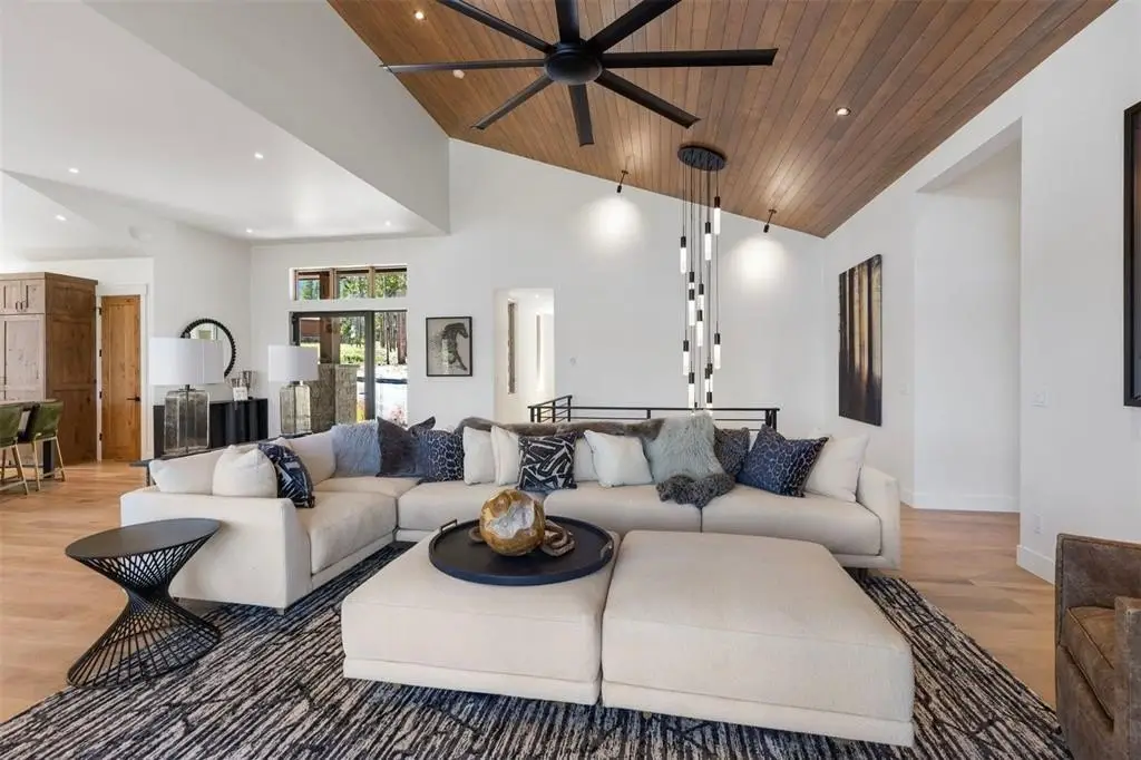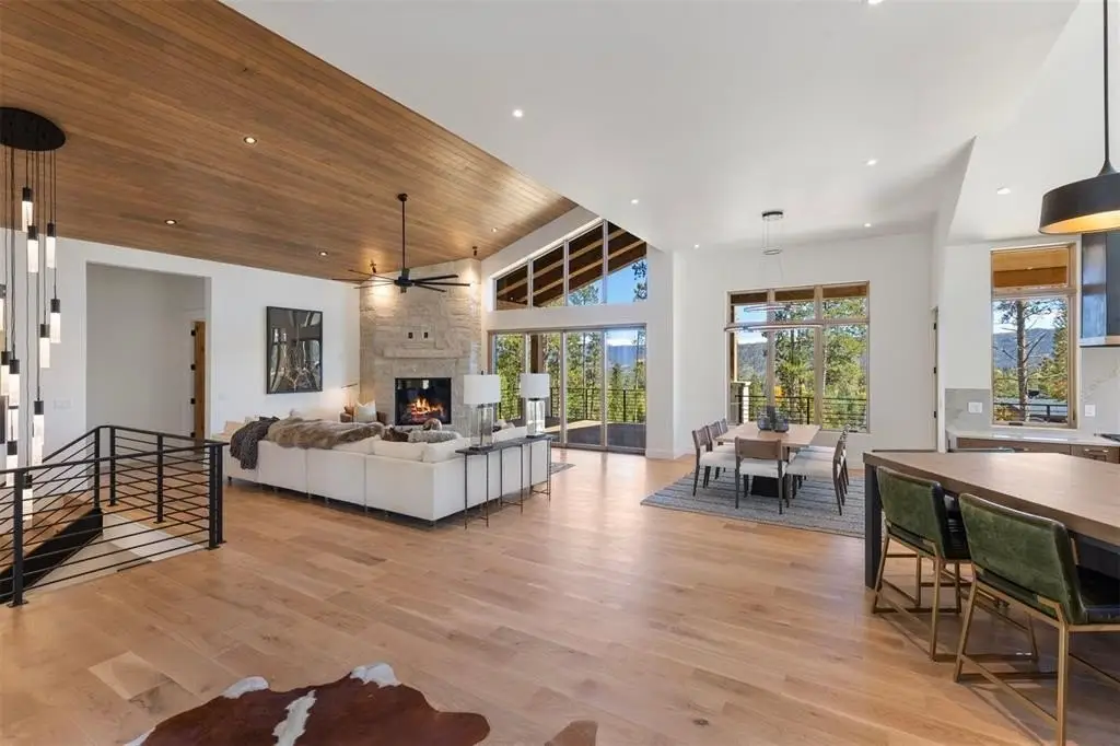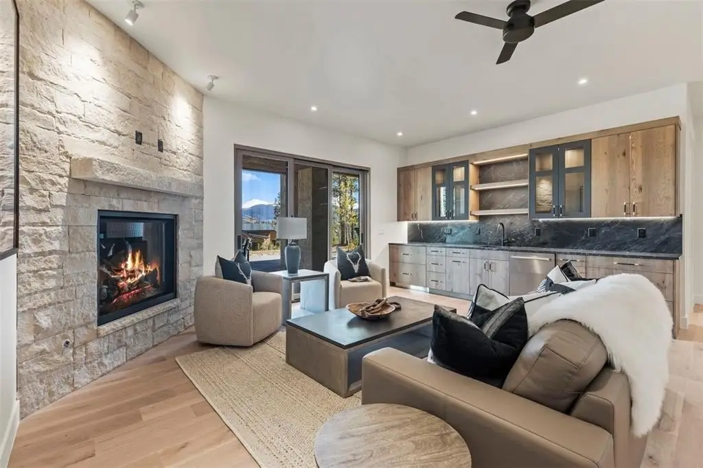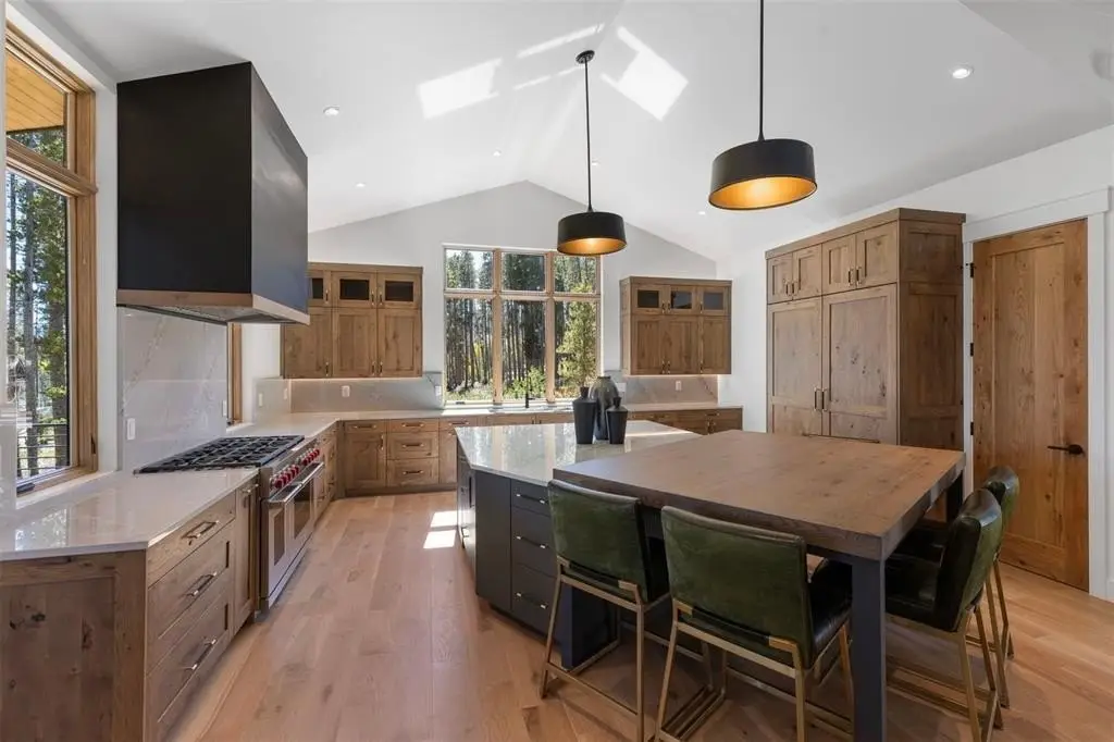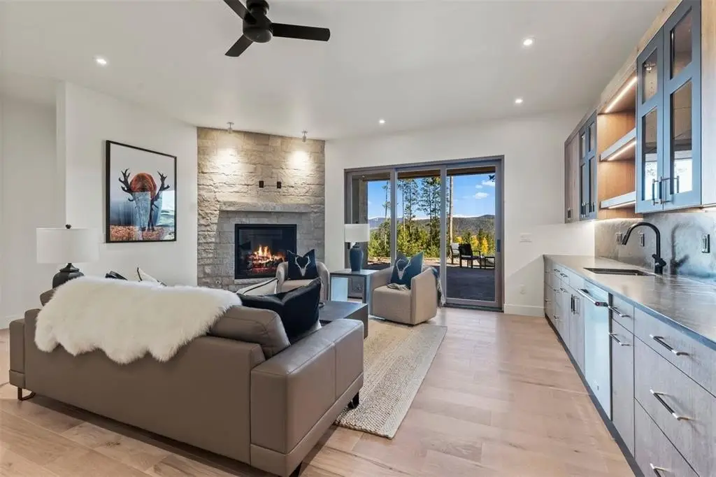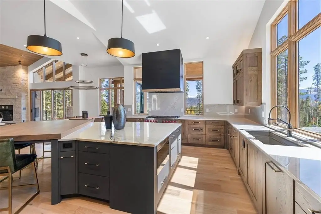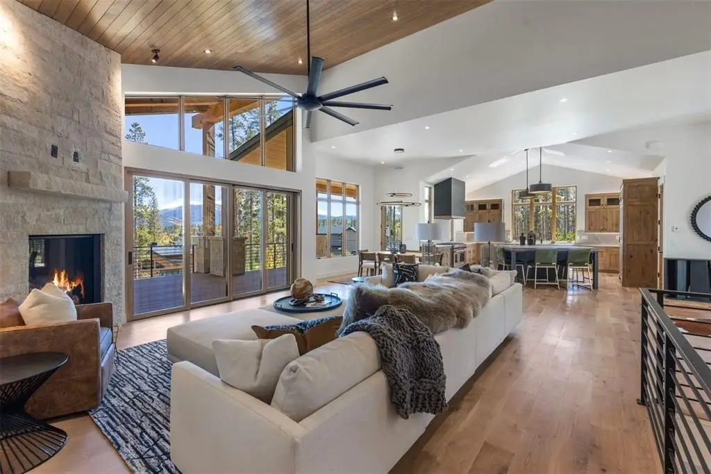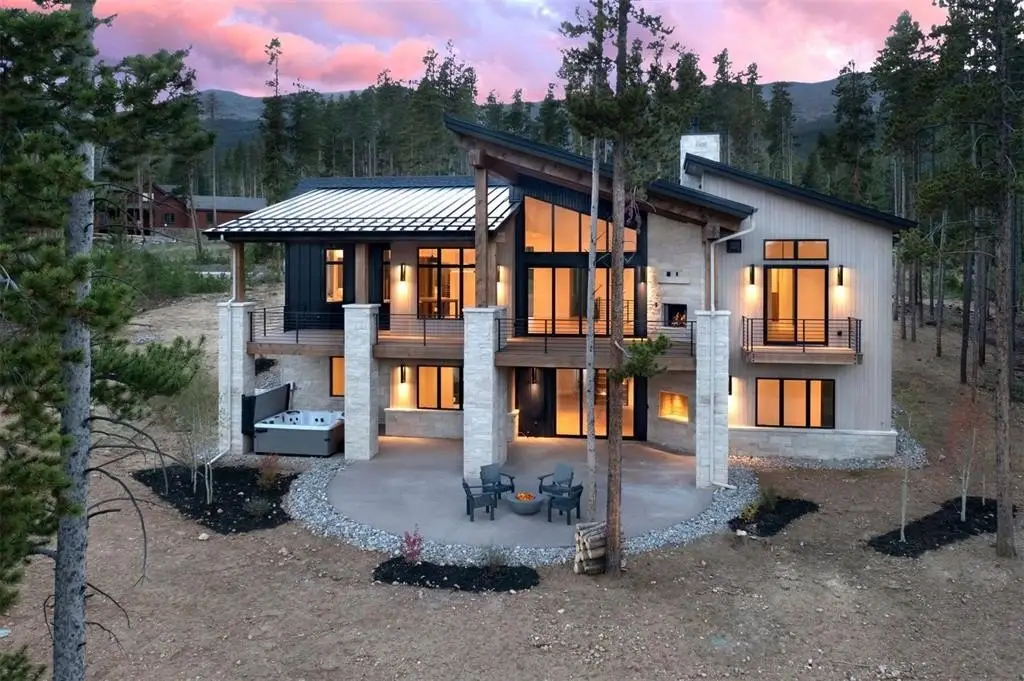 Introducing 226 Barton Way – a brand-new luxury mountain retreat nestled at the end of a private road in one of Breckenridge’s most exclusive settings. This stunning 5-bedroom, 7-bathroom estate spans 4,356 square feet, with an additional 840-square-foot 3-car garage and over 1,500 square feet of outdoor living spaces. Enjoy spectacular mountain views, privacy, and easy access to national forest trails and world-class skiing. Crafted with precision and designer finishes throughout, this home features vaulted ceilings, wide-plank white oak flooring, radiant heat, and custom cabinetry by Cutting Edge Woodworking. The gourmet kitchen is equipped with premium Sub-Zero, Wolf, and Cove appliances, quartzite countertops, and a large island with seating for 8. The main-level primary suite boasts a private deck, floor-to-ceiling limestone fireplace, and spa-inspired bathroom. The lower level includes four spacious en-suite bedrooms, a family room with fireplace and wet bar, and direct walk-out access to the patio with built-in gas fire pit and Bullfrog hot tub. Exterior highlights include cedar, standing seam metal, and stone siding, oversized decks, and a fully finished heated garage with smart access. This is refined mountain living—brand new, move-in ready, and unmatched in both design and location. This is staged furniture but negotiable to purchase.