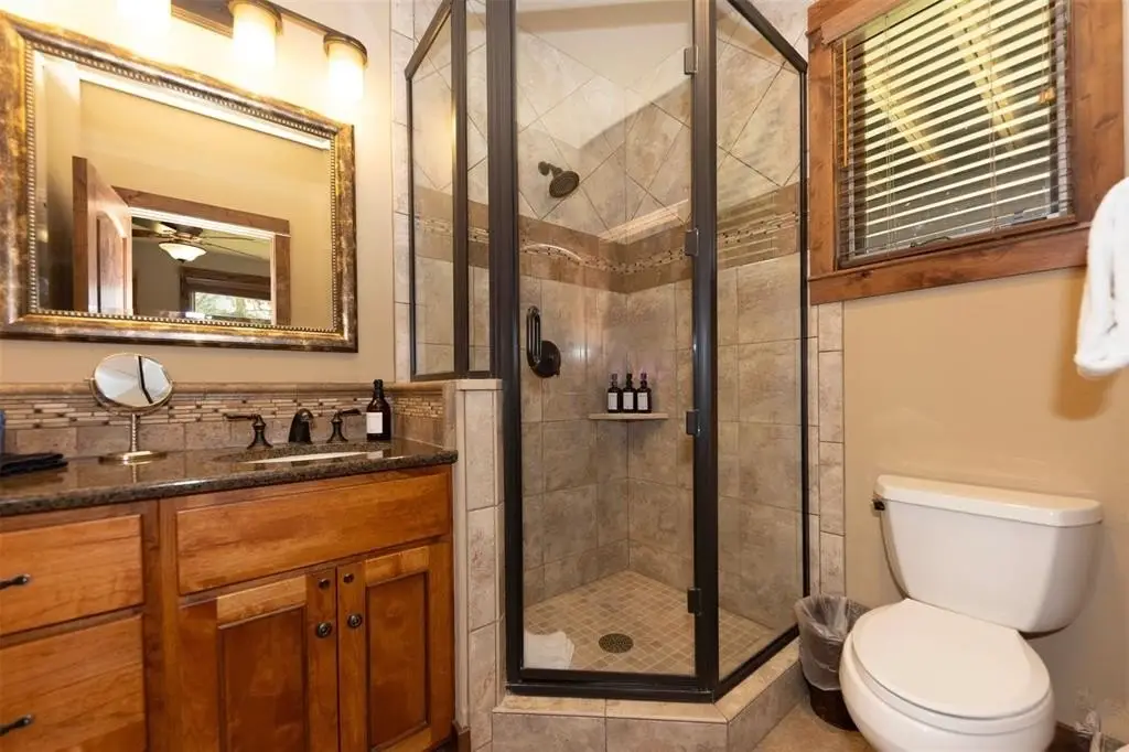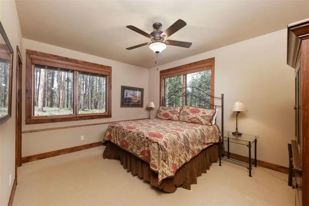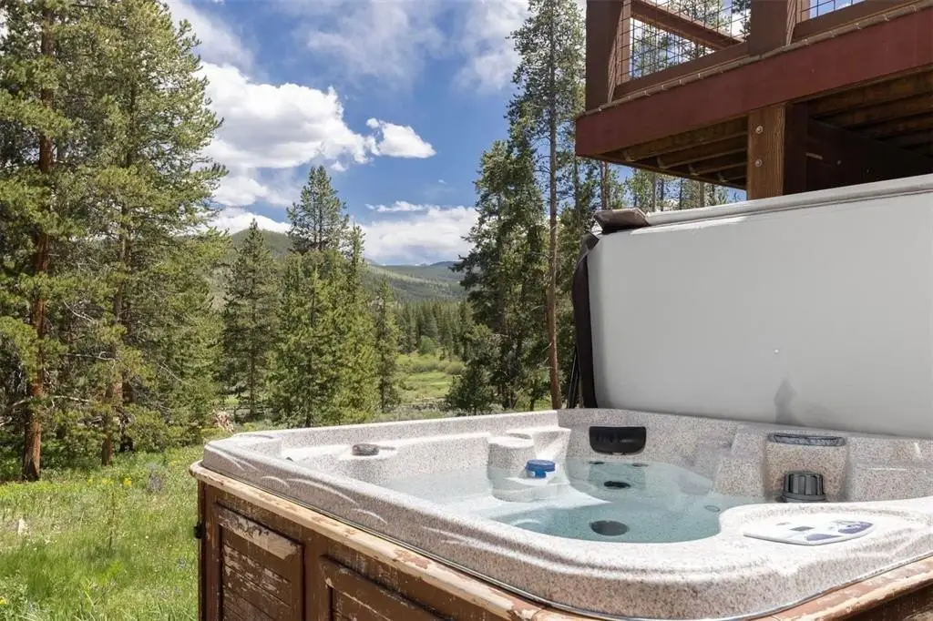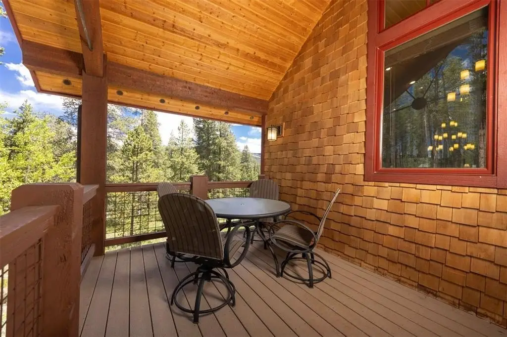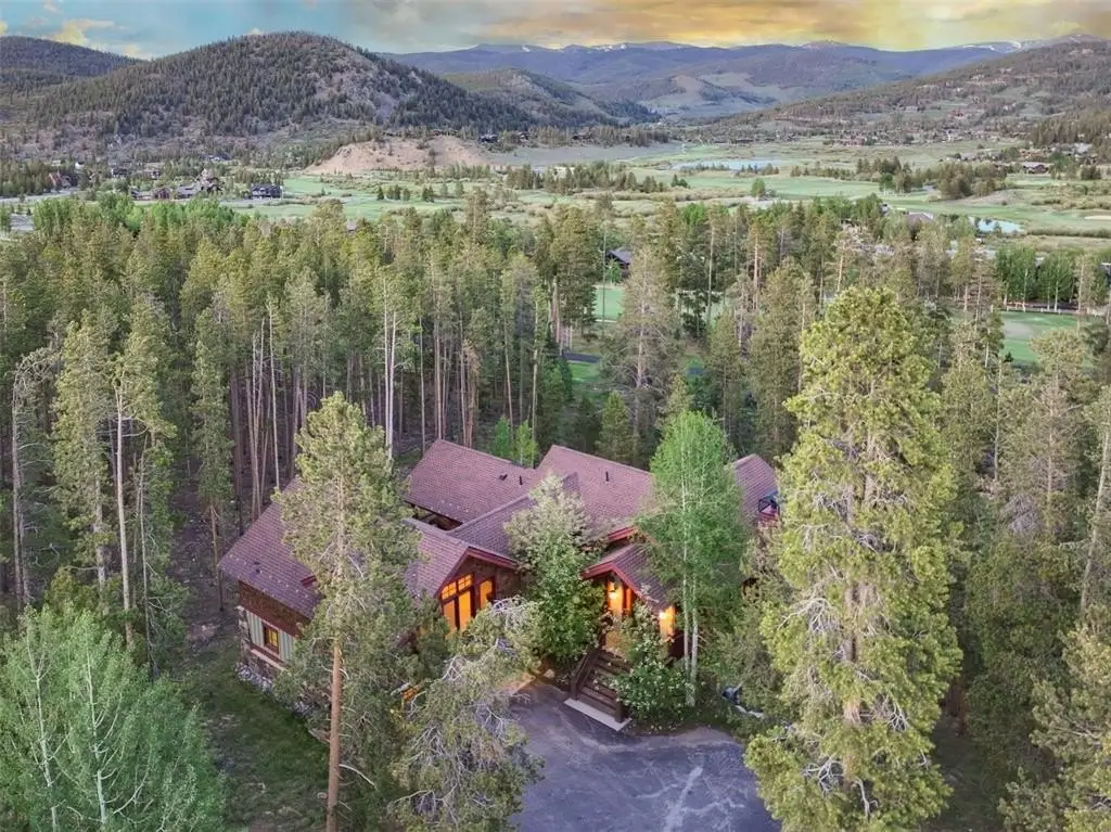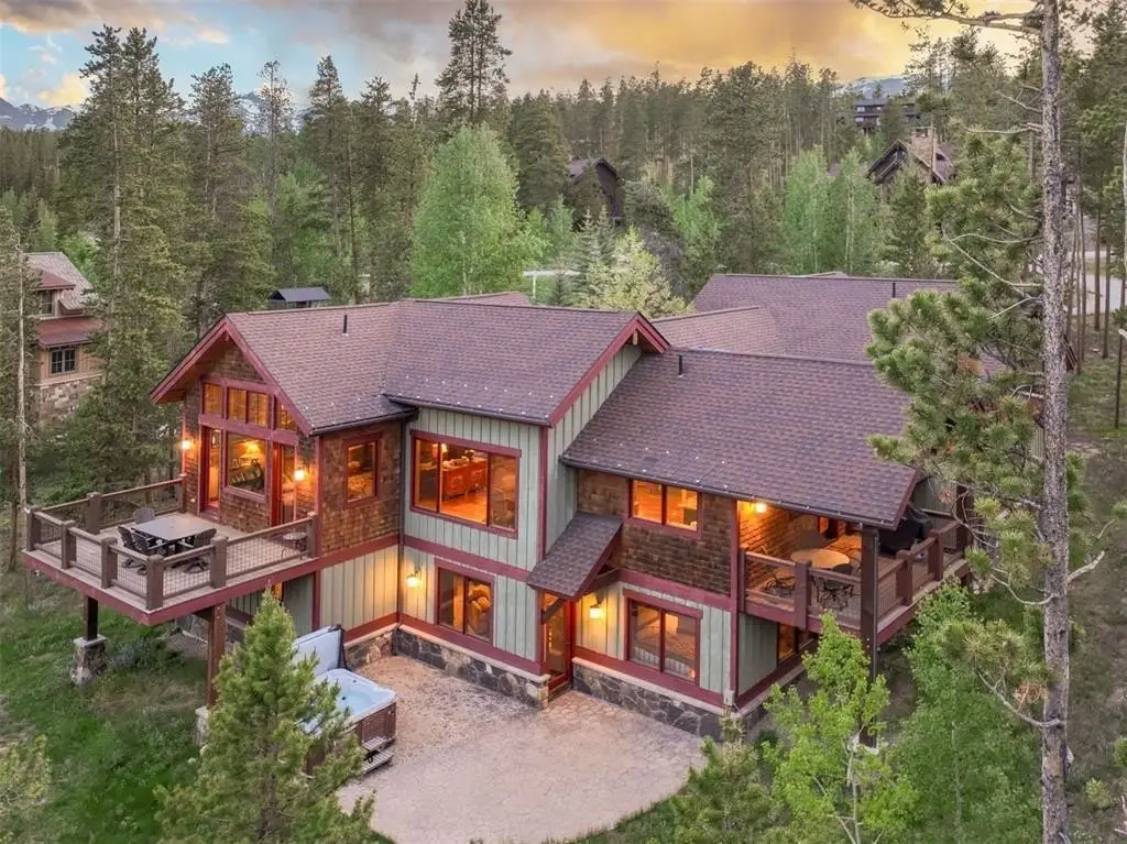 This classic mountain home is set low off Highlands Drive, nestled among protected trees and offering a rare combination of easterly mountain views and frontage along the iconic Jack Nicklaus–designed Breckenridge Golf Course. Overlooking holes 3 and 4 of the Beaver Course, the setting is private, picturesque, and serene. Inside, iron, stone, and wood elements create a bold first impression. Walnut floors span the main level, where a vaulted great room centers around a gas fireplace and expansive windows that bring the outdoors in. The layout flows easily into the dining area and well-equipped kitchen, featuring a gas range, custom hood, dishwasher, prep sink in the island, and a second sink by the window that perfectly frames the mountain scenery. Just off the kitchen, a covered deck is perfect for year-round use. The primary suite spans its own floor, complete with a private balcony, gas fireplace, office nook, walk-in closet, and a spacious bath with jetted tub, steam shower, and double vanity. The lower level is designed for comfort and entertaining, featuring a spacious family room where a wet bar with beverage fridge complements the cozy gathering space. Three additional bedrooms are located on this level—including two bedroom suites and a bunk room. Just outside, a private patio with a hot tub invites you to unwind and take in the peaceful alpine surroundings amidst the golf course.