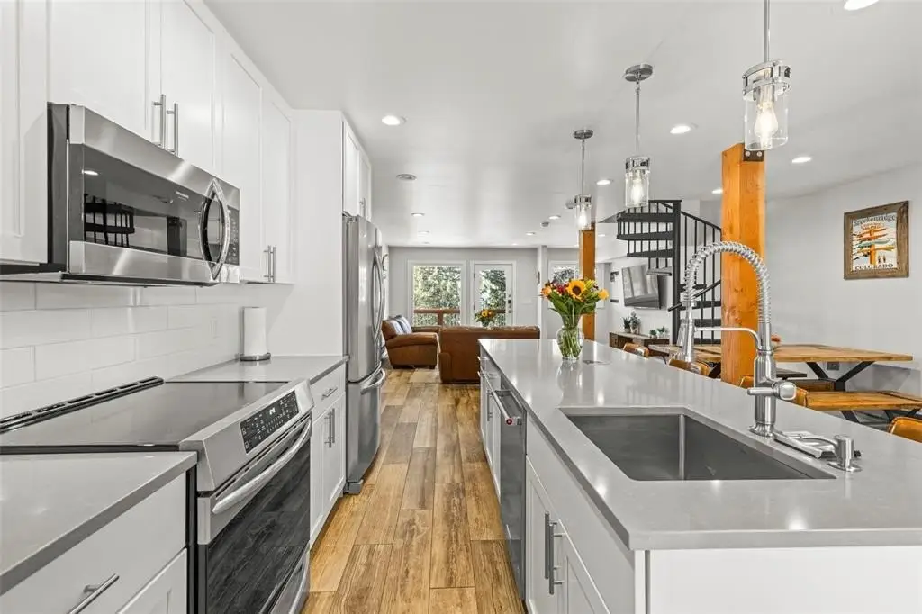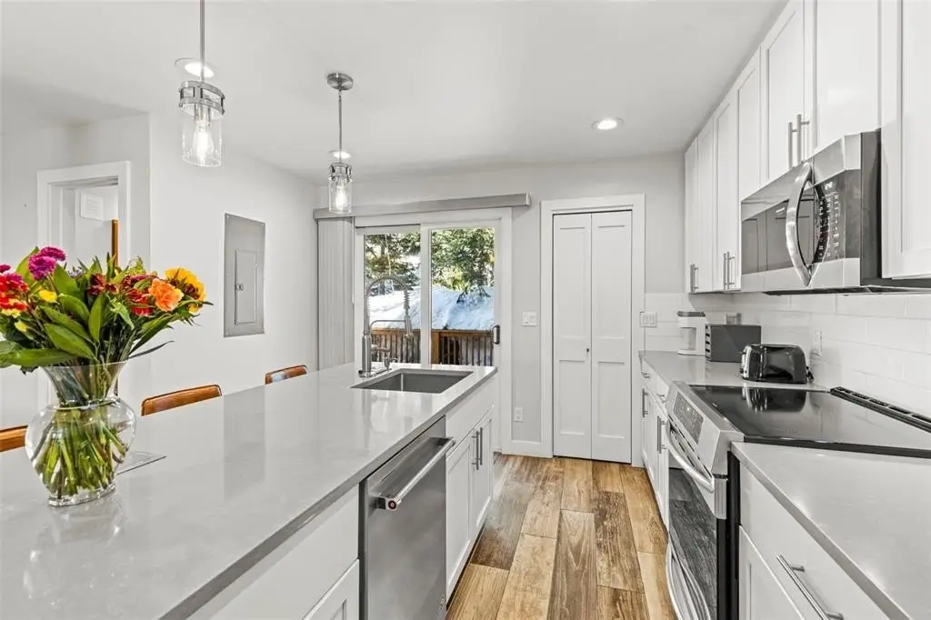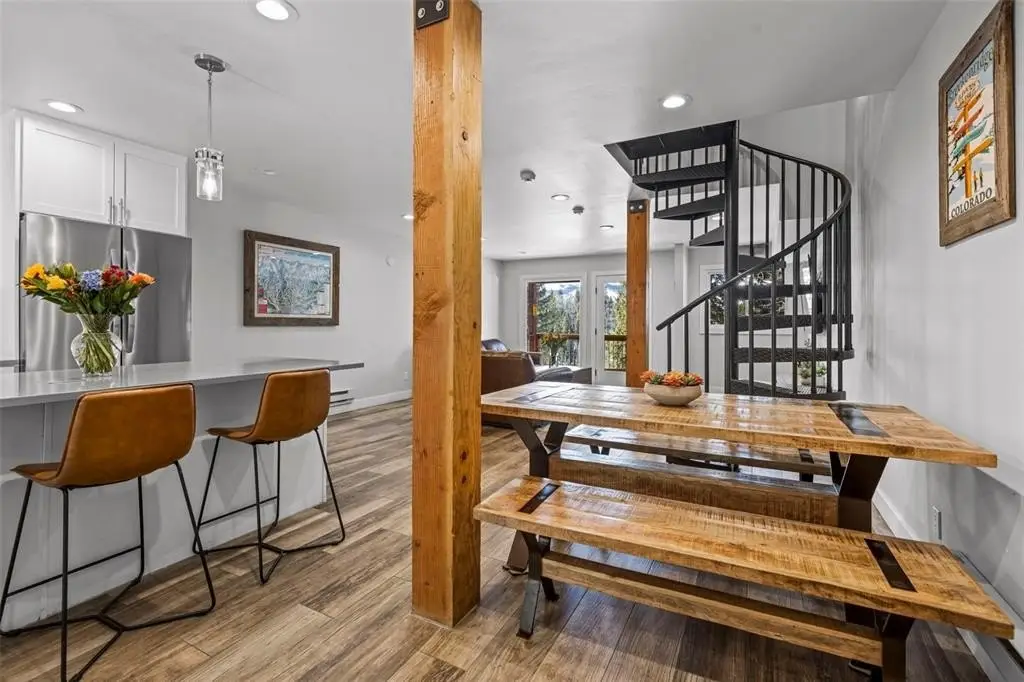 Stunning Mountain Contemporary Townhouse with Ski Area Views Experience the perfect blend of modern luxury and mountain charm in this spacious 1,344 SF townhouse, beautifully renovated with a $230K mountain contemporary makeover. Featuring 2 bedrooms, a loft bedroom, and a bunk room that sleeps 4, this home is designed for comfort and style. Enjoy breathtaking ski area and mountain views from your living space, while upgrades—including a new roof, gutters with heat tape, 50-gallon water heater, and upgraded siding—ensure lasting quality and efficiency. Conveniently located just steps from the free bus to the ski area, this home offers effortless access to world-class skiing, dining, and shopping. Whether you're looking for a full-time residence, a vacation getaway, or an investment property, this turn-key retreat is ready for you!