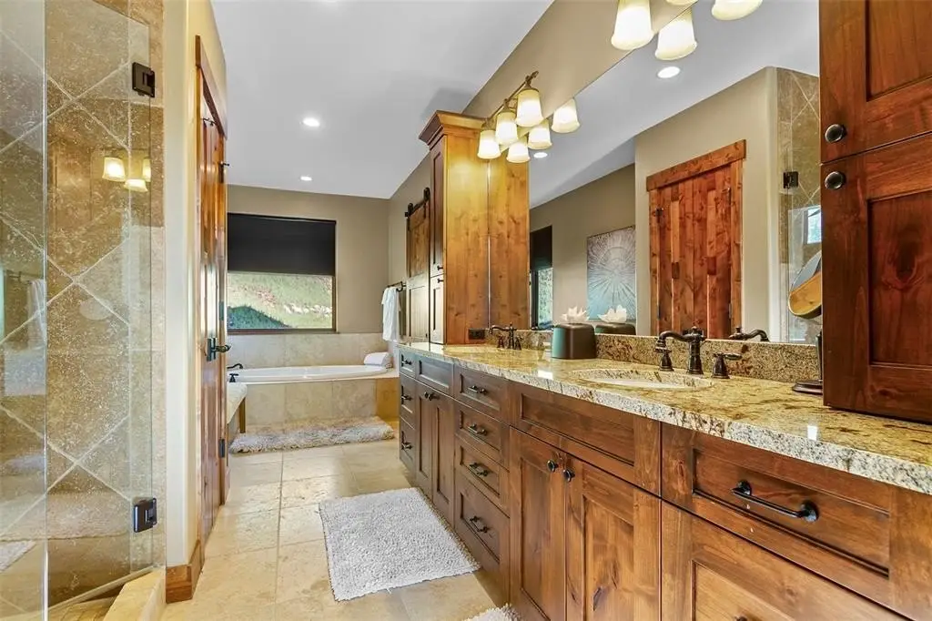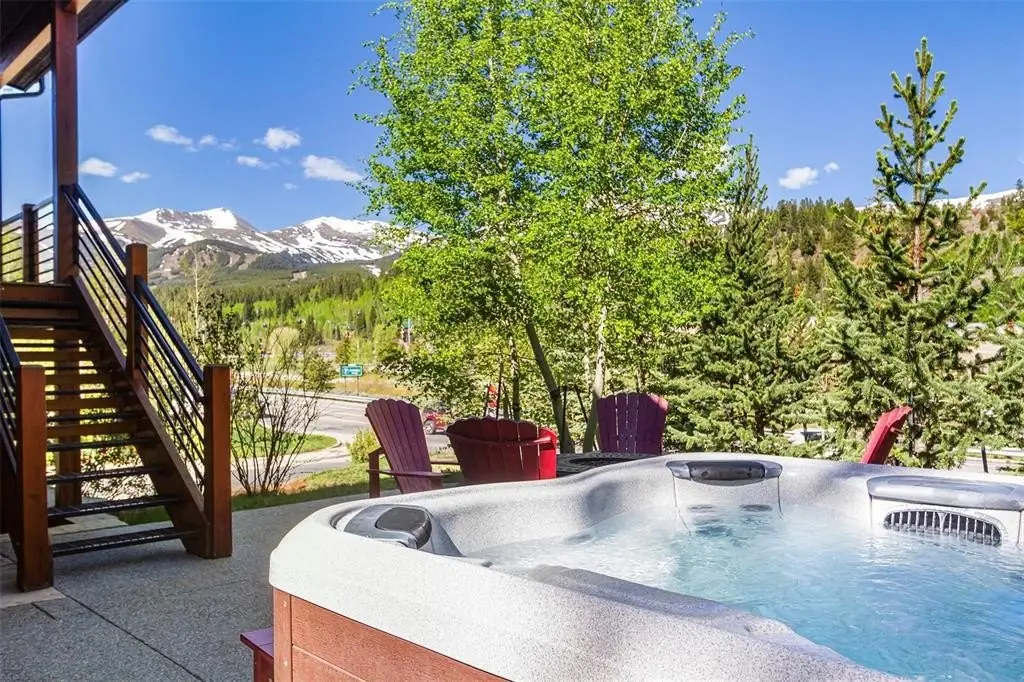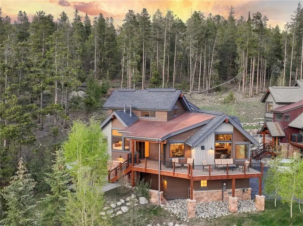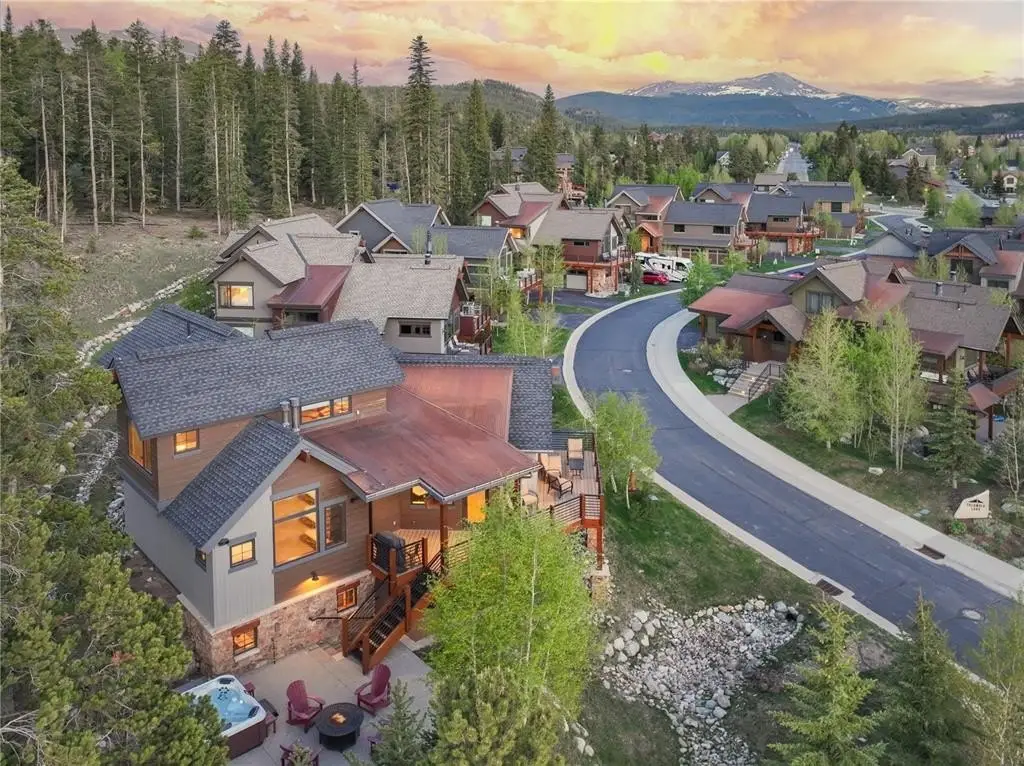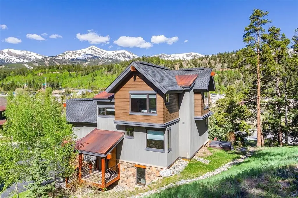 Welcome to your dream mountain escape in the exclusive Columbia Lode neighborhood—just steps from Main Street, the BreckConnect Gondola, hiking trails, fine dining, and boutique shopping. This 4-bed, 4-bath single-family home blends timeless design with mountain-modern elegance. Built in 2015 by Westridge Development and Colvin Construction, the home features rich hardwood flooring, custom alder cabinetry, and oversized windows showcasing panoramic ski area views and tons of natural sunlight. Enjoy a proper chef’s kitchen with Viking appliances, slab granite countertops, and farmhouse sink. Multiple living areas include a great room, private sitting loft, and a cozy family room with wet bar. Three stone fireplaces add warmth and charm throughout. The luxurious primary suite offers a spa-like bath and walk-in closet. Perched within mature Aspens and beautifully landscaped grounds, step outside to your private outdoor oasis featuring an oversized patio, hot tub, fire pit, and ample deck space—perfect for entertaining or unwinding under the stars. Sold fully furnished with high-end appointments, this home invites you to settle in immediately and enjoy everything Breck has to offer. Park your ride on the newly epoxy-sealed garage floor and never have to drive it again. Live your best life with low-maintenance living in a residence where craftsmanship, comfort, and unbeatable access to this iconic ski town and adventure come together perfectly. With ski lifts, trails, and town just steps away, this home embodies the best of Breckenridge living—luxury, location, and lifestyle.