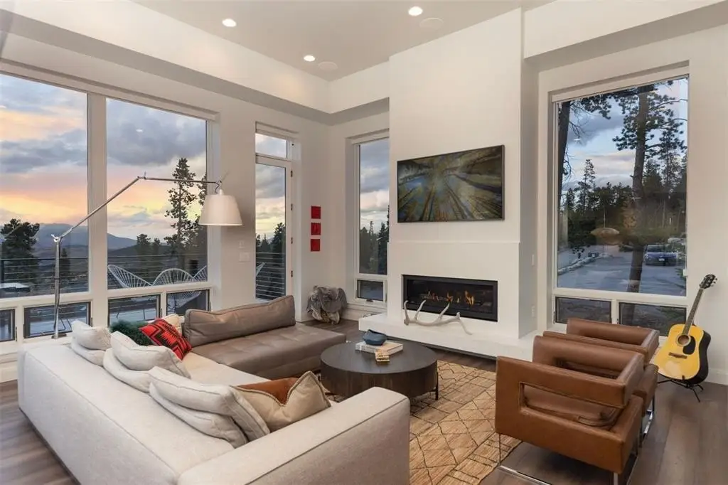 Mountain modern masterpiece combining a mid-century aesthetic with a western sensibility. This impeccably curated property lives like a single-family residence offering over 3,190 square feet of luxury living space plus a 775-square-foot heated 2+ car garage with two owner’s closets. Built with ultra-efficient ICF exterior construction, the home maintains remarkable comfort year-round, with radiant heating across seven zones and a snowmelt system at the entry and apron. The main level features soaring 13’ ceilings, Sierra Pacific windows and doors, and seamless access to expansive elevated decks for indoor-outdoor living, with unparalleled views of the entire Ten Mile Range. A Morning Star elevator provides convenience across all levels, while custom Lutek roller shades—motorized in primary living spaces—deliver privacy and style. Flexible spaces allows the home to adapt to every need: a media room doubles as a bedroom with queen and Murphy bunk sleeping for four, while an office can easily flex to a fifth bedroom. The primary suite impresses with dramatic ceilings, a spa-like bath, private deck, and adjacent laundry. The chef’s kitchen is outfitted with Thermador and Jenn-Air appliances, dual beverage coolers, and sleek modern finishes. Entertainment and technology are second to none with a Savant smart system controlling lighting, shades, audio, A/V, Wi-Fi, garage, and front door—whether at home or remotely. Multiple TVs, KEF speakers, Dolby Atmos surround, and whole-home audio (indoor and outdoor) are all included. Outdoor adventure begins just beyond the patio, with backcountry skiing, snowshoeing, mountain biking and hiking access to Baldy, Australia Gulch, Sister’s Cabin, and Sally Barber. Snow removal is prepaid through April 2026, and infrastructure is already in place for a future hot tub or additional rooftop deck. This Architect/Designer owned home is offered with all installed appliances, Savant equipment, Murphy beds, and more.