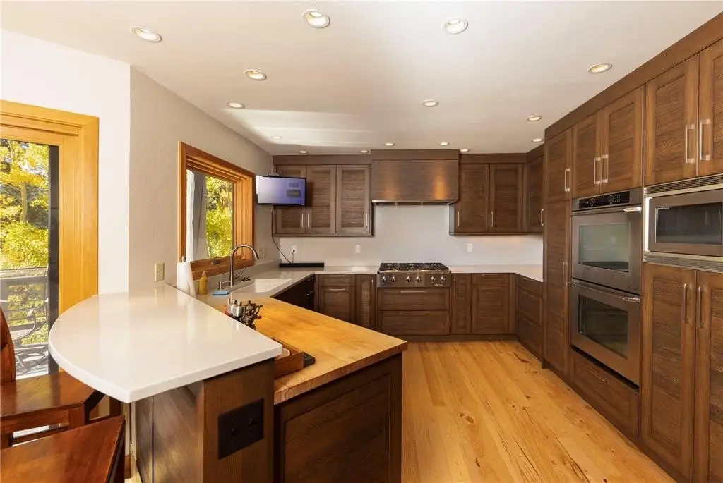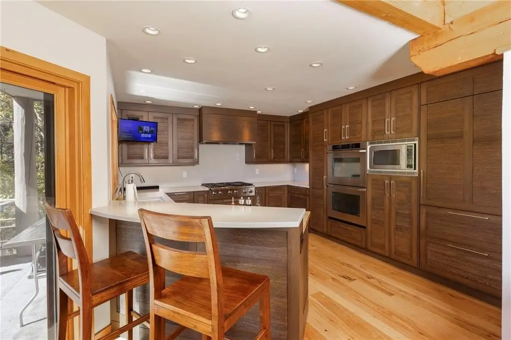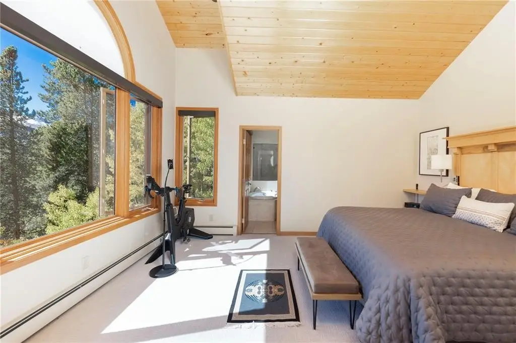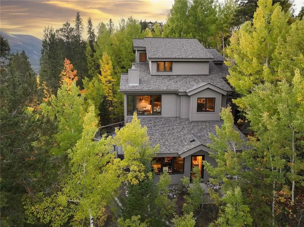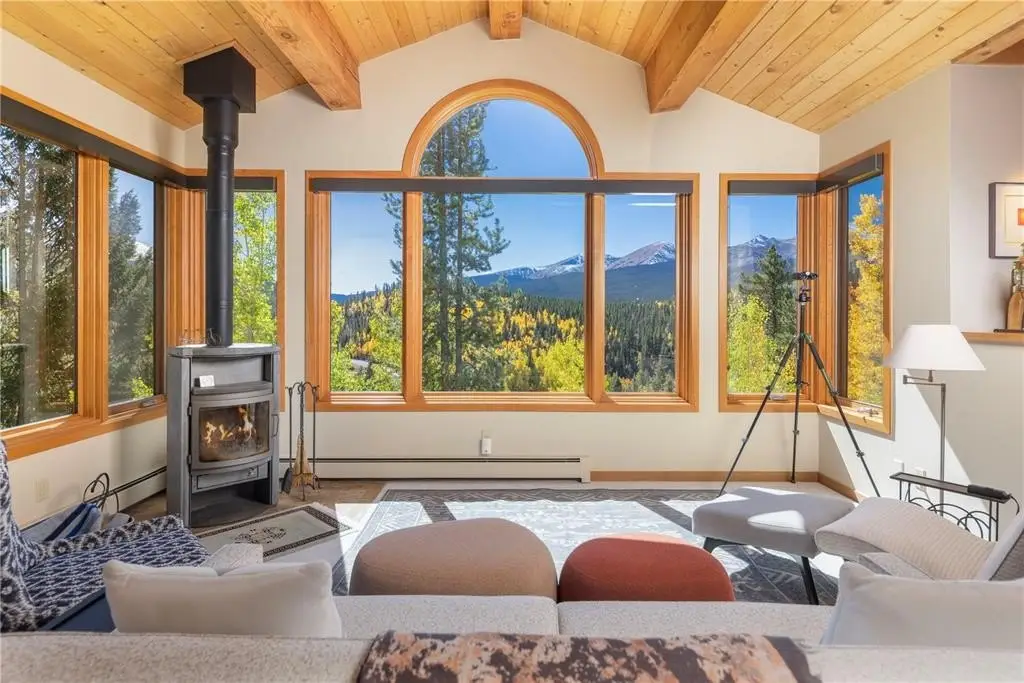 Nestled in a serene forest of aspens and evergreens, this 4-bedroom, plus office, contemporary mountain retreat in Breckenridge captures the essence of Colorado living. Bathed in passive solar light, the home offers breathtaking views of ten iconic peaks, including Quandary, Peak 10, Baldy, Red, and Hoosier Ridge. Set on 1.2 acres, the property has been thoughtfully updated with newer carpet, fresh exterior paint, a newer roof, expanded driveway, and newer front entry stairs, decks and exterior staircases. Inside, the heart of the home is a fully remodeled chef’s kitchen featuring William Ohs custom cabinetry, a Subzero refrigerator, gas cooktop and double oven, and old-growth Hickory floors that flow into the dining area. Step out onto the adjacent deck for grilling with a BBQ directly connected to the gas line, perfect for entertaining under the stars. A Danish soapstone wood-burning stove anchors the main living room, and adjacent you will find a private office including a cozy reading nook and inspiring views of Baldy, while a secondary family room on the lower level opens to a sun-drenched deck ideal for morning coffee or afternoon lounging. The spacious attached garage includes storage cabinetry and a dedicated workshop. With panoramic views and a quick walk to the bus stop, this property offers it all. Whether you're seeking solitude, adventure, or a place to gather, this home provides a rare blend of craftsmanship, comfort, and alpine beauty.