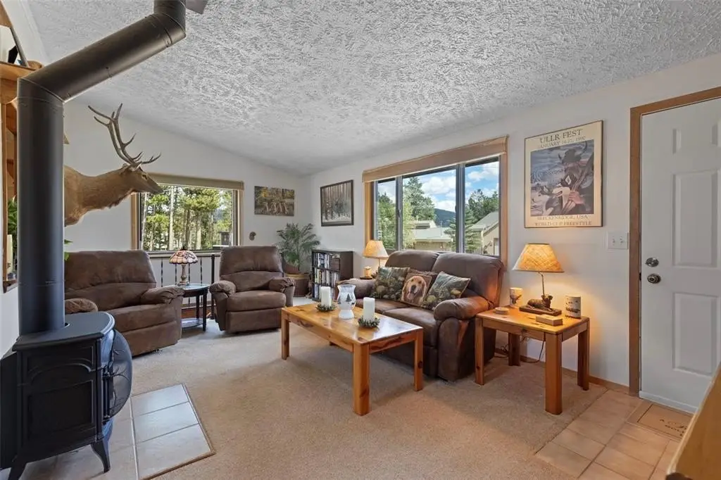A Mountain Escape, Peak 7, Breckenridge — quaint three-bedroom cabin nestled on a full acre lot, offering peace, privacy, sweeping views of Baldy Mountain and the Ten Mile Range and tons of sunshine. Adventure awaits at your doorstep with close by trails for hiking, mountain biking, or cross-country skiing. City water, sewer, and natural gas. Two Vermont Casting gas stoves add warmth and ambiance, making this home an inviting retreat year-round. Minutes from Breckenridge Ski Resort and downtown Breckenridge, enjoy effortless access to world-class skiing, dining, shopping, and all the Town’s amenities.
