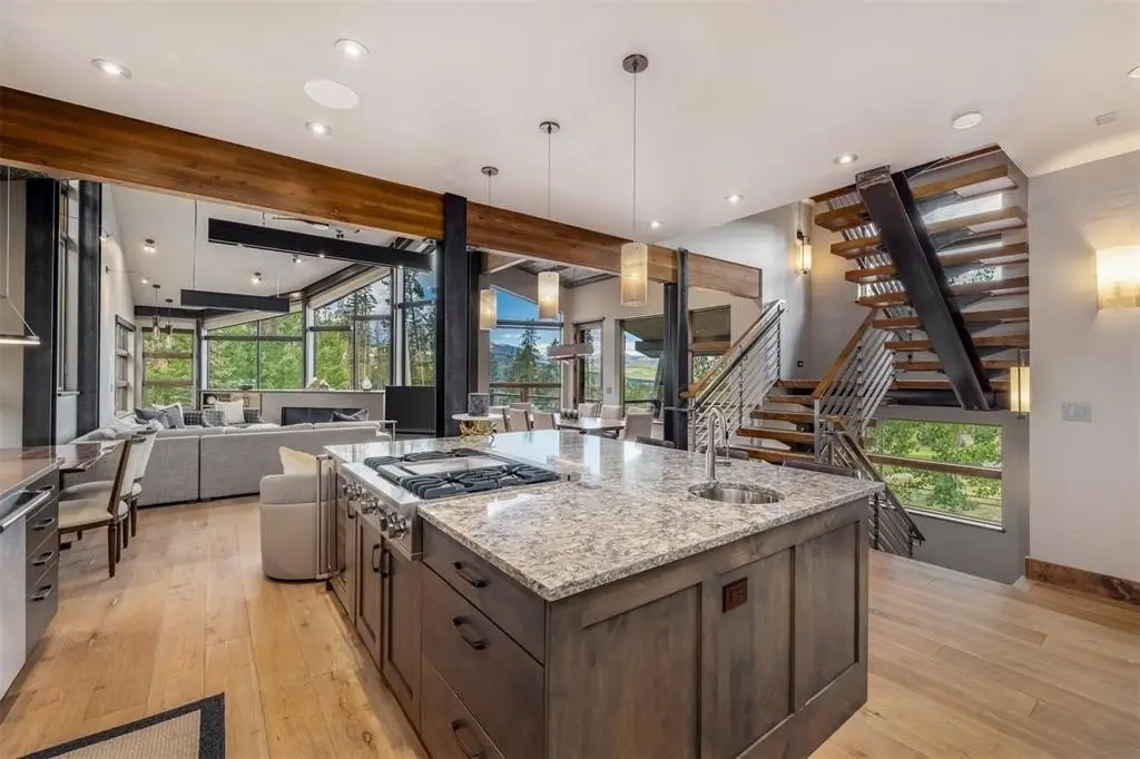 Tucked at the end of a quiet cul-de-sac, this modern yet timeless home overlooks the signature 7th hole of the Elk Course on the Jack Nicklaus Signature Breckenridge Golf Course. A striking blend of clean lines, warm wood finishes, steel accents, and custom lighting creates a balanced and inviting atmosphere throughout the residence. The main level is designed for comfort and ease, featuring a chef’s kitchen with center island and a spacious primary suite equipped with the latest in oxygen technology, tucked into its own private wing for added seclusion. The great room features a wall of windows to capture the westerly mountain views as well as the manicured golf course and brings in a plethora of natural light. The large deck situated off the great room offers the ideal spot to relax, dine, or entertain outdoors. Upstairs, a versatile loft provides flexible space that can serve as a home office, playroom, or extra guest sleeping area. The lower level is built for entertaining, complete with two private suites—one with full oxygen technology—a generous bunk room, and a cozy family room anchored by a bar, pool table, and custom wine cellar. From here, step out to a serene fire pit area just a few hundred yards from the golf course. With easy access to nearby hiking and biking trails, and only a 10-minute drive to world-class skiing and downtown Breckenridge, this home offers the ideal balance of privacy, convenience, and mountain living. An oversized garage provides ample storage for vehicles, gear, and all your mountain toys. A rare opportunity, as homes on Hamilton Court do not become available very often.