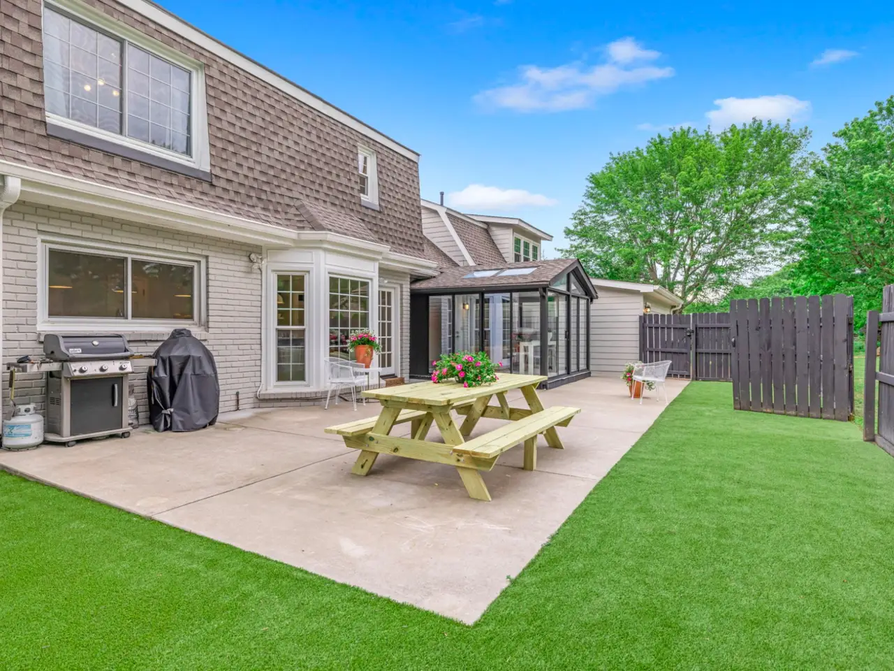 Outdoors, the fully fenced and turfed section of the yard creates a private paradise for children and pets, while the entire lot spans over an acre of usable, lush space.