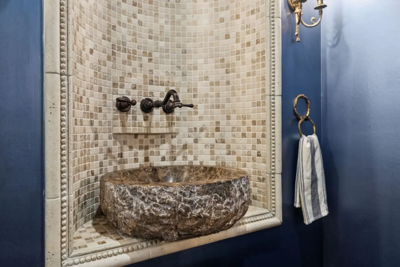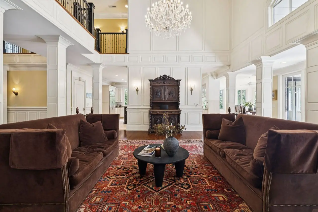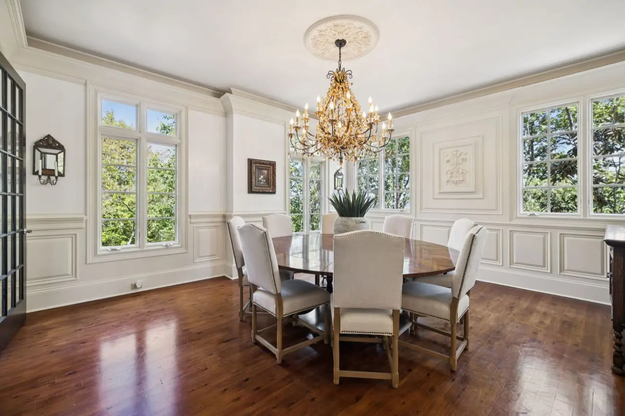 Welcome to Hilltop Manor, an architectural showpiece perched atop a scenic hill in Belle Rive, one of Brentwood's most established and desirable neighborhoods. Perfectly positioned at the end of a quiet cul-de-sac, this stunning estate offers unmatched privacy while being just minutes from top-rated schools, scenic parks, premier shopping, and Brentwood's finest dining. Light-filled and beautifully designed, this residence showcases detailed crown moldings, soaring ceilings, and elegant finishes throughout. The spacious floor plan is ideal for both everyday living and grand entertaining, with seamless indoor-outdoor flow and breathtaking views. A dedicated work-from-home study exudes sophistication and warmth, wrapped in rich Ralph Lauren-style wood paneling, custom built-in bookshelves, and timeless architectural details - a space that elevates productivity and inspires creativity. The formal dining room is equally impressive, evoking the pages of Veranda magazine with its refined elegance and inviting atmosphere, making it the perfect setting for memorable gatherings. The lower level serves as a complete retreat with its own full kitchen, media room, professional-grade recording studio, and private entrance - ideal for guests, extended family, or creative workspaces. For added convenience, a private elevator connects the lower level to the main floor, opening directly into the kitchen to make transporting groceries and daily essentials effortless. Luxury amenities abound, including a resort-style swimming pool and spa, lush professional landscaping, and a welcoming outdoor fireplace seating area designed for unforgettable evenings with family and friends. Combining timeless design, exceptional amenities, and an unbeatable location, Hilltop Manor is a rare opportunity to own a private oasis in the heart of Brentwood.