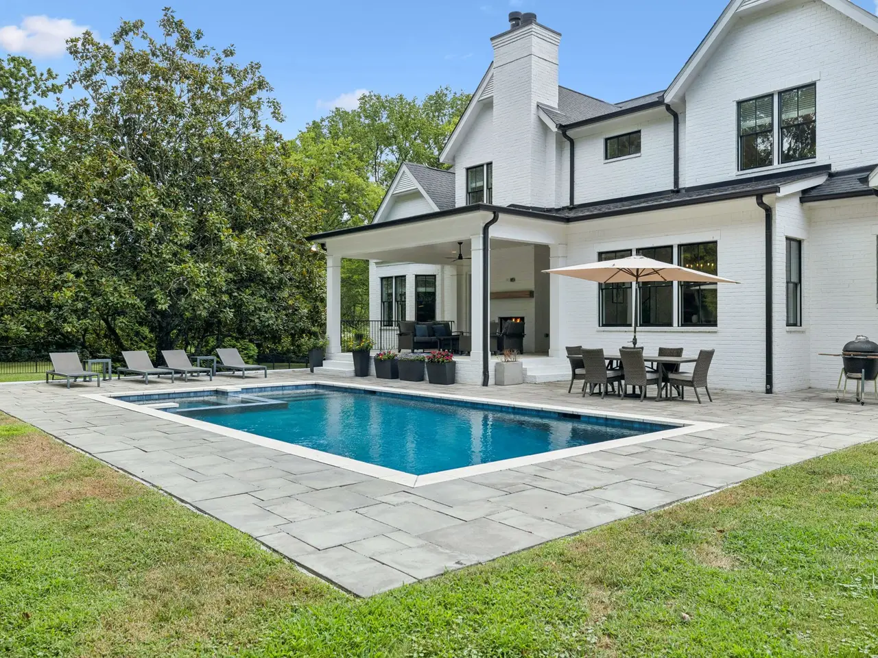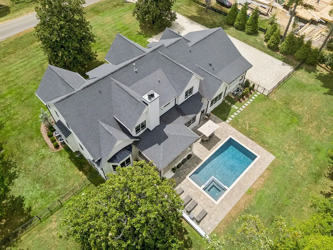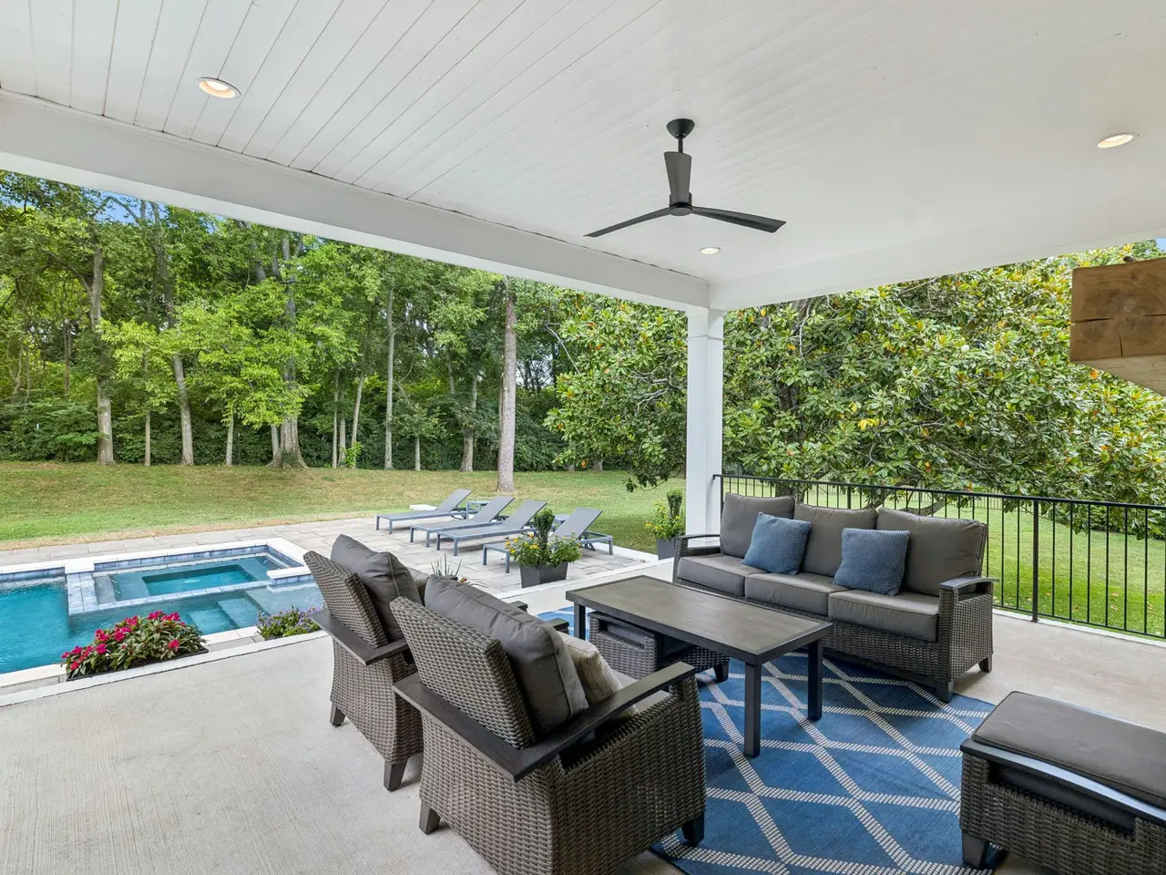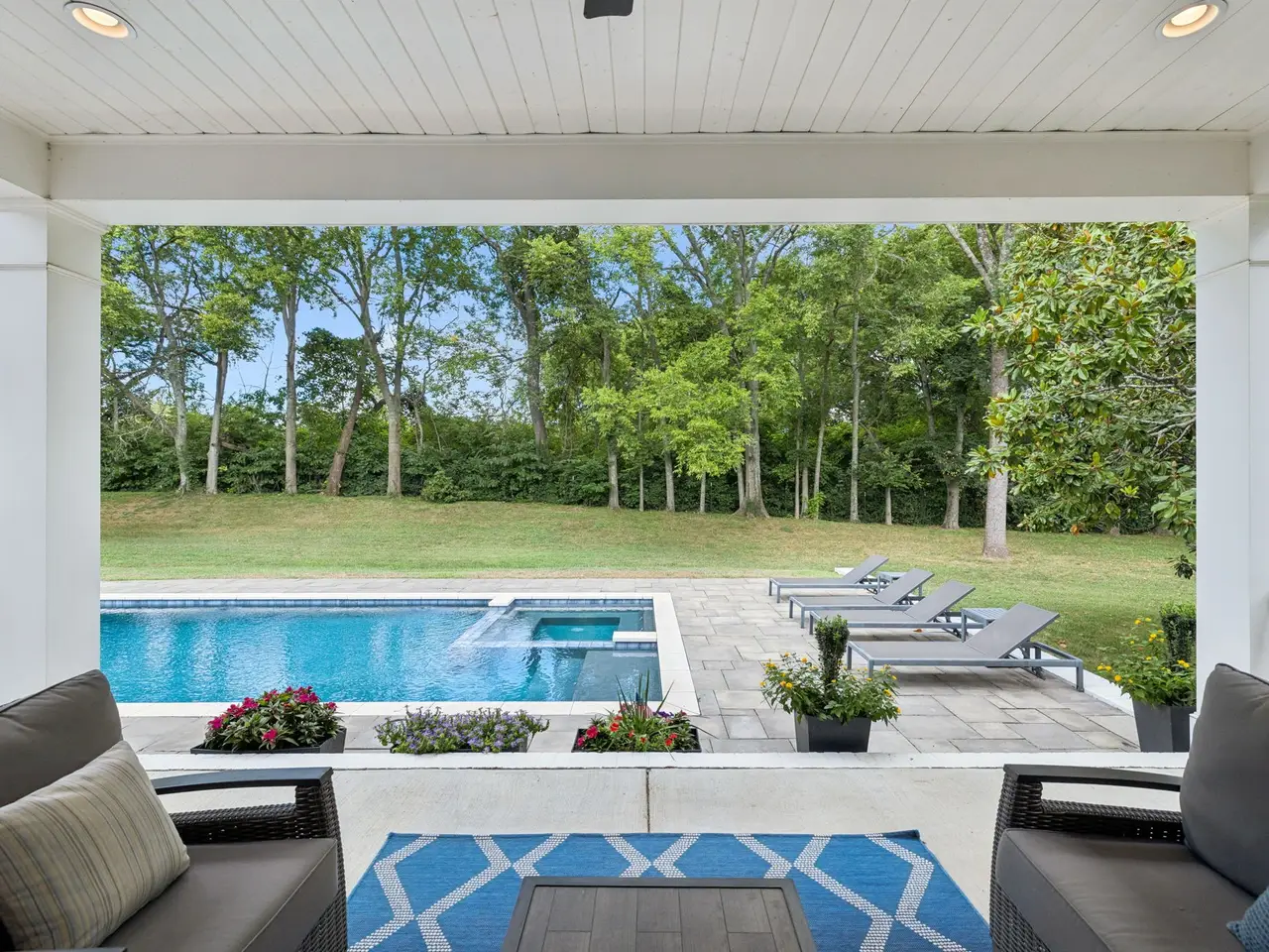 Luxury, comfort, and convenience meet at 5116 Williamsburg Rd in the sought-after Meadowlake community of Brentwood. From the moment you arrive, the beautiful white brick exterior, welcoming covered front porch, and inviting entry foyer set the tone for the elegance inside. Just off the foyer, the formal dining room features a shiplap accent wall, creating a seamless connection to the home's timeless design details. The heart of the home is the gourmet kitchen, boasting top-of-the-line appliances, ceiling-height cabinetry, a large center island, quartz countertops, a hidden walk-in pantry, and a spacious breakfast nook with a continued shiplap accent wall. The adjoining living room offers a cozy fireplace framed by wooden beams, custom built-in shelving, and dual French doors that open to the covered back porch--perfect for indoor-outdoor living. The main-level primary suite is a private retreat, showcasing a vaulted shiplap ceiling, bay window seating area, and a spa-inspired bath with a stand-alone soaking tub, double vanities, a dedicated makeup station, built-in tile bench in the shower, and a walk-in closet with custom storage. A guest suite on the main floor provides ideal accommodation for visitors. Additional thoughtful touches include a drop-zone with hooks and a bench, and a large laundry/utility room with generous counter space, hanging rods, and even a desk work area. Upstairs, you'll find a dedicated office or creative space, a spacious bonus room with a wet bar and beverage center, three more bedrooms, two full baths, and abundant unfinished storage space--offering room for future expansion. Step outside to your private one-acre, fenced backyard oasis, complete with a covered porch featuring a fireplace, a sparkling heated saltwater pool, and an integrated spa -- all backed by mature trees for privacy. Zoned for Williamson County's award-winning schools and ideally located near shopping, dining, and I-65, this home offers the ultimate living experience.