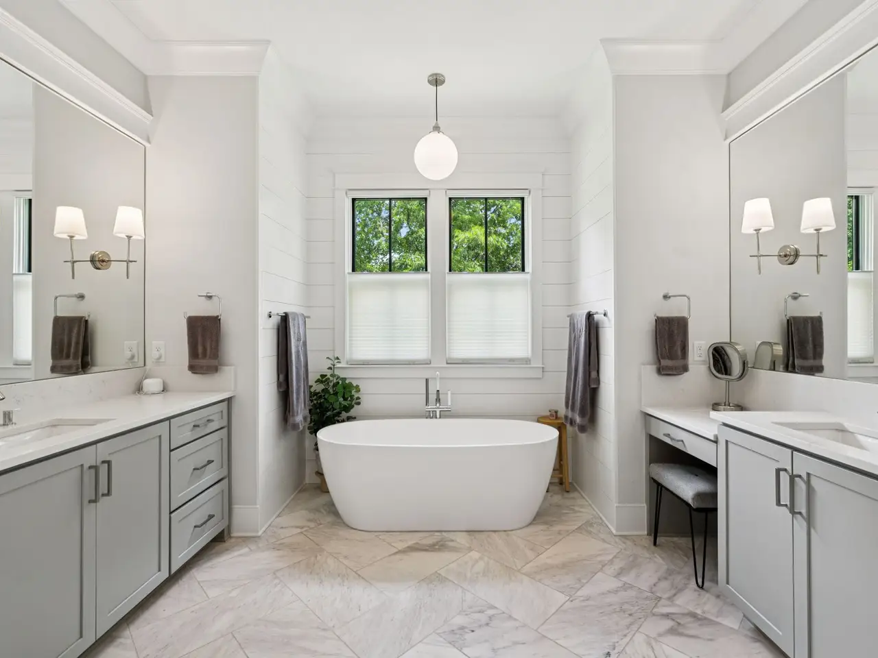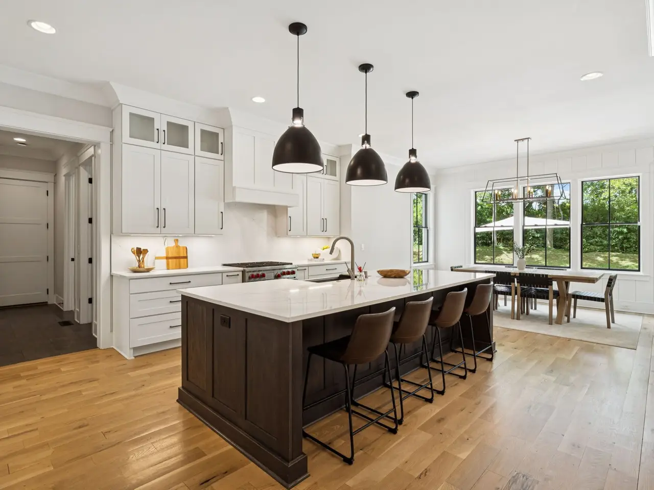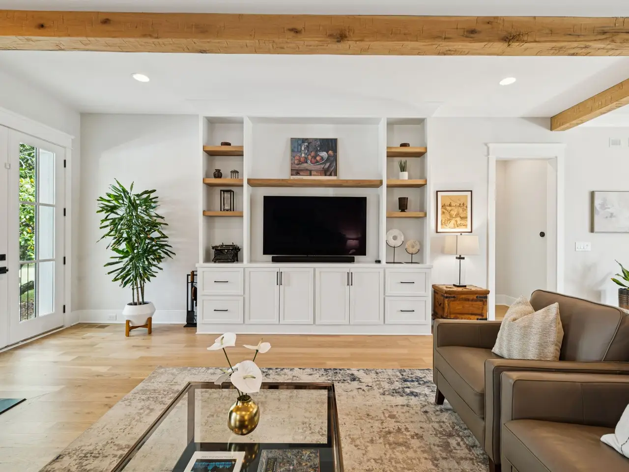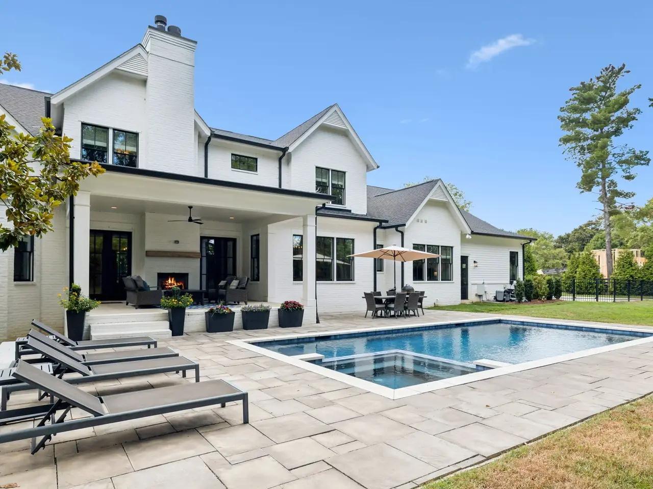 Luxury, comfort, and convenience meet at 5116 Williamsburg Rd in the sought-after Meadowlake community of Brentwood. From the moment you arrive, the beautiful white brick exterior, welcoming covered front porch, and inviting entry foyer set the tone for the elegance inside. Just off the foyer, the formal dining room features a shiplap accent wall, creating a seamless connection to the home's timeless design details. The heart of the home is the gourmet kitchen, boasting top-of-the-line appliances, ceiling-height cabinetry, a large center island, quartz countertops, a hidden walk-in pantry, and a spacious breakfast nook with a continued shiplap accent wall. The adjoining living room offers a cozy fireplace framed by wooden beams, custom built-in shelving, and dual French doors that open to the covered back porch--perfect for indoor-outdoor living. The main-level primary suite is a private retreat, showcasing a vaulted shiplap ceiling, bay window seating area, and a spa-inspired bath with a stand-alone soaking tub, double vanities, a dedicated makeup station, built-in tile bench in the shower, and a walk-in closet with custom storage. A guest suite on the main floor provides ideal accommodation for visitors. Additional thoughtful touches include a drop-zone with hooks and a bench, and a large laundry/utility room with generous counter space, hanging rods, and even a desk work area. Upstairs, you'll find a dedicated office or creative space, a spacious bonus room with a wet bar and beverage center, three more bedrooms, two full baths, and abundant unfinished storage space--offering room for future expansion. Step outside to your private one-acre, fenced backyard oasis, complete with a covered porch featuring a fireplace, a sparkling heated saltwater pool, and an integrated spa -- all backed by mature trees for privacy. Zoned for Williamson County's award-winning schools and ideally located near shopping, dining, and I-65, this home offers the ultimate living experience.