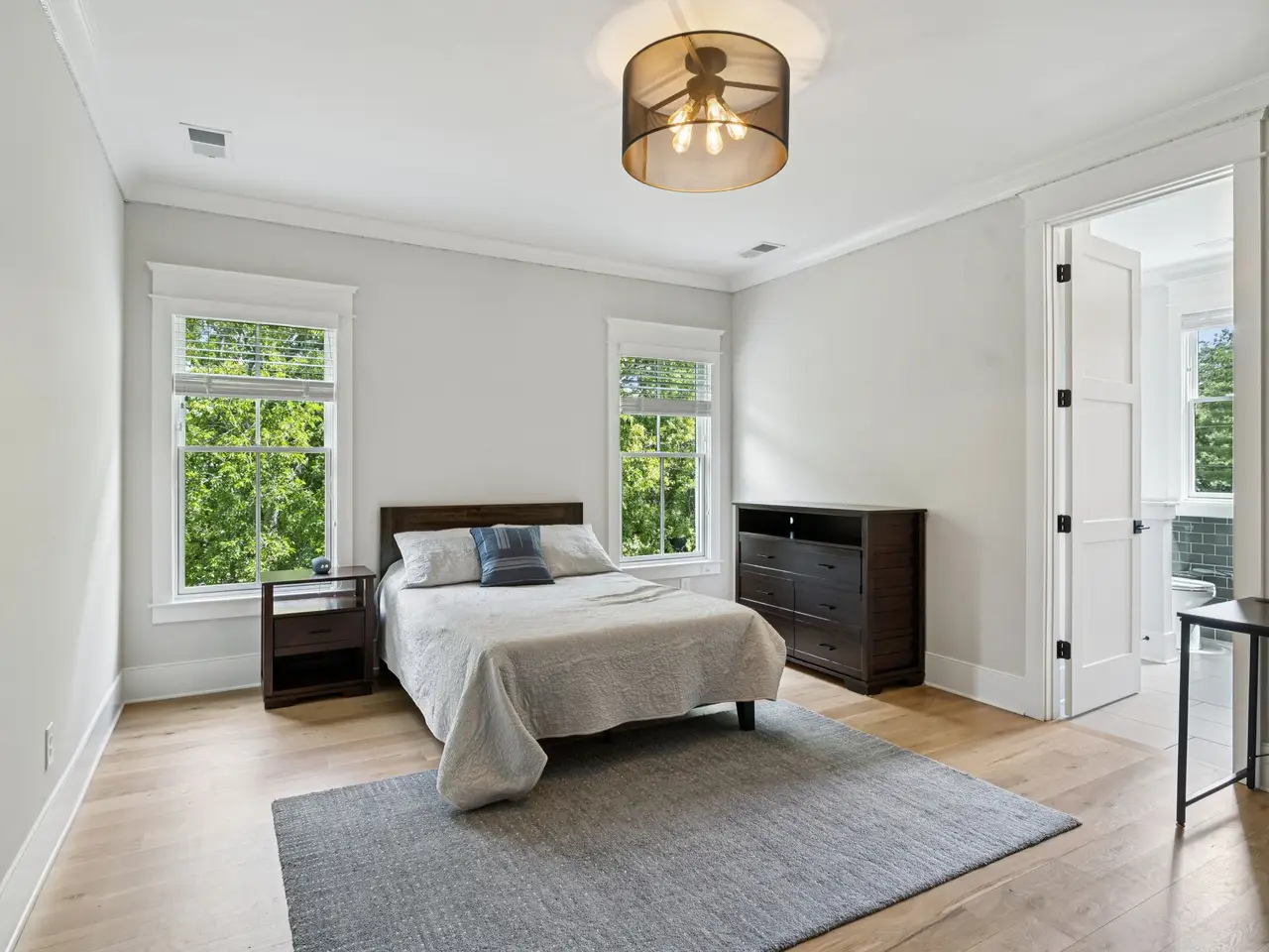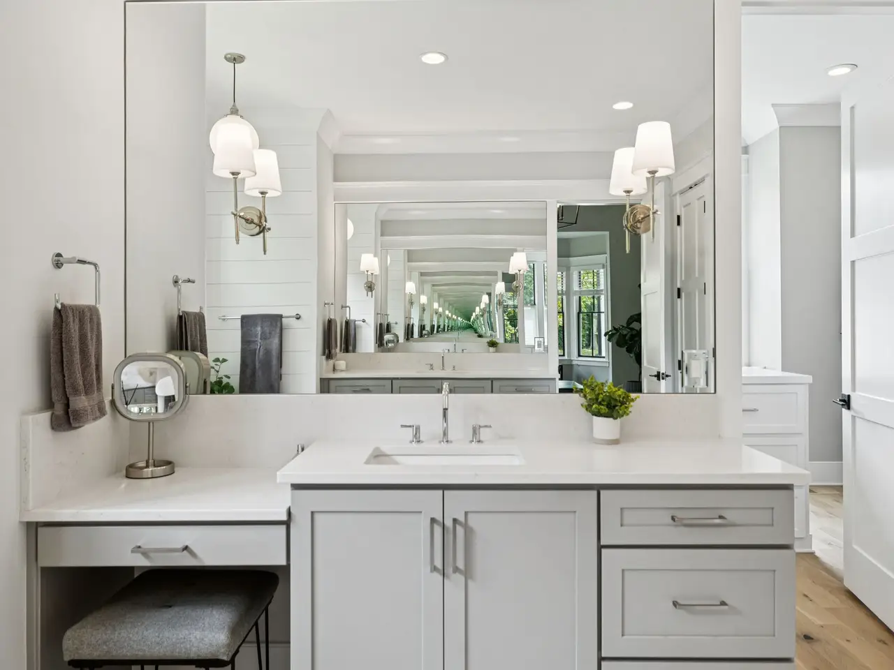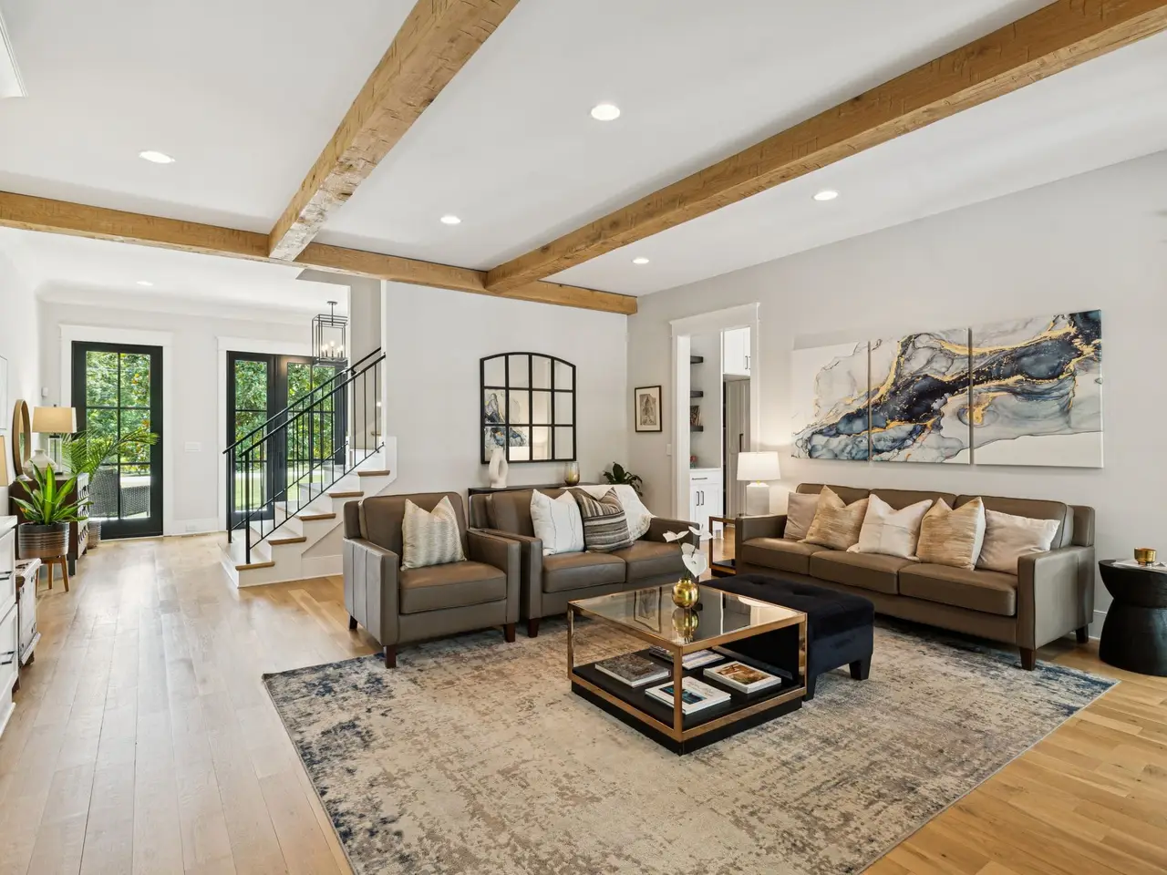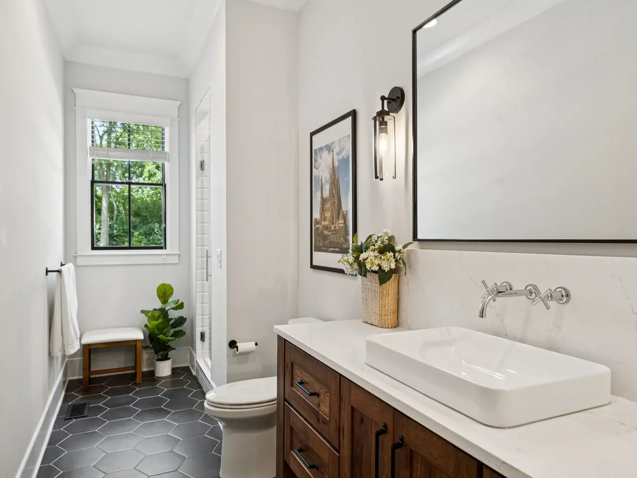 Luxury, comfort, and convenience meet at 5116 Williamsburg Rd in the sought-after Meadowlake community of Brentwood. From the moment you arrive, the beautiful white brick exterior, welcoming covered front porch, and inviting entry foyer set the tone for the elegance inside. Just off the foyer, the formal dining room features a shiplap accent wall, creating a seamless connection to the home's timeless design details. The heart of the home is the gourmet kitchen, boasting top-of-the-line appliances, ceiling-height cabinetry, a large center island, quartz countertops, a hidden walk-in pantry, and a spacious breakfast nook with a continued shiplap accent wall. The adjoining living room offers a cozy fireplace framed by wooden beams, custom built-in shelving, and dual French doors that open to the covered back porch--perfect for indoor-outdoor living. The main-level primary suite is a private retreat, showcasing a vaulted shiplap ceiling, bay window seating area, and a spa-inspired bath with a stand-alone soaking tub, double vanities, a dedicated makeup station, built-in tile bench in the shower, and a walk-in closet with custom storage. A guest suite on the main floor provides ideal accommodation for visitors. Additional thoughtful touches include a drop-zone with hooks and a bench, and a large laundry/utility room with generous counter space, hanging rods, and even a desk work area. Upstairs, you'll find a dedicated office or creative space, a spacious bonus room with a wet bar and beverage center, three more bedrooms, two full baths, and abundant unfinished storage space--offering room for future expansion. Step outside to your private one-acre, fenced backyard oasis, complete with a covered porch featuring a fireplace, a sparkling heated saltwater pool, and an integrated spa -- all backed by mature trees for privacy. Zoned for Williamson County's award-winning schools and ideally located near shopping, dining, and I-65, this home offers the ultimate living experience.