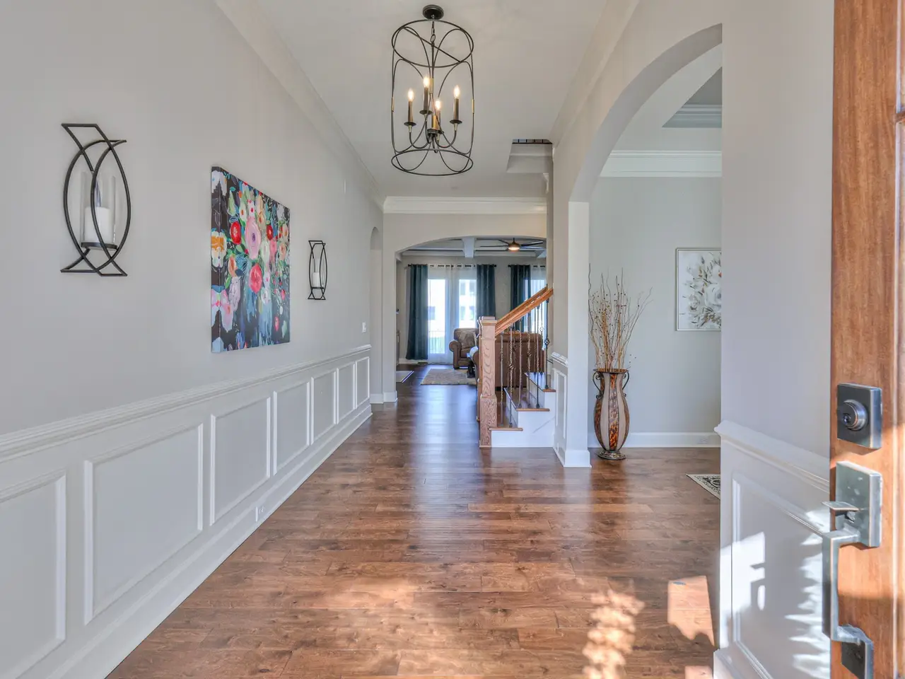 Seller is making available a $20,000 Buyer Mortgage Incentive! Several options to choose from, 7/6 ARM with $20K Buy Down 5.5% or 30 Year Fixed Rate 6.0% with an acceptable offer. Other options for the buyer to use the $20K incentive towards closing costs or as a landscaping incentive with an acceptable offer. This custom-built Devonshire II estate home is move-in ready! Situated on a prime, half-acre level homesite, perfect for a backyard pool, As you step through the grand foyer, you'll be greeted by beautiful lighting and elegant wood paneling along the side wall. Passing by the formal dining room with stunning floor-to-ceiling wood design. Retreat to the primary suite, which features a stylish wood-design wall and tray ceiling with a fan light. The spa-like primary bath includes a walk-in glass-tiled shower, and a soaking tub. The walk-in closet even boasts its own island for added convenience. The open living room features a coffered ceiling, a fireplace with a Wescott mantle, chevron trim detail, and built-in shelves. Step into the impressive chef's kitchen, where ceiling-high cabinetry, a custom hood, a 6-burner gas cooktop with a brushed gold pot-filler, and stainless steel double ovens come together to create a dream space for cooking and entertaining. The island, complete with a Blanco farm sink, quartz countertops, a dishwasher and two gold pendants. There is a large eat-in nook. The guest bedroom also features a wood-design wall, and there is a private office conveniently located on the first floor. Second floor has 3 Bedrooms and 2 full bath; a Jack n Jill, and an ensuite. Also, an additional half bath has been added to the home plan for extra convenience. The theater room boasts dramatic lighting, while the game room offers versatile space for entertainment. Step outside to relax on the covered back patio with stamped concrete, overlooking the expansive backyard with ample room for a pool!