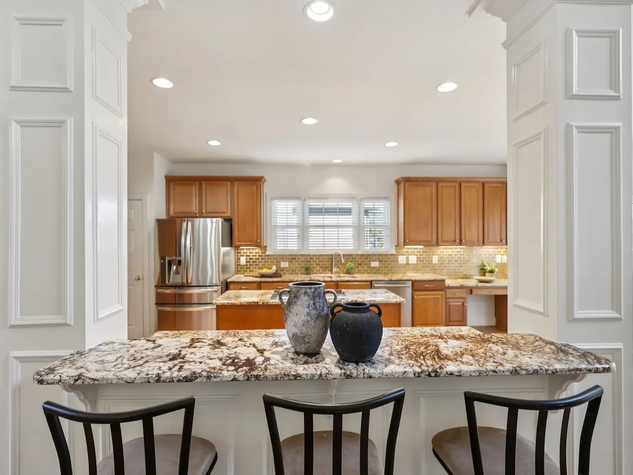 Inside, you'll find soaring ceilings, fresh interior paint, and gorgeous new floors throughout the main level. The kitchen has been completely transformed with new countertops, backsplash, dual oven and microwave, upgraded range, under-cabinet lighting, and added power above cabinets for accent lighting. All bathrooms feature updated countertops, cabinetry, mirrors, and lighting, while the primary bath showcases a refreshed shower. Every detail has been attended to--from a new security alarm system, carbon monoxide sensors, rear door, and exterior seals, to new fireplace gas logs, gutters, chimney cap, HVAC systems up and down, hot water heater, and energy-efficient windows and wrap. Outside, enjoy lush, professionally designed landscaping enhanced by a 10-zone sprinkler system, buried downspouts, clean and sealed driveway and sidewalks, and outdoor deck speaker wiring--perfect for entertaining. Additional features include a potential 5th bedroom that is currently unfinished, whole-home water filtration and ionization system, and a fully waterproofed crawl space with dehumidifier for peace of mind. This home blends modern upgrades with Brentwood charm--move-in ready and meticulously maintained inside and out.