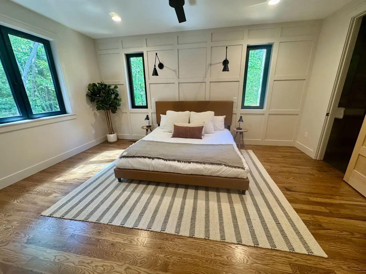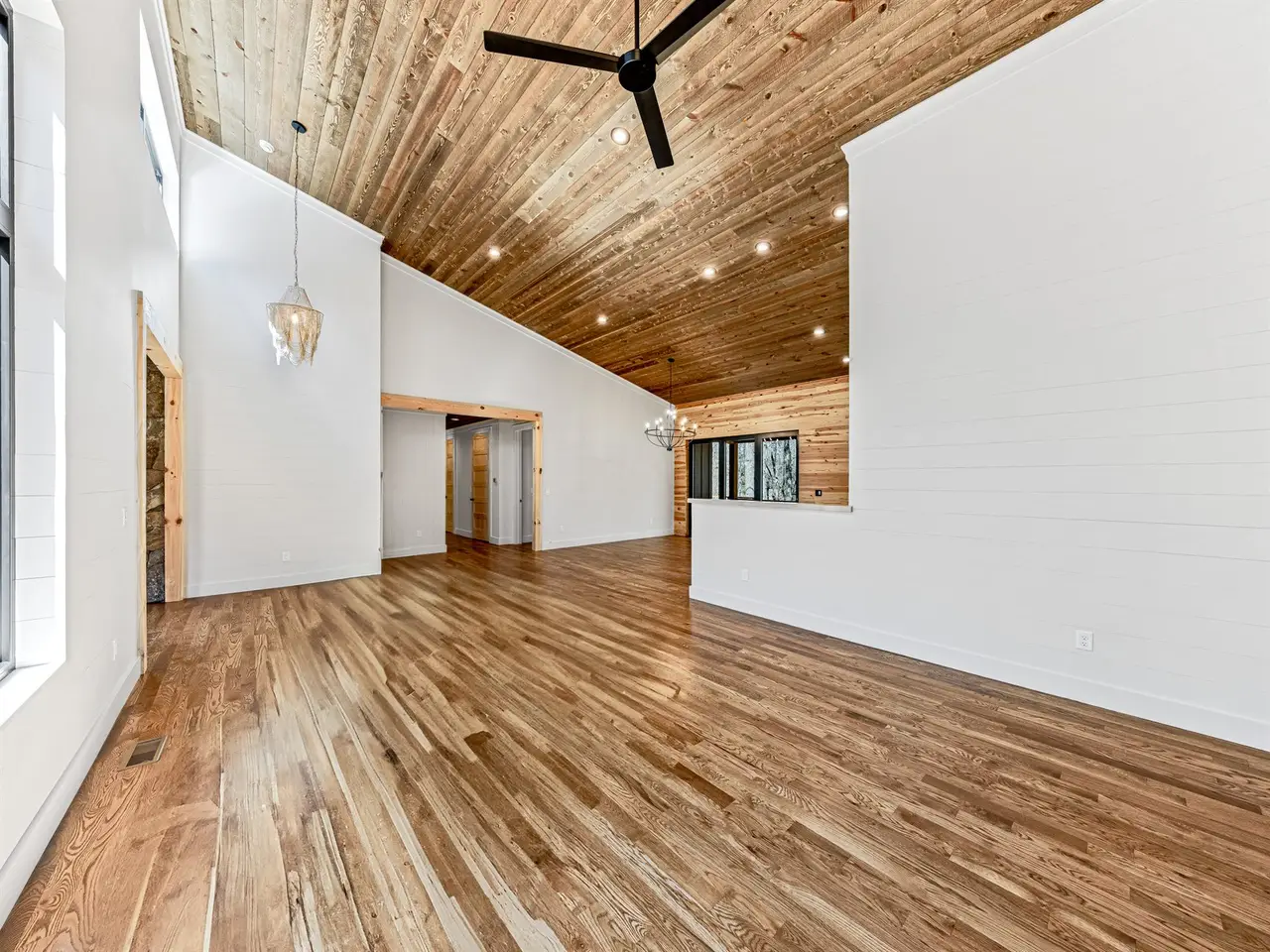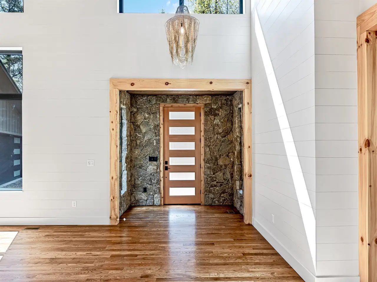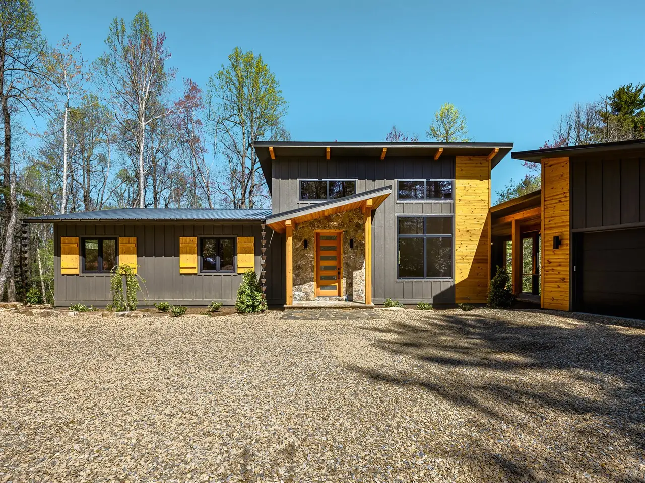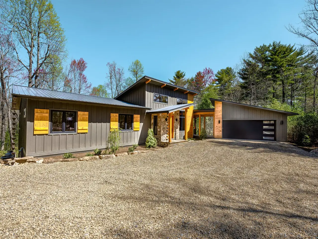 Welcome to this custom-built gem by Joe Bryson Construction, one of Brevard's top builders. This stunning single-level home greets you with a grand rock entry and a charming stone breezeway that connects the detached two-car garage to a spacious mudroom. Inside, you'll find soaring wood-clad cathedral ceilings, an open layout, and a striking fireplace with gas logs at the heart of the home. The kitchen is thoughtfully designed, perfect for everyday living or entertaining. Three inviting bedrooms feature custom accent walls, plus there's a bonus room ideal for a home office or gym. Quality craftsmanship shines throughout - from the stacked stone in the entryway to the fine finishes in every room. Bi-folding glass doors open onto a large private deck overlooking a peaceful, wooded setting. A perfect blend of comfort and style!