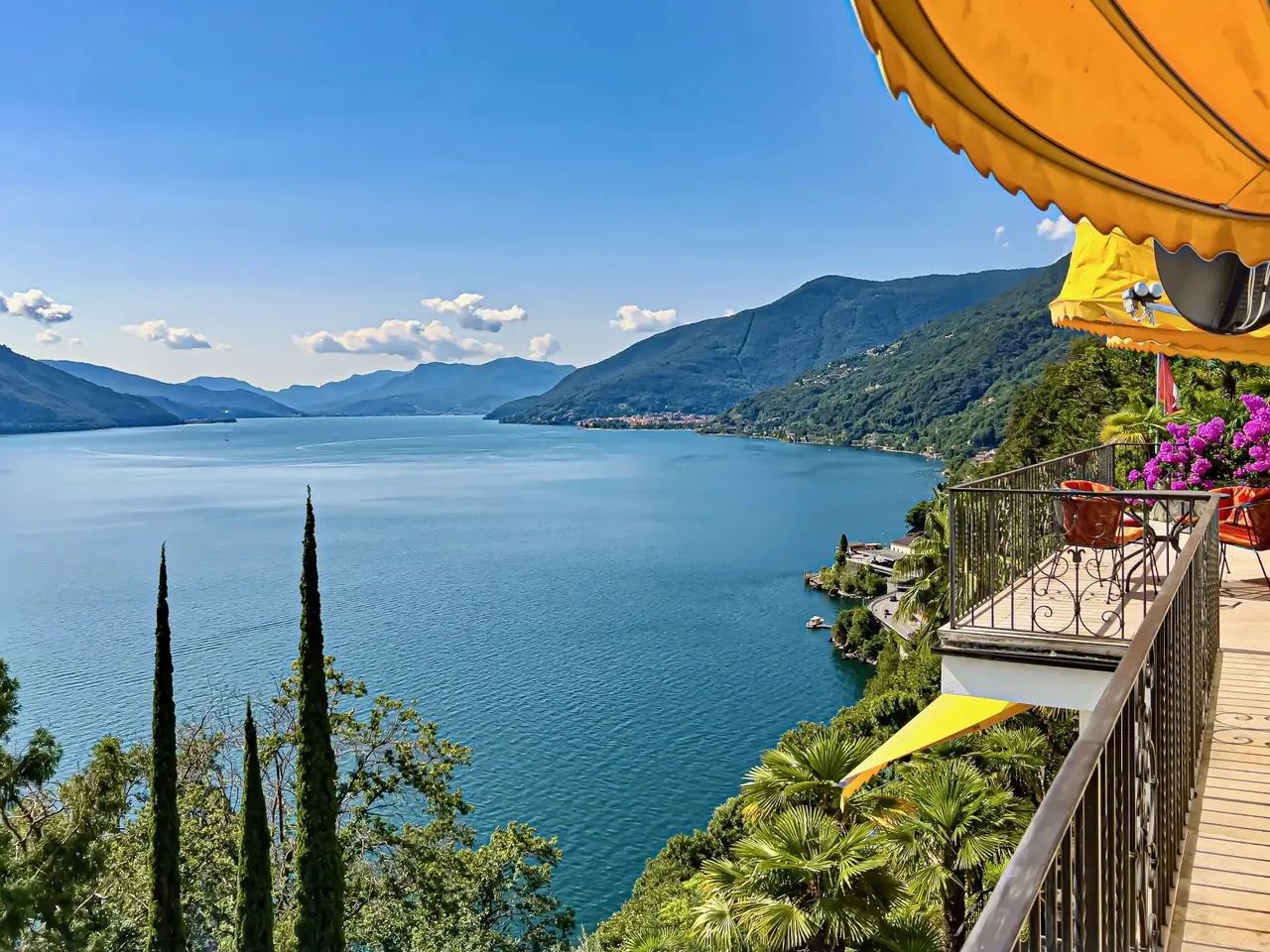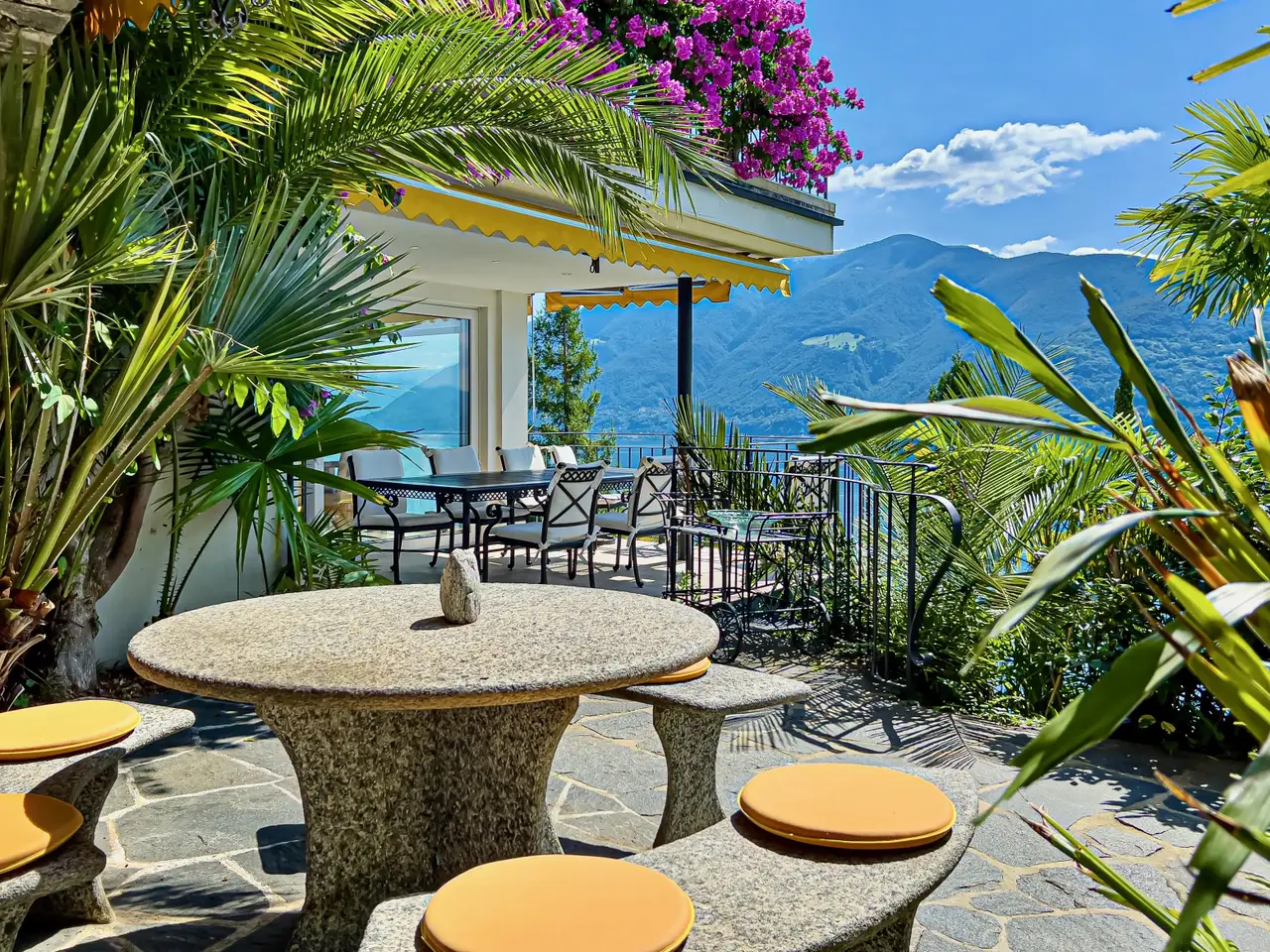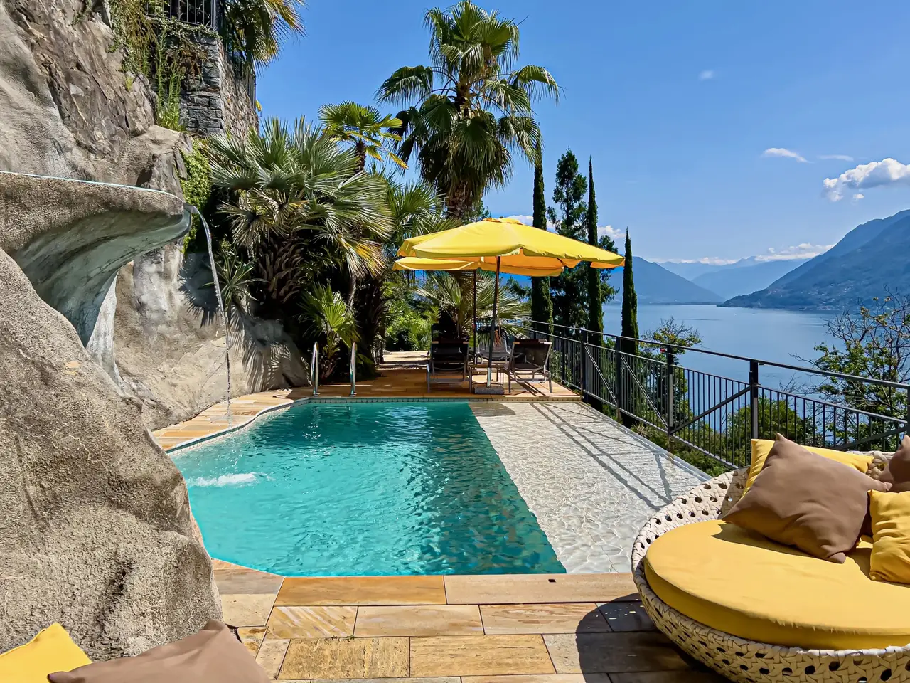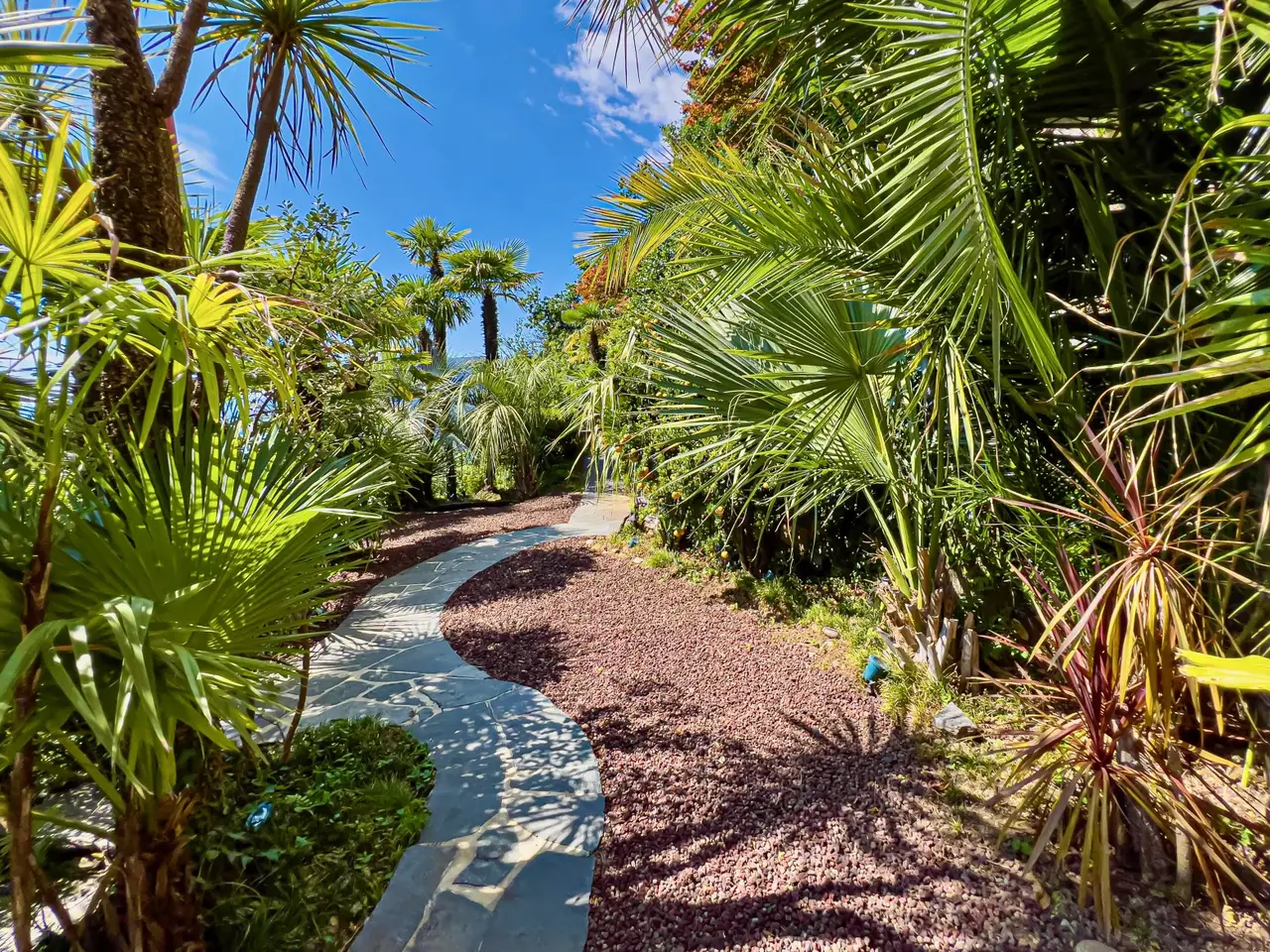 This enchanting villa with Mediterranean charm is for sale in a privileged location in the hills of Brissago with breathtaking lake views. The spacious and very exotic garden as well as the great infinity pool sculpted into the rock with small waterfall will fascinate all nature and botany lovers. The many rooms offer enough space for the whole family and the two separate entrances can be used optimally to receive guests. An ideal property for a relaxing holiday. • Exclusive location and 180° panoramic view • One external and two internal fireplaces (one with pizza oven) • Absolute privacy and an exclusive infinity pool • Exotic garden with over 100 different palm species