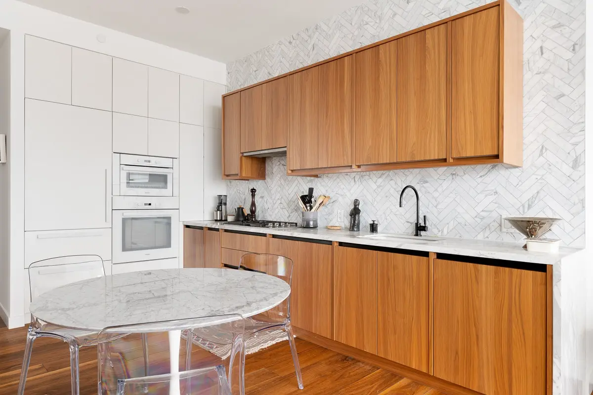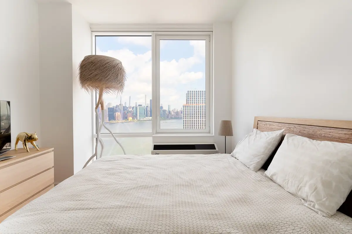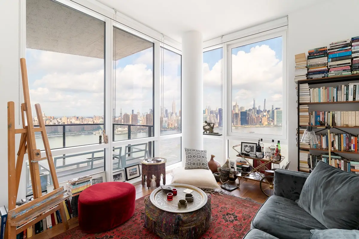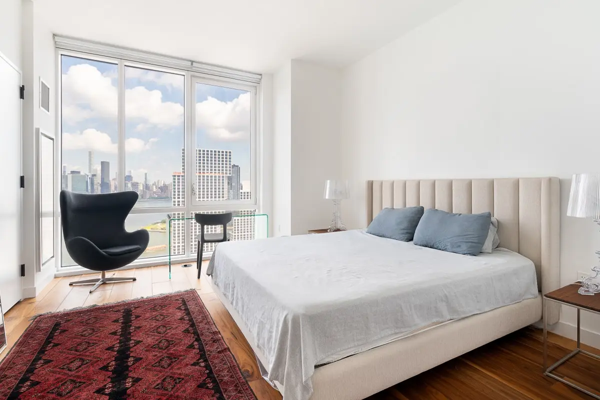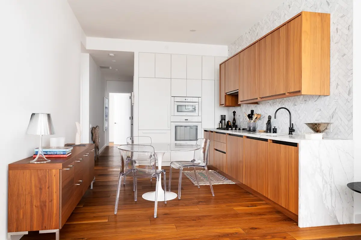 This expansive three-bedroom, 2.5-bathroom condominium residence soaks in expansive East River views from every room, including west-facing floor-to-ceiling windows in the living/dining room overlooking Manhattan and beyond. From its perch on the 34th floor of the decadent 21 India Street, residents will enjoy sweeping views of the river, skyline, and sky all year round via western and northern exposures. A formal entryway with two coat closets leads to a gallery, unfurling to reveal an open kitchen, dining and living space overlooking the East River with corner floor-to-ceiling windows. A large L-shaped kitchen provides bountiful storage and useful prep space in a unique two-tone design. Walnut cabinets are framed by a waterfall-edge countertop and herringbone Carrara tiles stretching to the ceiling. Opposite and conversational with this modern kitchen is a living and dining area stretching 32' wide. Ample space and flexibility provide for varied arrangements for separate dining and living areas, all gravitating towards captivating views. There is also a powder room located off the central hallway. Extending the living space is an approximately 90-square-foot balcony, perfect for an outdoor living or dining area. Secluded on the eastern side of the apartment is a spacious primary bedroom suite, complete with a walk-in closet, two additional closets, and a four-fixture master bathroom with double vanity and a large step-in shower with rain head. Two secondary bedrooms are located off a small gallery, each sharing a four-fixture bathroom. One of these bedrooms is a lovely corner room with floor-to-ceiling windows and more of those river views. This space could also double as a dramatic reading room, home office, or TV room. The other bedroom faces north and can accommodate a queen-sized bed with excellent closet space. Amenities abound at 21 India Street, including a 24-hour attended lobby, co-working space, fitness center with half basketball court, and outdoor spaces in the form of a sun deck and courtyard. Bike storage is available, as is third-party parking in the building. For transit, the building is located directly adjacent to the India Street Ferry Landing (ferry reportedly returning soon) and the G-train at Greenpoint Avenue (with a station entrance on India Street @ Manhattan Avenue).