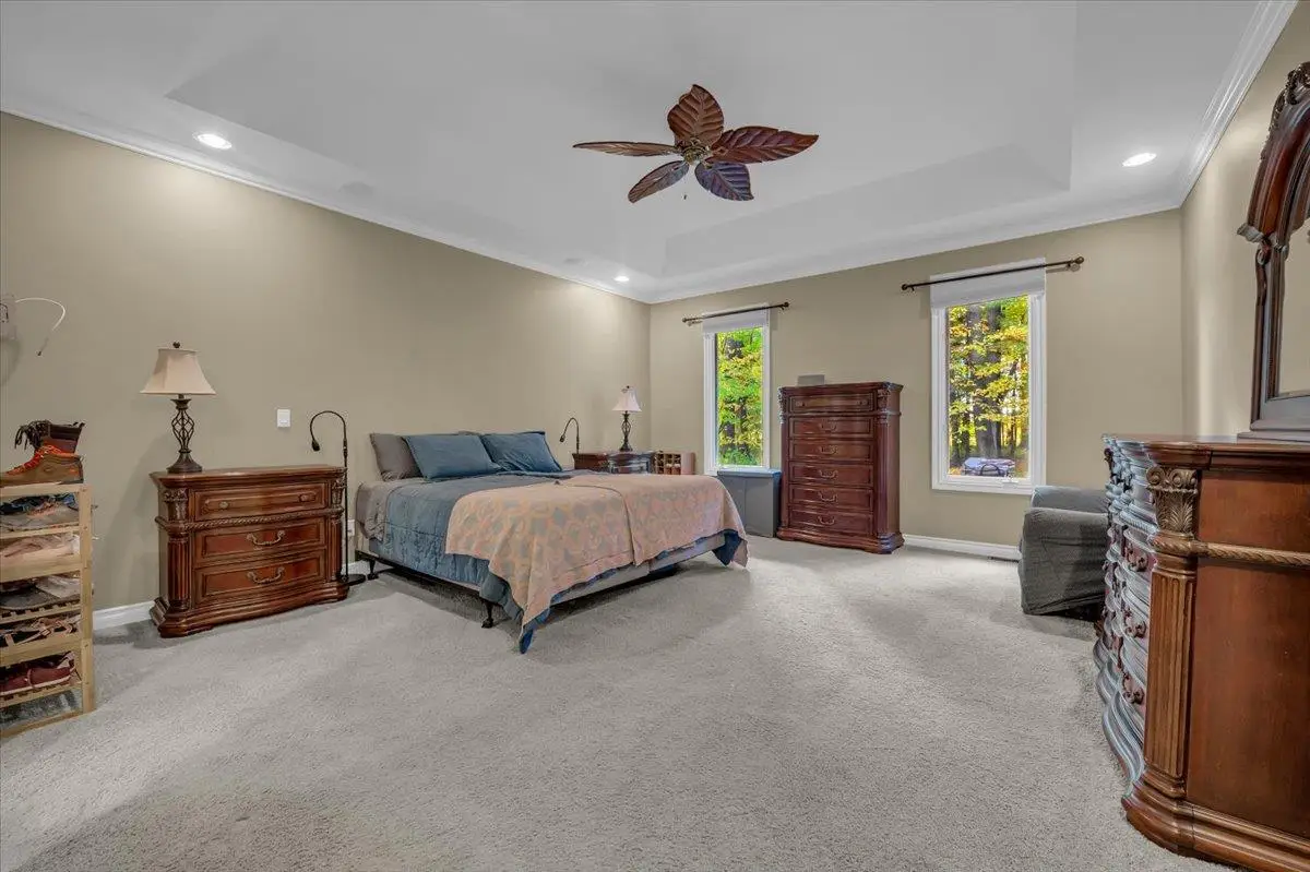 Welcome to your private paradise in Bruce Township! This custom-built luxury estate sits behind a gated entrance on 3+ secluded acres, surrounded by mature trees and professional landscaping. Built in 2004 with over 7,200 square feet of beautifully designed living space, this home offers exceptional craftsmanship and every amenity you could ask for. The grand two-story great room features floor-to-ceiling windows, filling the home with natural light and offering stunning wooded views. Enjoy cozy evenings by the stone fireplace shared with the hearth room, or entertain in style in the gourmet kitchen with an abundance of storage, granite counters, a large center island, and stainless-steel appliances. The four-seasons sunroom and covered patio invite you to relax and take in the peaceful surroundings — the perfect spot for morning coffee or evening gatherings. The first-floor primary suite is a true retreat, featuring a tray ceiling, crown molding, dual walk-in closets, and a spa-like en-suite with a jetted tub, Euro glass shower, and dual vanities. A formal dining room, office with French doors, large mudroom/drop zone, and laundry area complete the main level. Upstairs, three spacious bedrooms with walk-in closets, private or shared baths, and a large 29’x15’ bonus/game room. The finished lower level is ideal for entertaining, featuring a full second kitchen and bar area with beverage and wine coolers, a billiards/media room, a full bath, and space for guests or recreation. Step outside and enjoy your backyard oasis with a stamped concrete patio. Additional highlights include a 4-car heated garage, a hookup for a full house generator, a 3-zone HVAC system, and a circular driveway. This home truly has it all — just minutes from Romeo, Rochester, and major highways. Don’t miss your chance to own this exceptional property — schedule your private tour today! BATVAI.