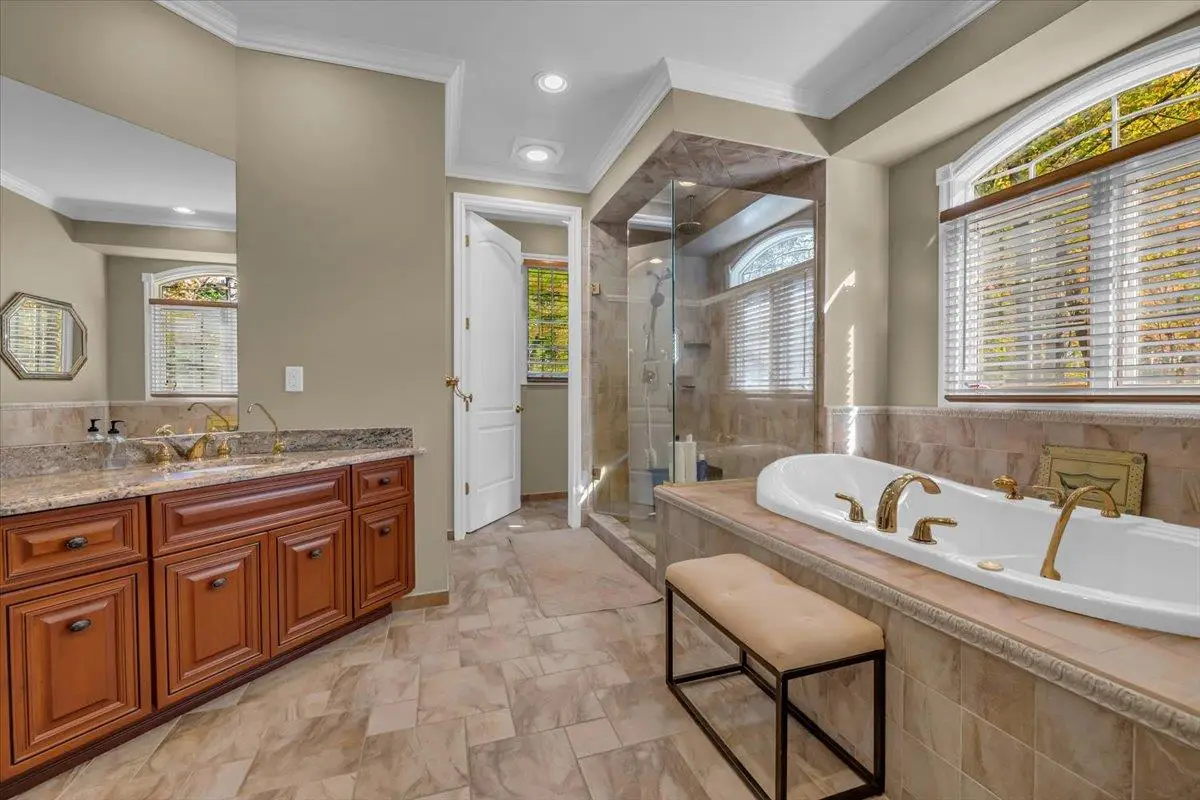 Spa-like en-suite with jetted tub and dual vanities