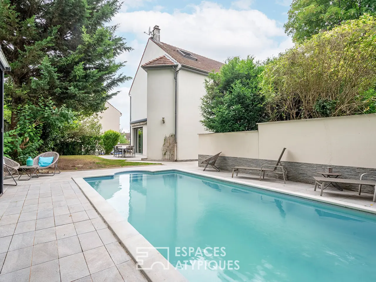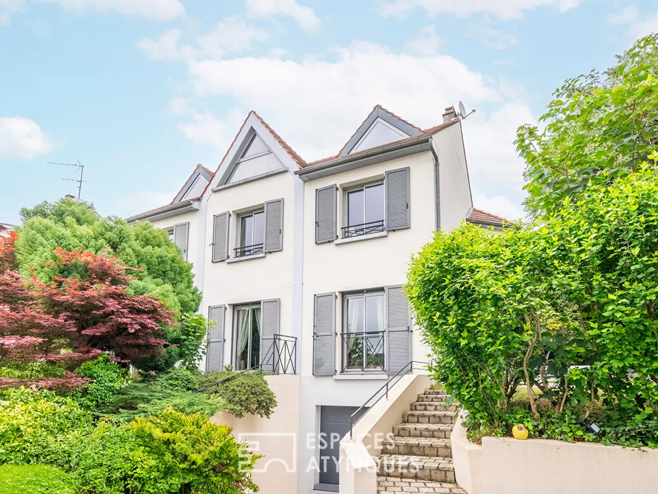 Just a few minutes' walk from the heart of Bry-sur-Marne and the RER A, this elegant, contemporary 180 sqm property sits set back on a 498 sqm plot, nestled in lush greenery, protected from the hustle and bustle. The house, at the end of a cul-de-sac, skillfully combines generous volumes, high-quality features, and a cozy atmosphere. From the entrance, the natural light sets the tone! The garden level is organized around a vast, generously proportioned living room, extended by a level terrace and a landscaped garden, sheltered from view. The kitchen, completely redesigned with a designer feel, blends perfectly into the overall look. The precise layout and discreet storage reflect a particular attention paid to everyday comfort. A reception cloakroom and toilet complete this level. The upper floor offers a harmonious sleeping area composed of four bedrooms with balanced volumes and no overlooking views. An office and a bathroom with a bathtub and separate shower complete the first floor. The attic has been converted into a master suite, a true suspended refuge, featuring custom-made dressing rooms and an elegant bathroom, combining aesthetics and functionality. A separate toilet completes this level. The fully finished basement enhances the house's amenities with a gym equipped with its own shower room, a separate laundry room, an office space, a large multi-use cellar, and a secure garage. Outside, the landscaping interacts with a discreetly placed swimming pool, accompanied by its pool house. The whole invites relaxation and conviviality, in a perfect continuity between interior and exterior. Technical annexes allow for structured storage of garden equipment, bicycles, or two-wheelers, respecting the overall aesthetic. A rare property, designed for refined family life, combining privacy, comfort, and architectural excellence. RER A Bry sur Marne: 12 minutes on foot Shops: 12 minutes on foot School and college: 15 minutes on foot REF. 11344 Additional information * 8 rooms * 5 bedrooms * 1 bathroom * 2 shower rooms * Outdoor space : 499 SQM * Property tax : 3 227 € Energy Performance Certificate Primary energy consumption d : 249 kWh/m2.year High performance housing