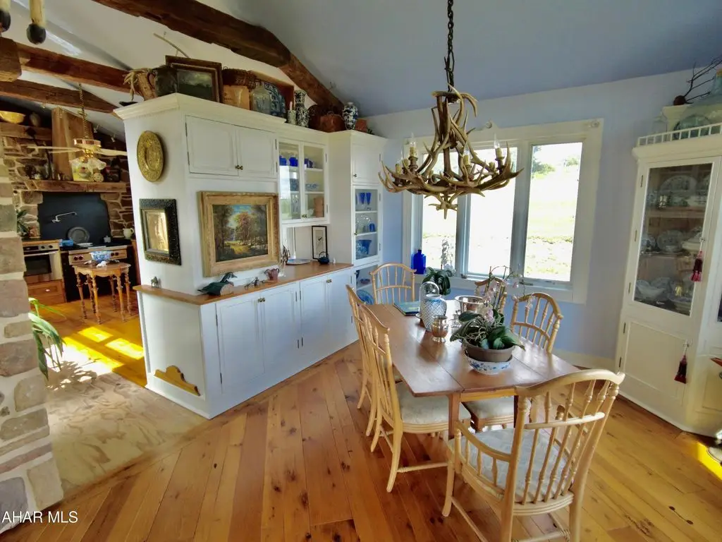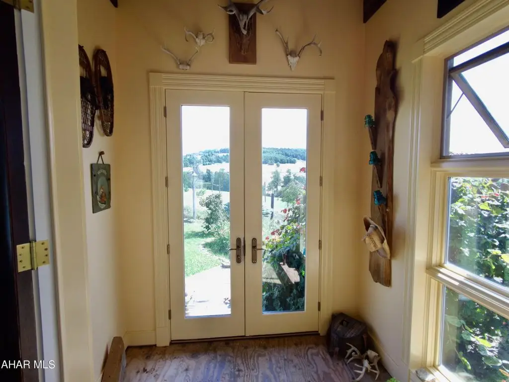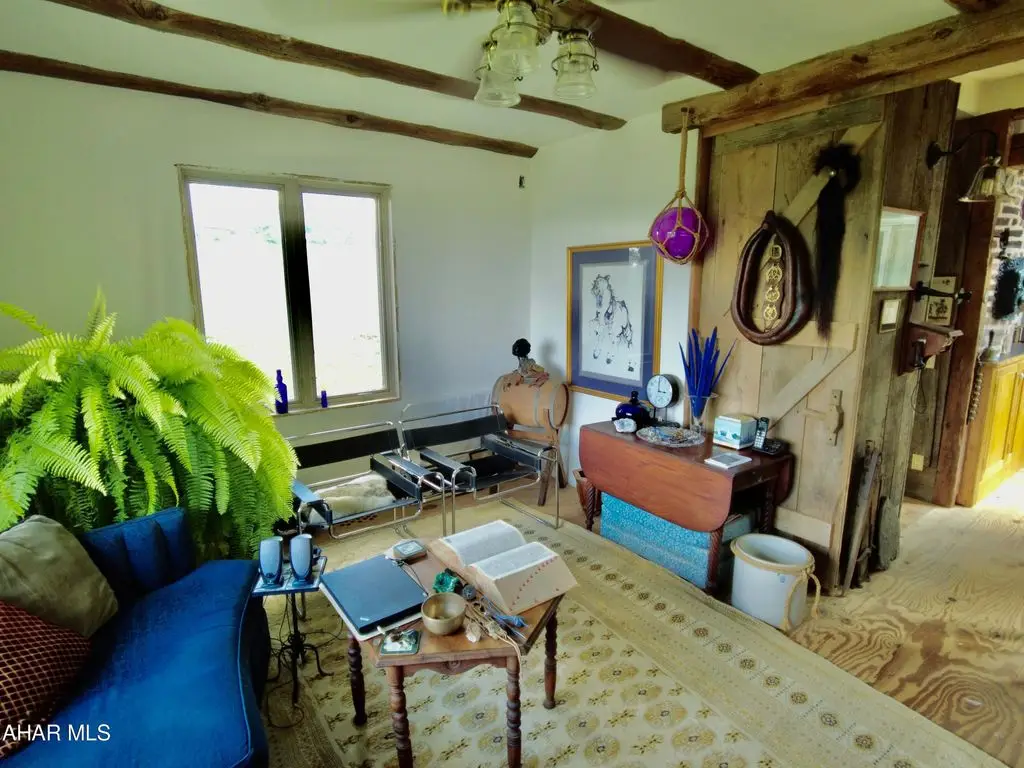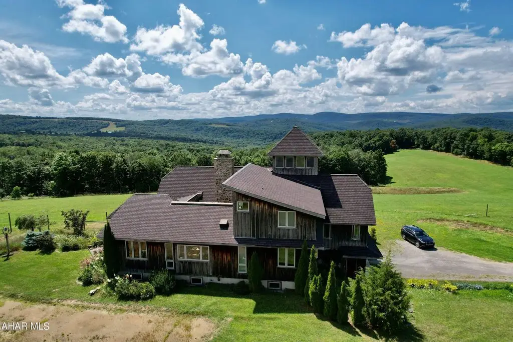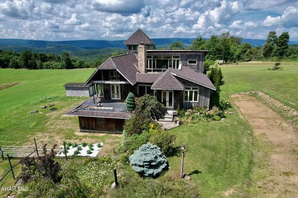 Check out the virtual tour! Experience the many unique 'facets' of this 'one of a kind GEM' overseeing Pennsylvania's Laurel Highlands' mountains.Perched high up, one has a commanding 360 degree view of the surrounding mountains and valleys ... some, 30 miles away! Easy access to main roads for convenience. Your own 'slice of heaven' in 'God's Country.' A masterpiece of thoughtful, intuitive design combines the ambiance of 'The Warm Hearth' meets 'Contemporary Aesthetics'. Comfort and convenience are intertwined throughout every aspect of the home and provenance abounds. Many building materials and finds (most locally sourced) are from centuries past and re-purposed in imaginative ways, contributing to the tenor of this home. Designed for the connoisseur with a discerning eye for quality and detail. Ingenuity, humor as well as functionality and comfort. Delight in the airy, sun filled open spaces enabling connectivity as well as peace and quiet. Explore from the foyer's (now interior) 'antique, 1860's, 8 foot+ high, walnut double entry doors to the 4'' level observation tower, experiencing each unique space that contributes to the home's overall continuity. The gourmet kitchen is designed for the serious chef with intuitive, convenient functional amenities. Bon Appetite! Top stainless steel appliances. The cabinets are custom built on site, hand crafted wormy chestnut, slate counter tops with antique white oak edges with antique nail heads, soapstone farmers sink. Adjacent 'butlers' cabinets are highly detailed, solid wood, painted white with antique chestnut counter. These cabinets continue into the adjoining dining room. A custom, one of a kind, china cabinet is lined with the wormy chestnut. The flooring is made from 200 + year old antique white oak beams ... exquisite. Half bath has custom wormy chestnut wainscoting and trim. Floating 3 C/B?B=' thick spalted pine counter with antique copper sink, floor is pegged antique grainery wood planks. Antique barnwood sliding door on authentic track.Careful consideration has gone into all design aspects from the imported antique French door handles/levers, the huge, bright horse stalls and management to the landscaping (including a purple beech tree). Marvel at the amazing emerging sunrise, the spectacular blazing sunsets and the expansive starry night sky complete with the Milky Way! There is still work to be completed in some rooms. Most of the materials are on site which include trim, flooring, lighting with ceiling fans to be installed. The hard parts are done.Oil, gas, and mineral rights convey with sale.Follow this link to see extra photos:https://photos.app.goo.gl/8dJf8s6PCxnmZSFs5