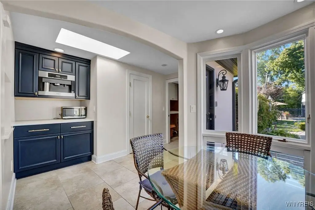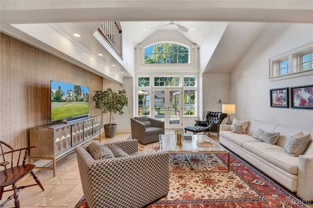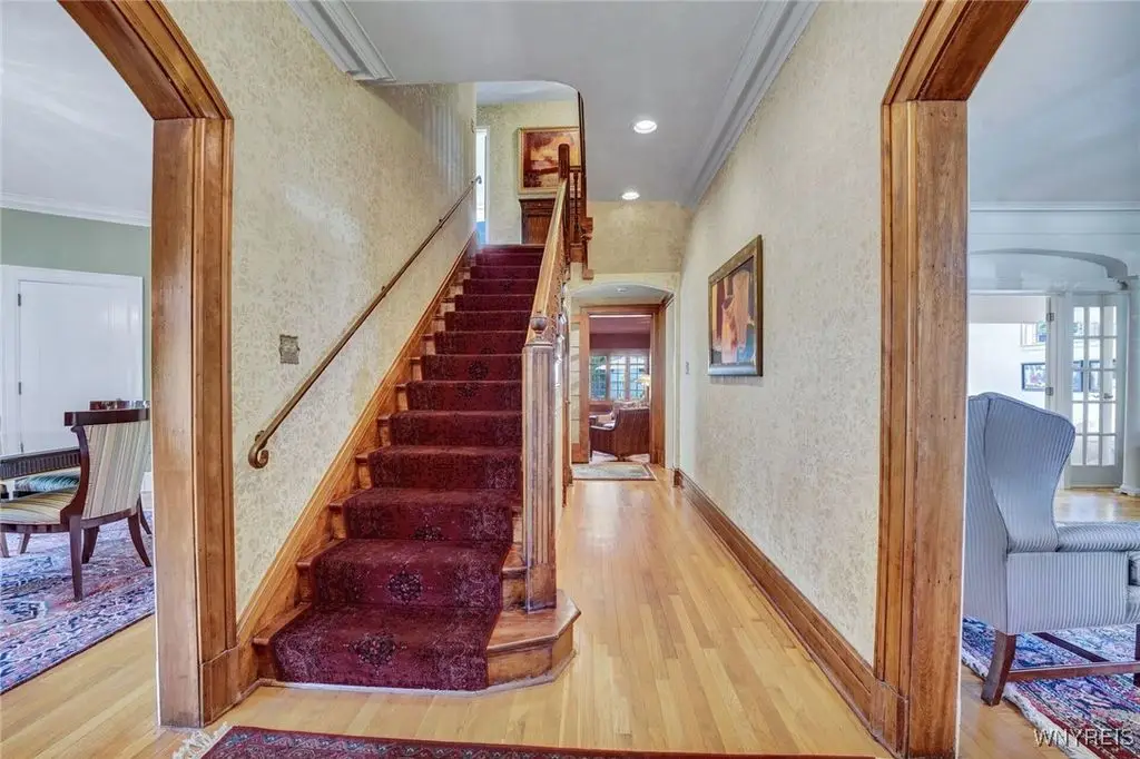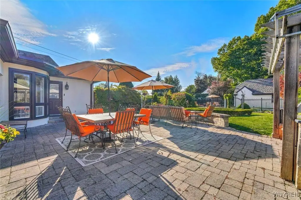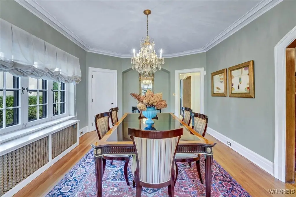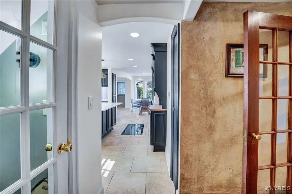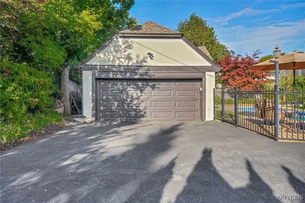 Timeless Elegance Meets Modern Luxury Across from Delaware Park at 81 Nottingham Terrace. Discover refined living in this stunning 4 bedroom, 3.5 bath Tudor estate, perfectly positioned across from Olmsted's historic Delaware Park. A seamless blend of classic architecture and contemporary upgrades, this home offers exceptional comfort and elegant style. The fully remodeled chef's kitchen is a showpiece, featuring premium appliances including a Sub-Zero refrigerator, Wolf range, Cove dishwasher, and a built-in coffee bar. Elegant Carrara marble countertops and a spacious island make it ideal for both cooking and entertaining. The kitchen opens to a bright breakfast room and offers a unique view into the climate-controlled wine cellar, which holds up to 1,000 bottles of wine. The formal dining room, adorned with its original chandelier, flows into a grand foyer. A spacious living room centers around a striking woodburning limestone fireplace, while the large modern family room features radiant heated floors and a loft above. French doors lead to a private courtyard patio, perfect for relaxing or hosting guests. The distinguished library/study offers warmth and character with a wood-burning fireplace and custom built-in bookshelves. Original hardwood floors and incredible woodwork throughout. Gorgeous staircases show the charm and character of this exquisite home. Upstairs, the luxurious primary suite includes three closets and a spa-inspired ensuite bath. The second bedroom opens to a Juliet balcony, and the third bedroom features a generous walk-in closet. The third-floor bedroom includes an additional full bathroom, ideal for guests or a private retreat. Outdoor living is equally impressive - enjoy a saltwater inground pool, a stone fire pit for cozy evenings, grilling area designed for effortless entertaining. Fully fenced electronic gated yard with sprinkler system. Updates include roof, boiler system ($30,000), Generac generator, and much more. This exceptional home combines historic charm, modern amenities, and resort-style outdoor living in one of Buffalo's most coveted neighborhoods.