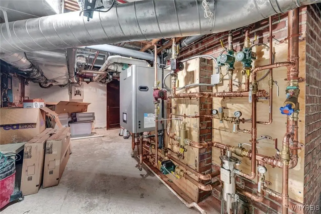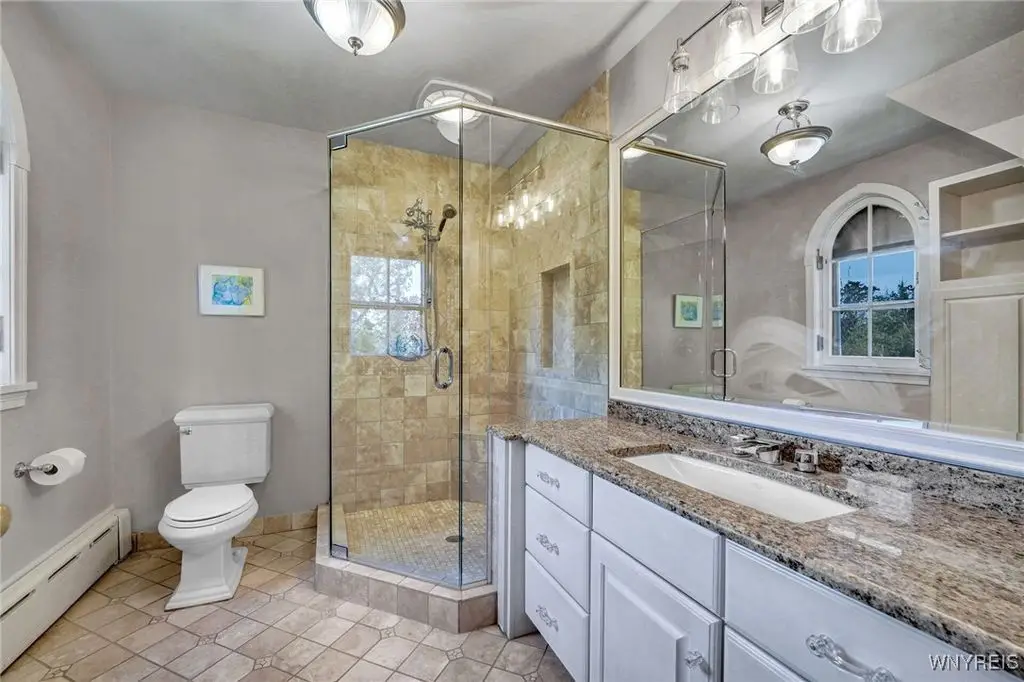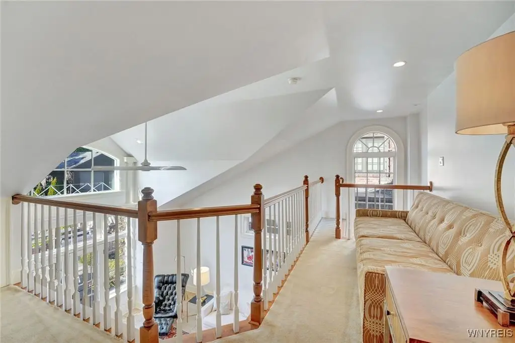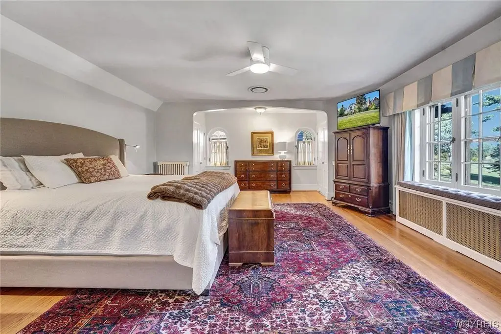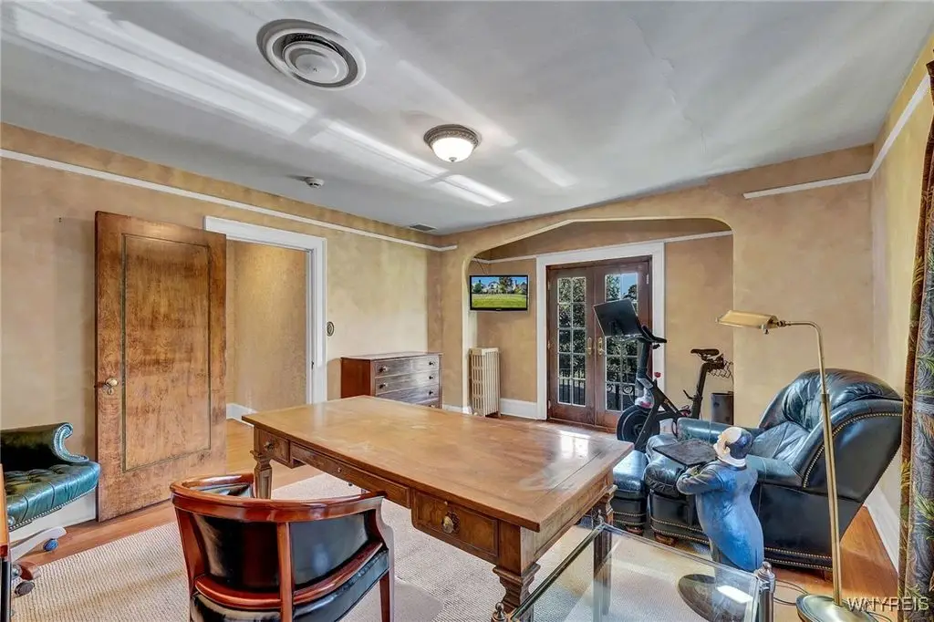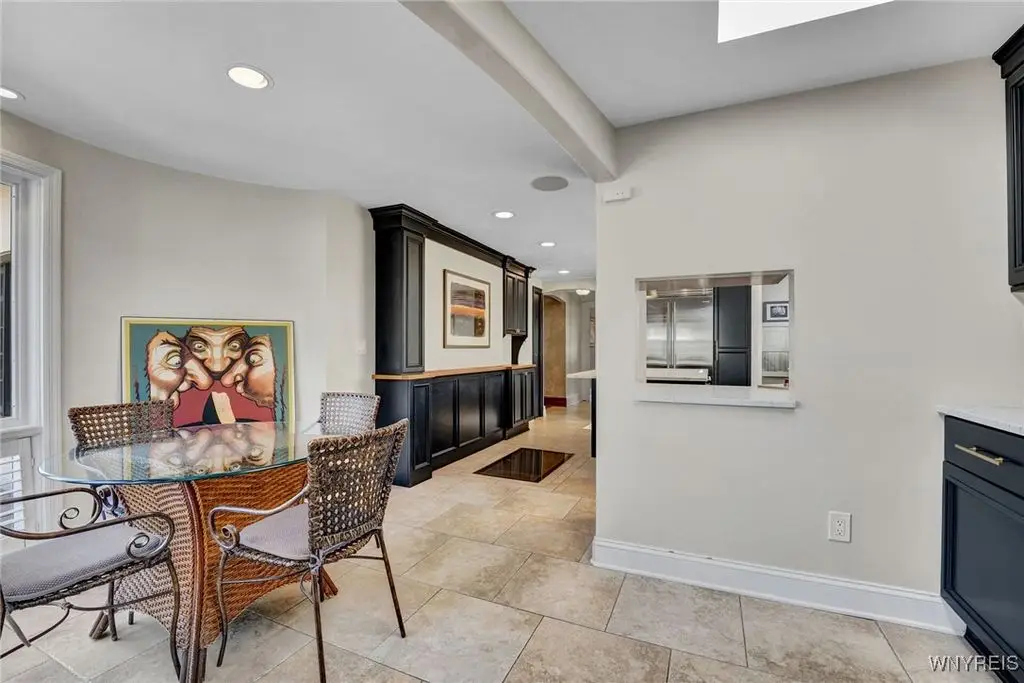 Timeless Elegance Meets Modern Luxury Across from Delaware Park at 81 Nottingham Terrace. Discover refined living in this stunning 4 bedroom, 3.5 bath Tudor estate, perfectly positioned across from Olmsted's historic Delaware Park. A seamless blend of classic architecture and contemporary upgrades, this home offers exceptional comfort and elegant style. The fully remodeled chef's kitchen is a showpiece, featuring premium appliances including a Sub-Zero refrigerator, Wolf range, Cove dishwasher, and a built-in coffee bar. Elegant Carrara marble countertops and a spacious island make it ideal for both cooking and entertaining. The kitchen opens to a bright breakfast room and offers a unique view into the climate-controlled wine cellar, which holds up to 1,000 bottles of wine. The formal dining room, adorned with its original chandelier, flows into a grand foyer. A spacious living room centers around a striking woodburning limestone fireplace, while the large modern family room features radiant heated floors and a loft above. French doors lead to a private courtyard patio, perfect for relaxing or hosting guests. The distinguished library/study offers warmth and character with a wood-burning fireplace and custom built-in bookshelves. Original hardwood floors and incredible woodwork throughout. Gorgeous staircases show the charm and character of this exquisite home. Upstairs, the luxurious primary suite includes three closets and a spa-inspired ensuite bath. The second bedroom opens to a Juliet balcony, and the third bedroom features a generous walk-in closet. The third-floor bedroom includes an additional full bathroom, ideal for guests or a private retreat. Outdoor living is equally impressive - enjoy a saltwater inground pool, a stone fire pit for cozy evenings, grilling area designed for effortless entertaining. Fully fenced electronic gated yard with sprinkler system. Updates include roof, boiler system ($30,000), Generac generator, and much more. This exceptional home combines historic charm, modern amenities, and resort-style outdoor living in one of Buffalo's most coveted neighborhoods.