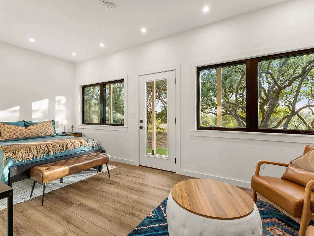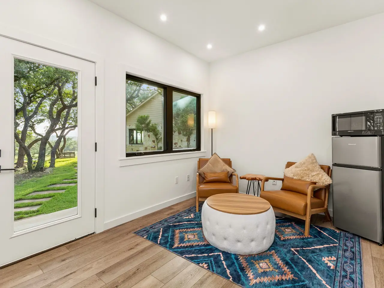 Experience elevated Hill Country living on 7.34 unrestricted acres with panoramic views and ultimate privacy. This completely renovated single-story ranch boasts high-end finishes throughout-featuring Andersen windows, Kentmore cabinetry, vaulted ceilings, and a designer kitchen built to impress. The 2 bed/2 bath main residence is complemented by a 1 bed/1 bath casita and a fully finished flex space ideal for a luxe bar, retreat, or studio. Spa-style bathrooms, stone fireplace, and expansive indoor-outdoor flow enhance the living experience. Equestrian-friendly and ideal for FFA/4H projects, with a private well, workshop, and no HOA. An exceptional estate blending modern elegance with country freedom. - 11/4/2025 8:01:00 AM