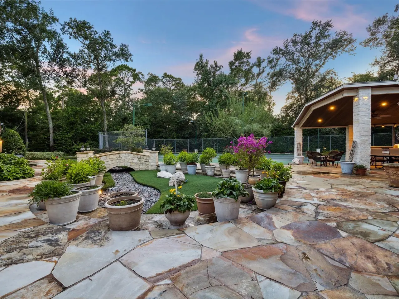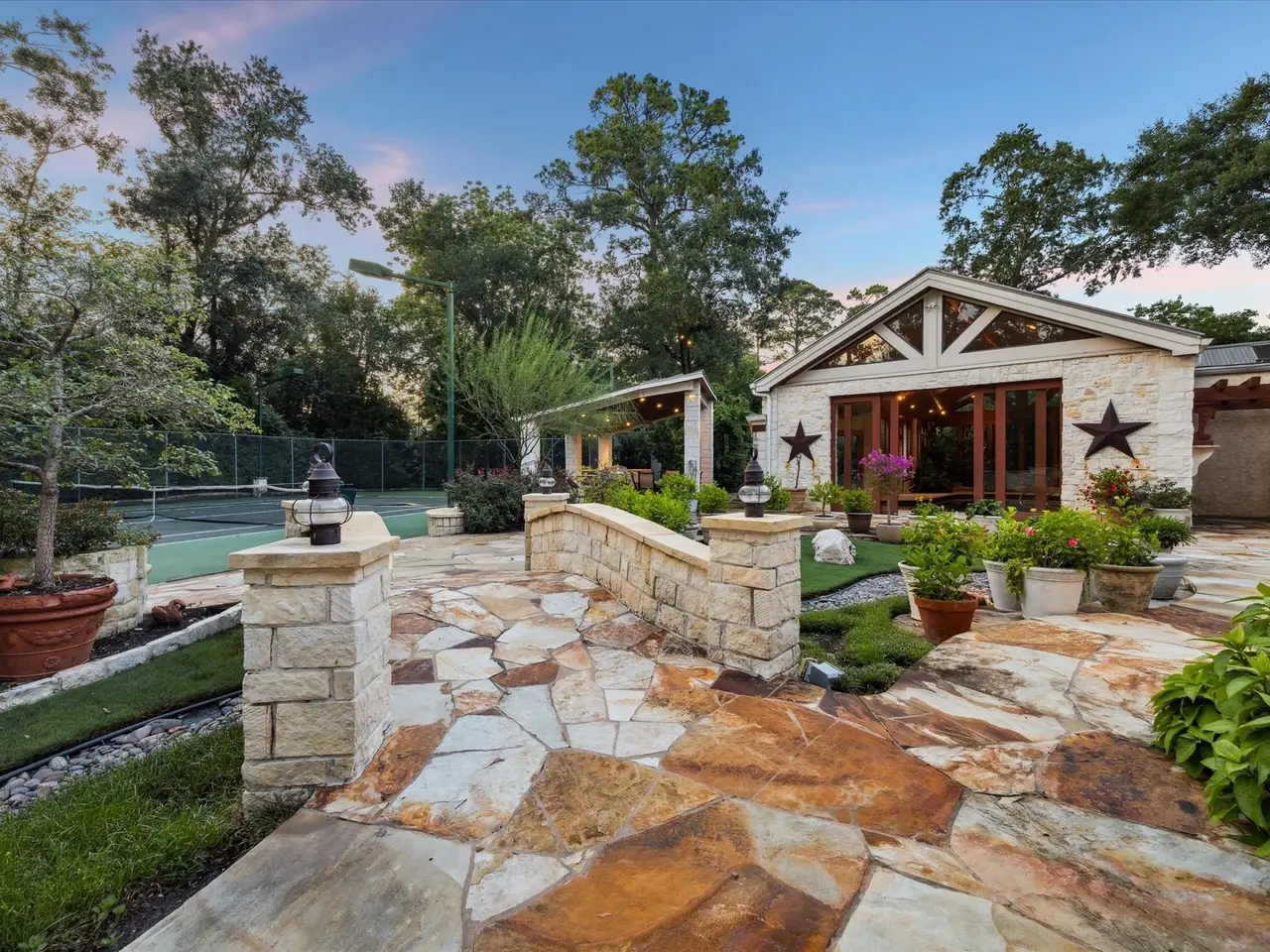 One of a kind, unique opportunity for a 77k+ sqft lot (per HCAD) in the esteemed Bunker Hill Village. Imagine building your dream home in this lush oasis under a canopy of trees, where the opportunities for customization are boundless: pool, tennis/pickleball court, walking paths, summer kitchen and entertaining spaces can all be yours for your personal enjoyment. The Memorial Villages provide unparalleled amenities including desirable schools, private police and fire department, and more! Custom built in 1980, this home with generator was designed for entertaining. From the spacious great room that opens to the spectacular outdoors to the library and renowned poker room, this property saw many notable dignitaries grace it with their presence.