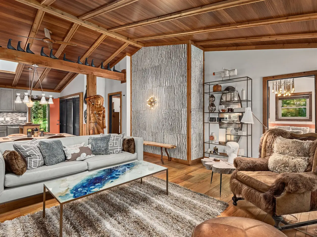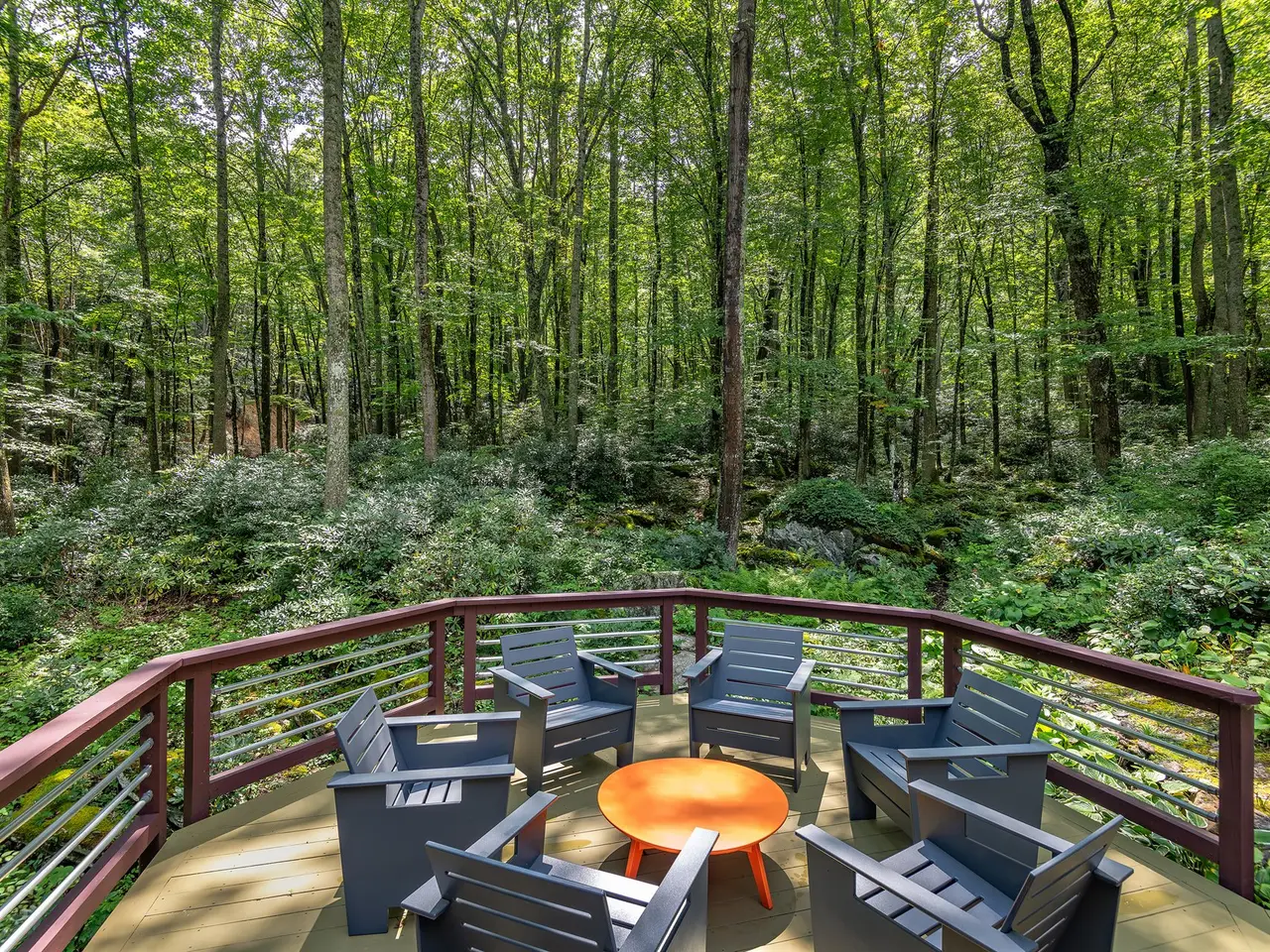 At the base of Celo Knob, one of the highest peaks on the Eastern Seaboard, discover a retreat where art, nature, and serenity meet. This 3.85-acre sanctuary rests at 3,200 feet, bordering 19,000 acres of untouched national forest. Flowing from the slopes above, Upper and Lower Browns Creek wind down along either side of the property, offering a moss-covered rhododendron sanctuary with private waterfalls that set a calming rhythm to daily life whilst the property remains high and dry from any possibility of creek water intrusion. The main home is an artistic masterpiece, filled with local creations, modern design, and refined furnishings. Expansive wraparound decks invite quiet mornings and joyful gatherings, all against a backdrop of endless forest. Meander private trails to secluded firepits, retreat to the guest cottage or bunkhouse, and feel the stillness of the South Toe Valley?renowned for its pristine waters and natural purity. Offered turnkey and fully furnished, this haven is more than a home; it's a place to breathe, to connect, and to simply be. Please call the Listing Agent for Showings.