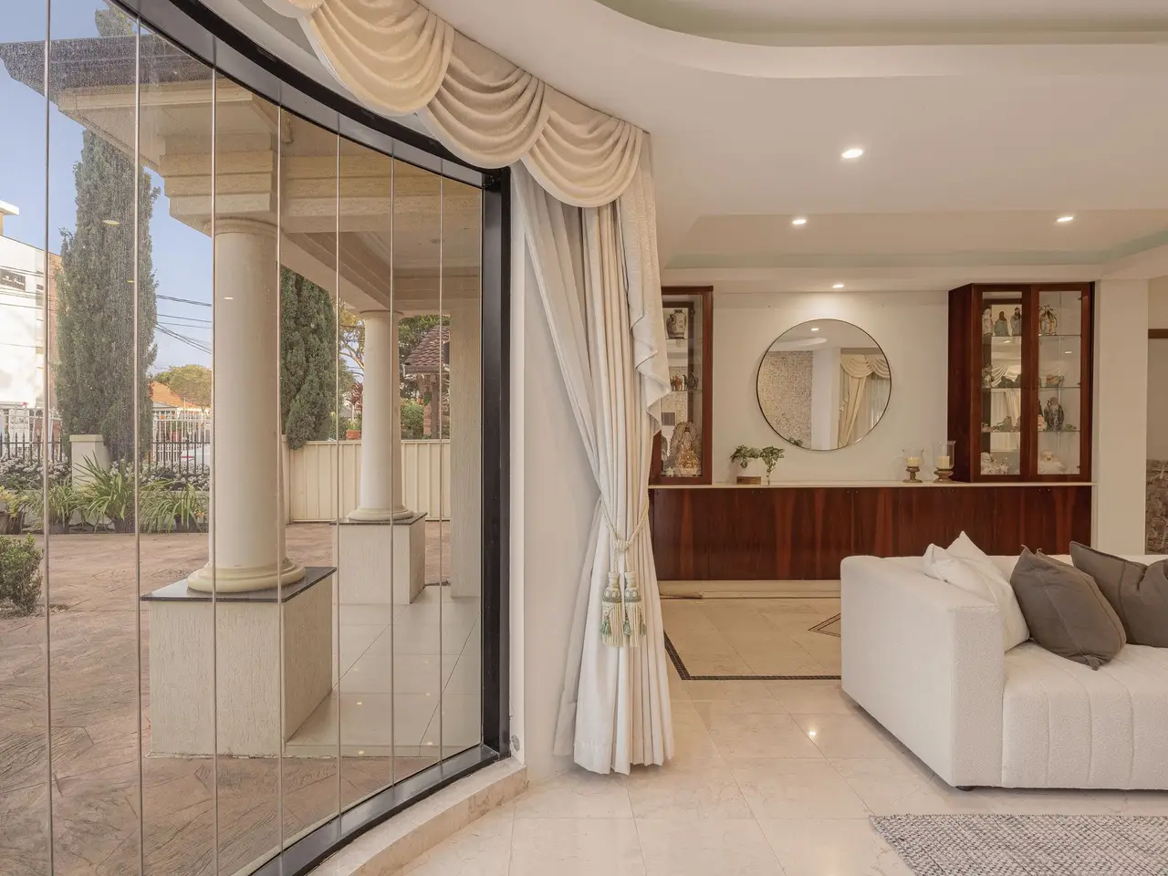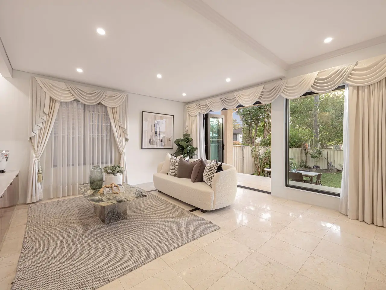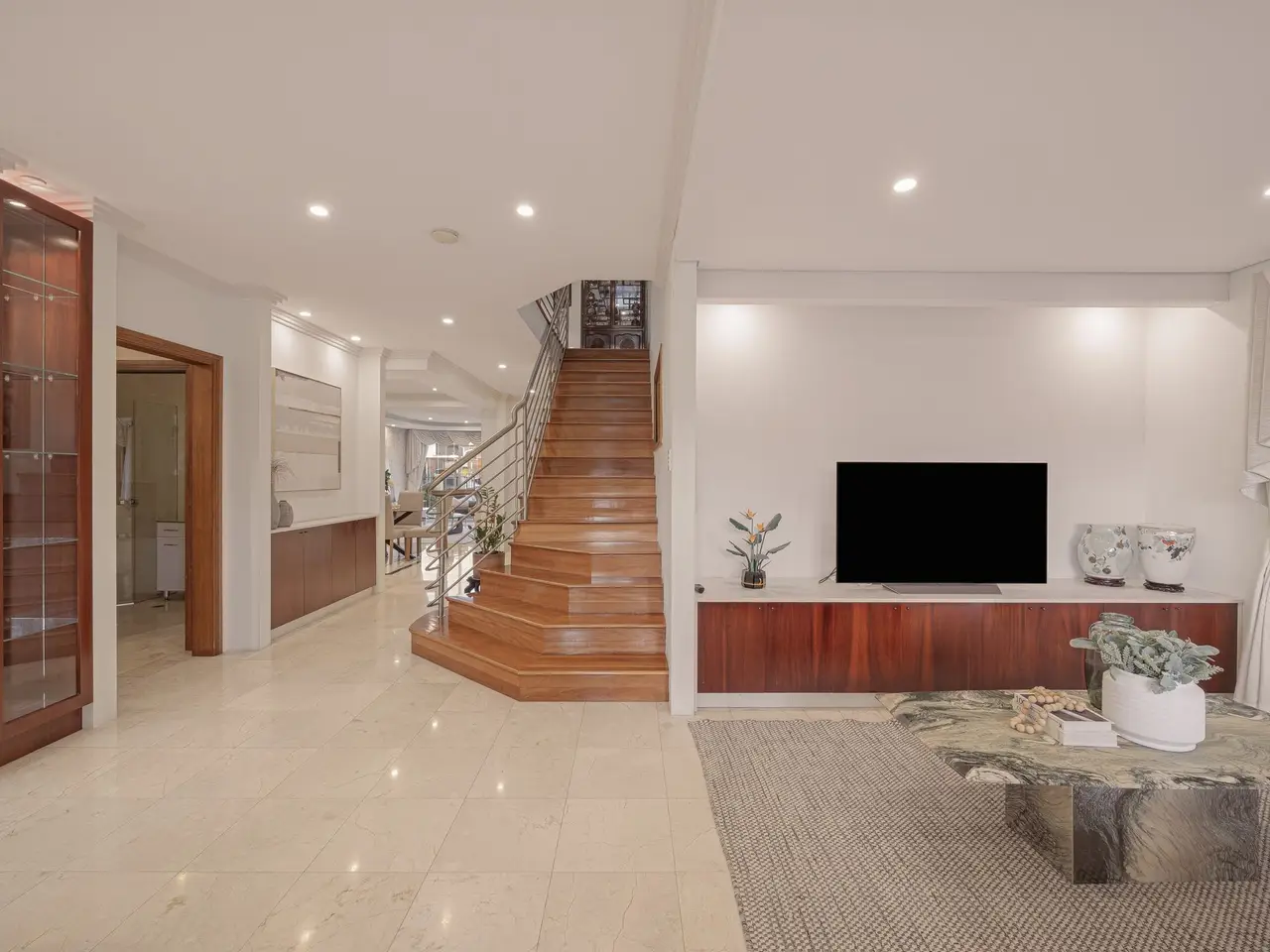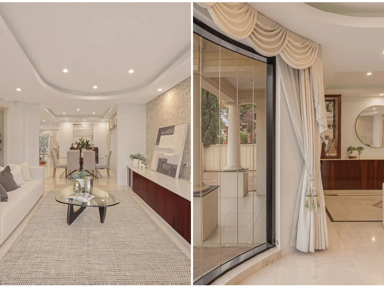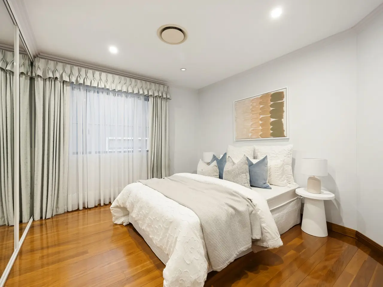 Set on one of Burwood's most prestigious streets, this full brick residence combines grand proportions with contemporary refinement to create a family home of high calibre. Walls of glass capture streams of natural light, while detailed ceilings and polished timber floors add timeless elegance. Designed with functionality and comfort in mind, its multiple living zones, outdoor entertaining spaces and five-bedroom layout cater to large/growing families. Framed by manicured gardens and backing directly onto Sanders Reserve, the home ensures both lifestyle and convenience just 800m from Burwood Station. - Expansive living/dining area seamlessly integrates with an entertainers' terrace - Sun-drenched child-friendly yard offers a relaxed setting of privacy and greenery - Modern family kitchen with steel gas appliances, sleek cabinetry, in-built storage - Five bedrooms, three feature balconies, master retreat with walk-in and ensuite - Bathroom with floor-to-ceiling tiles, a double basin, spa bath and body shower jets - Additional lounge and office space provide flexibility for working/a recreation room - Ducted air-conditioning, downlights, polished timber floorboards and solar panels - Interiors reveal detailed ceilings and walls of glass, balancing style and elegance - Single lock-up garage with internal access plus driveway parking, internal laundry - Exceptional address, walk to Burwood Station, Plaza, parklands and elite schools